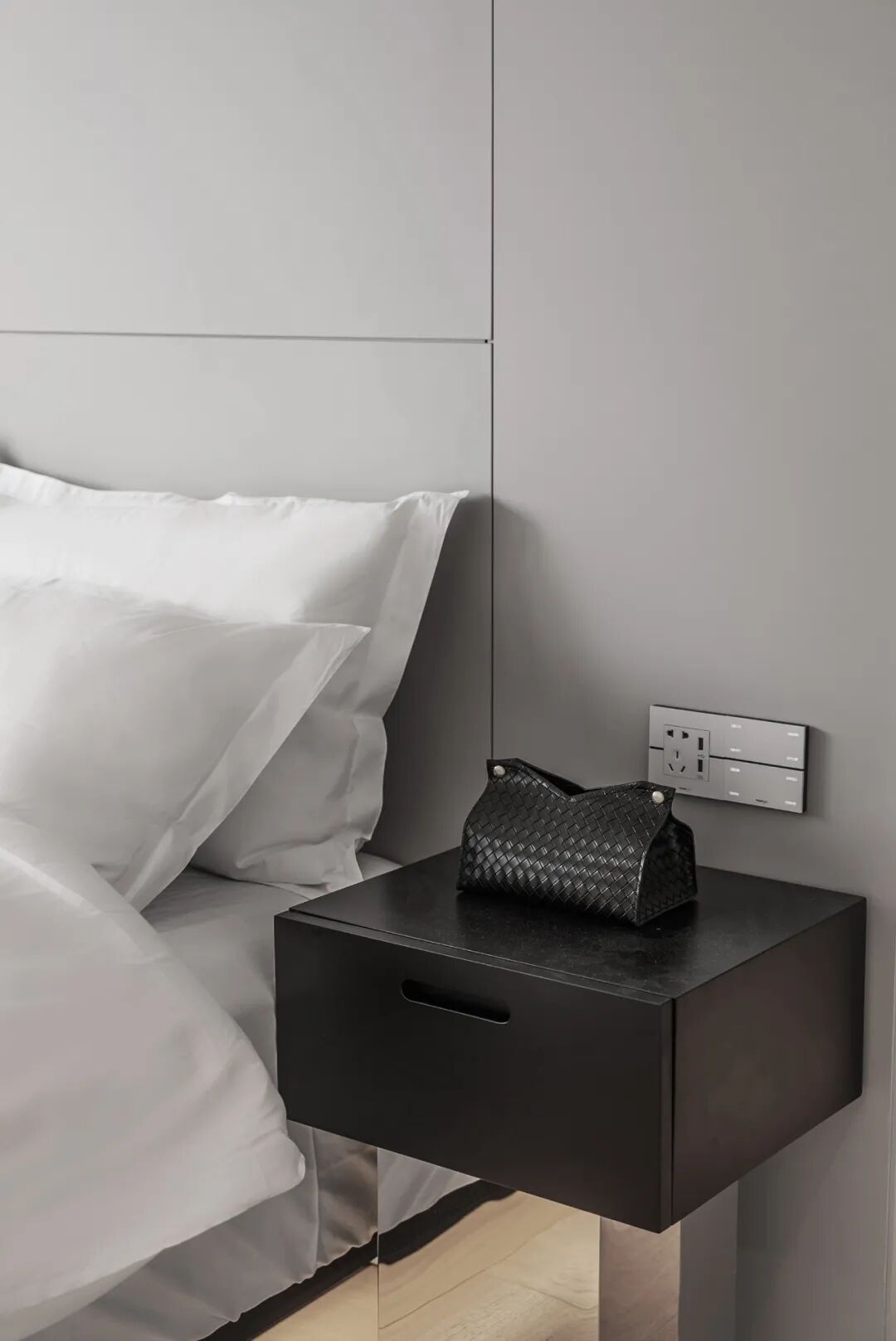 皮质细腻,木材自然,多种材质的交汇塑造了空间的高级和精致