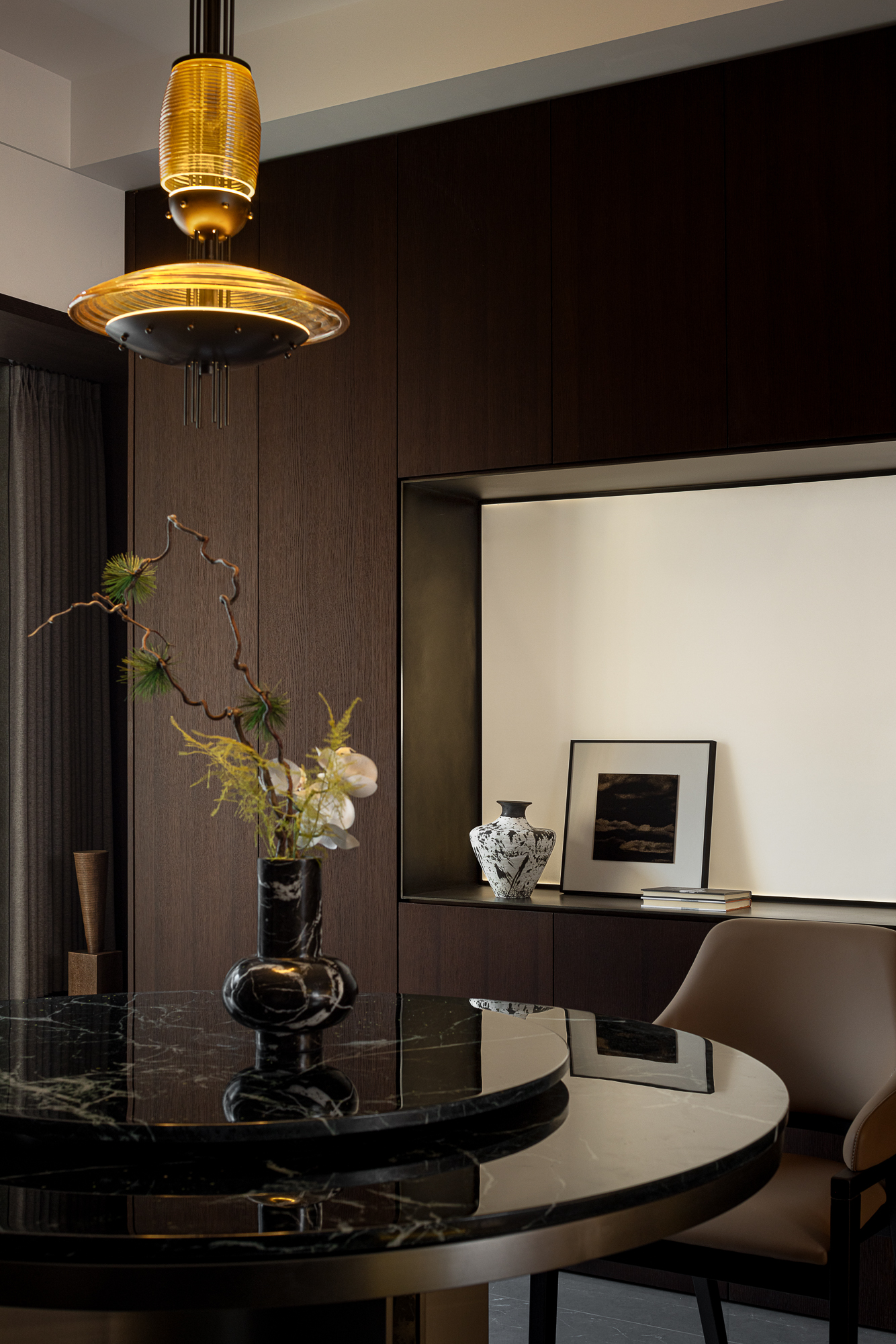 设计选材:将自然事物延伸到居室,窥见东方的生活美学,抛弃繁复,不事雕琢,闲看庭前花开花落,漫随天外云卷云舒。在静谧中品味生活的诗意与从容。