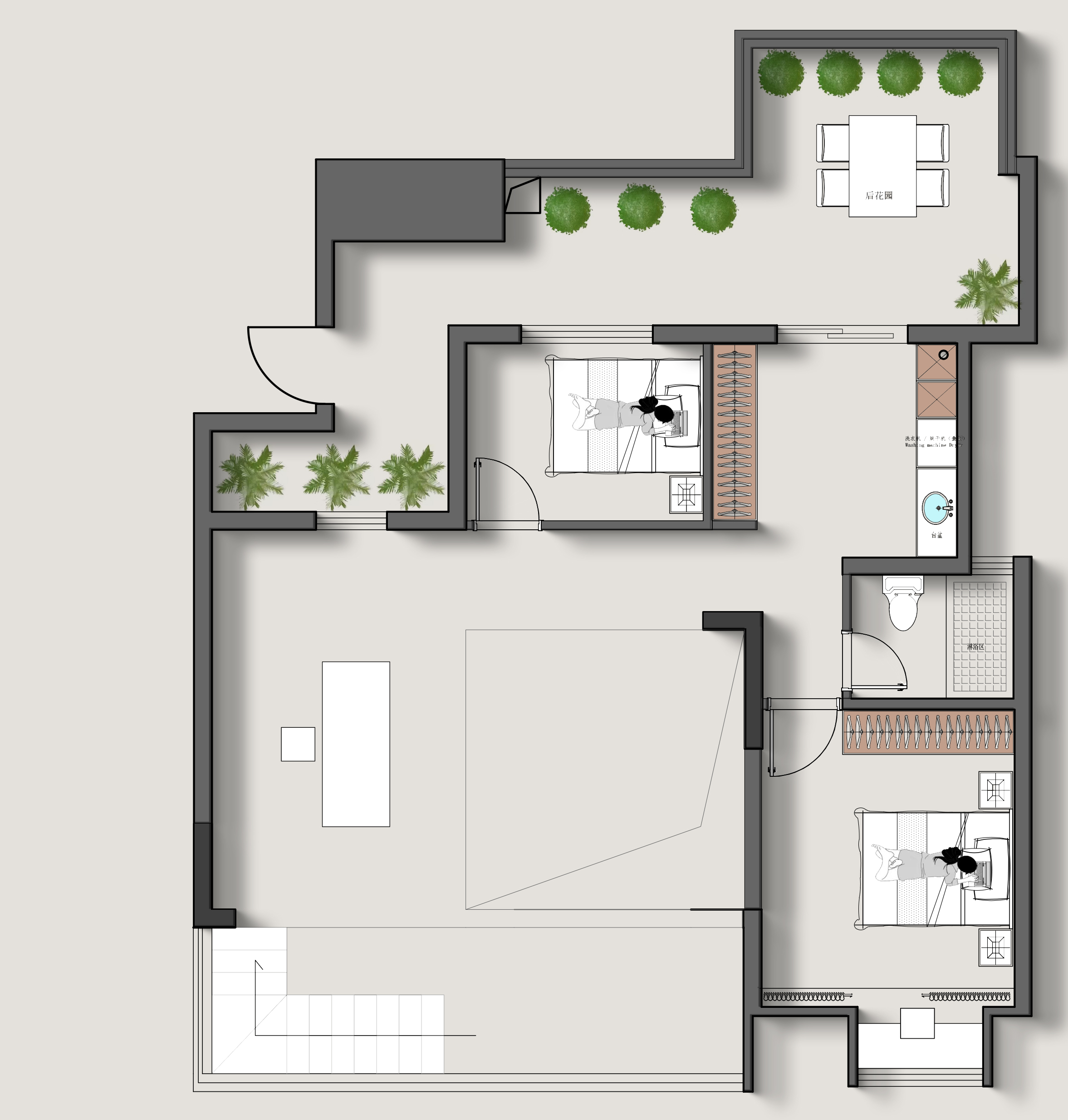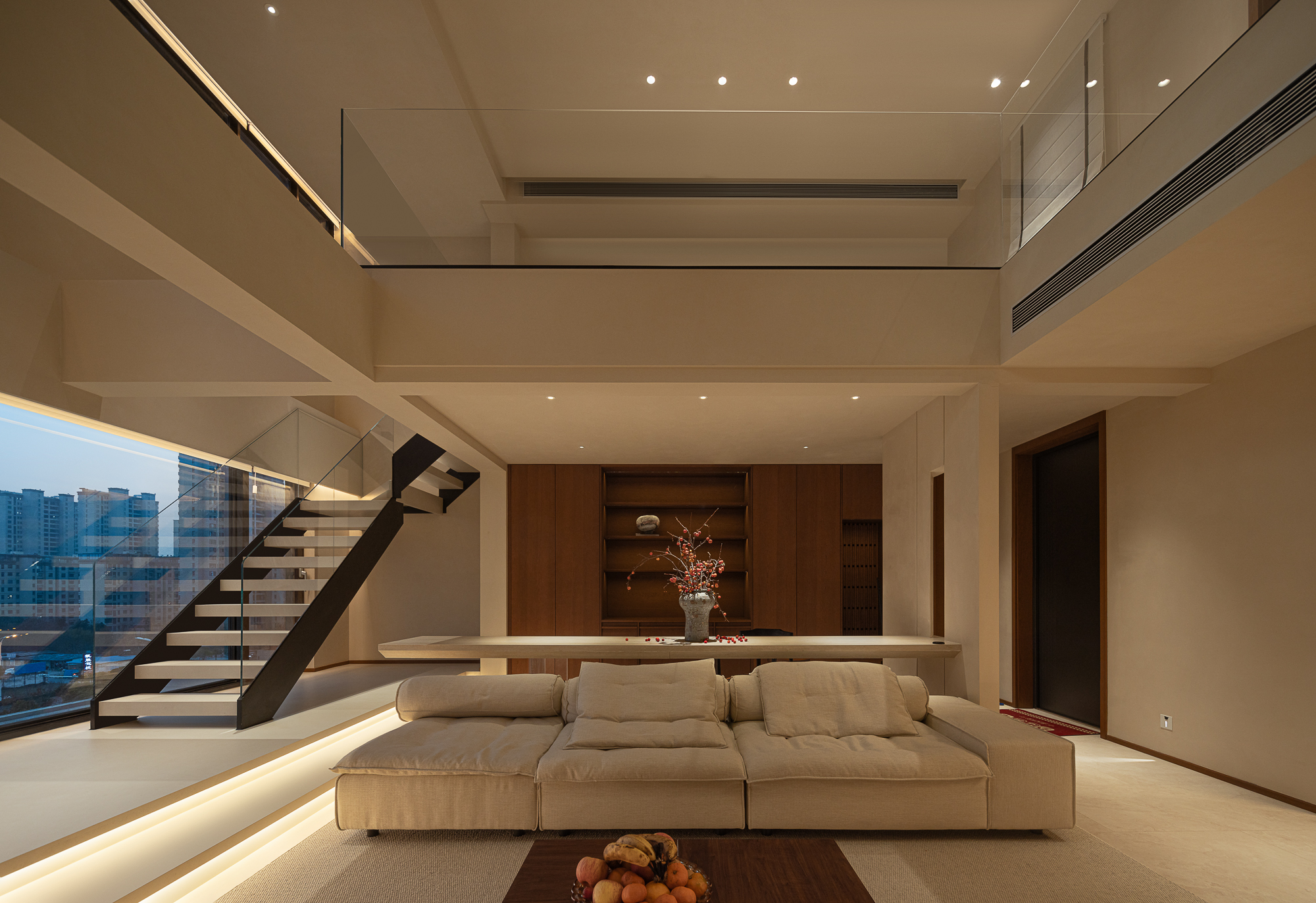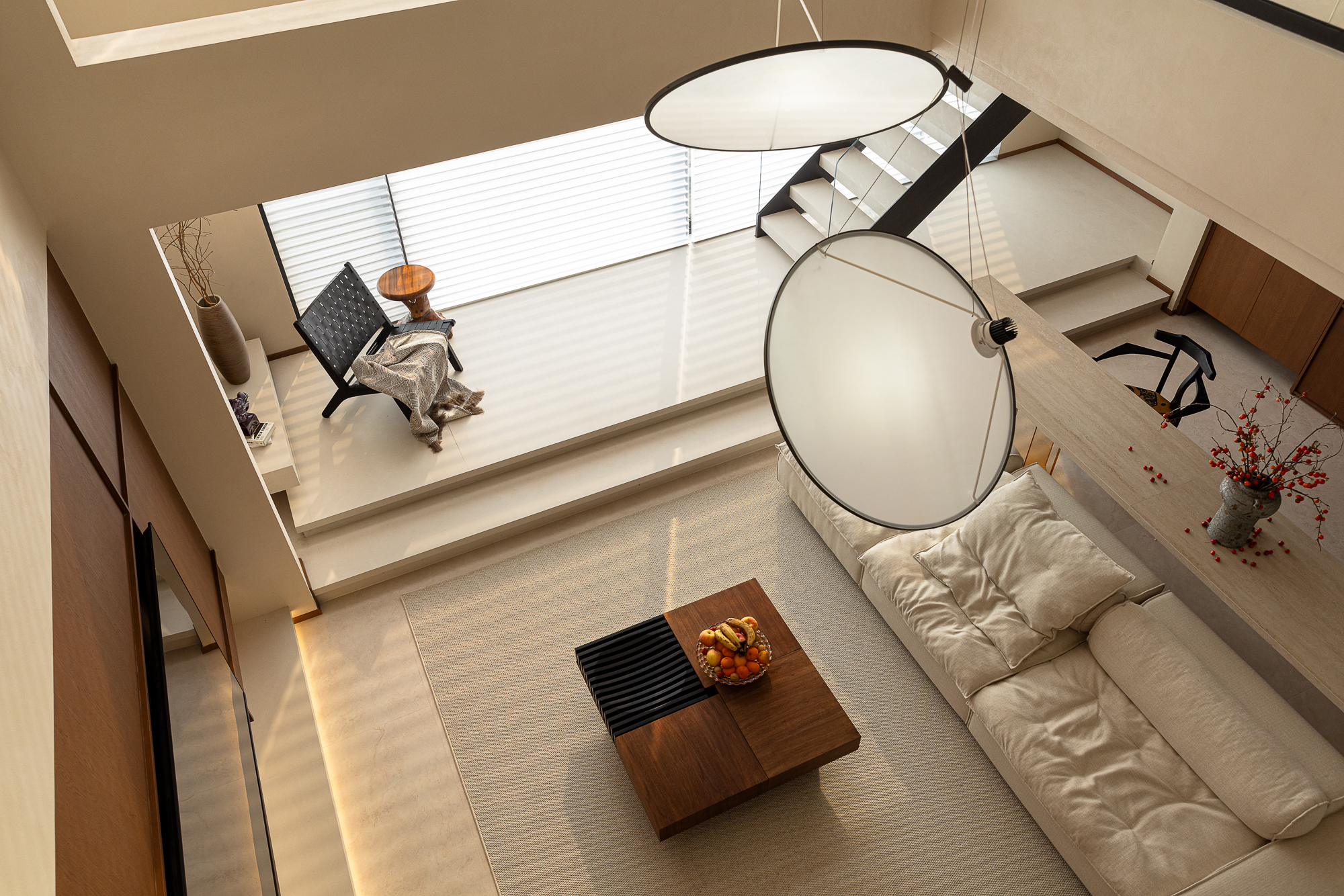 空间布局:挑高的结构设计,使得空间的包容性变得更强,错落的尺度和层次让空间交流更加惬意,一张一弛,一动一静,置身于古典与现代的交汇之处。