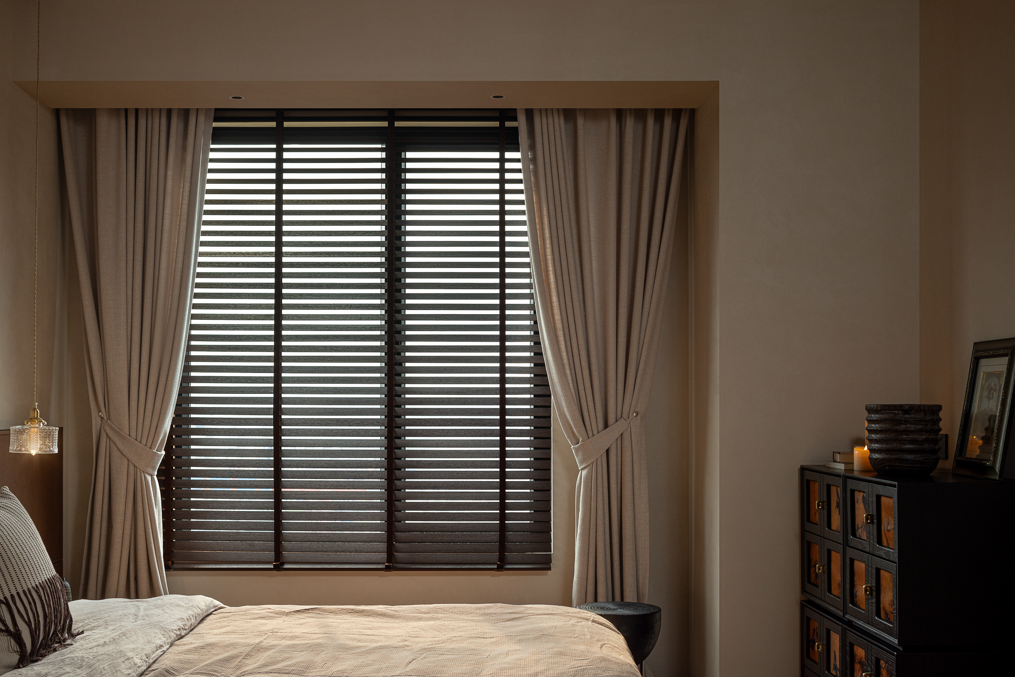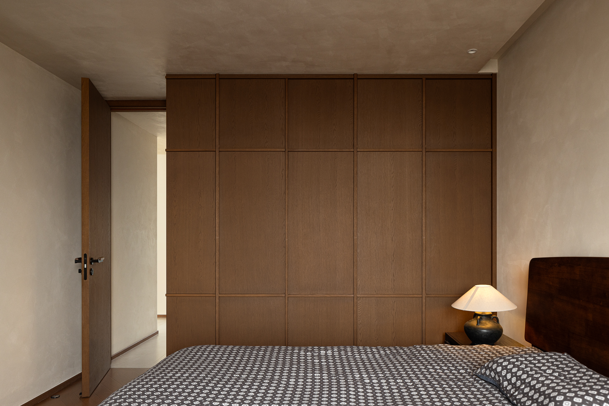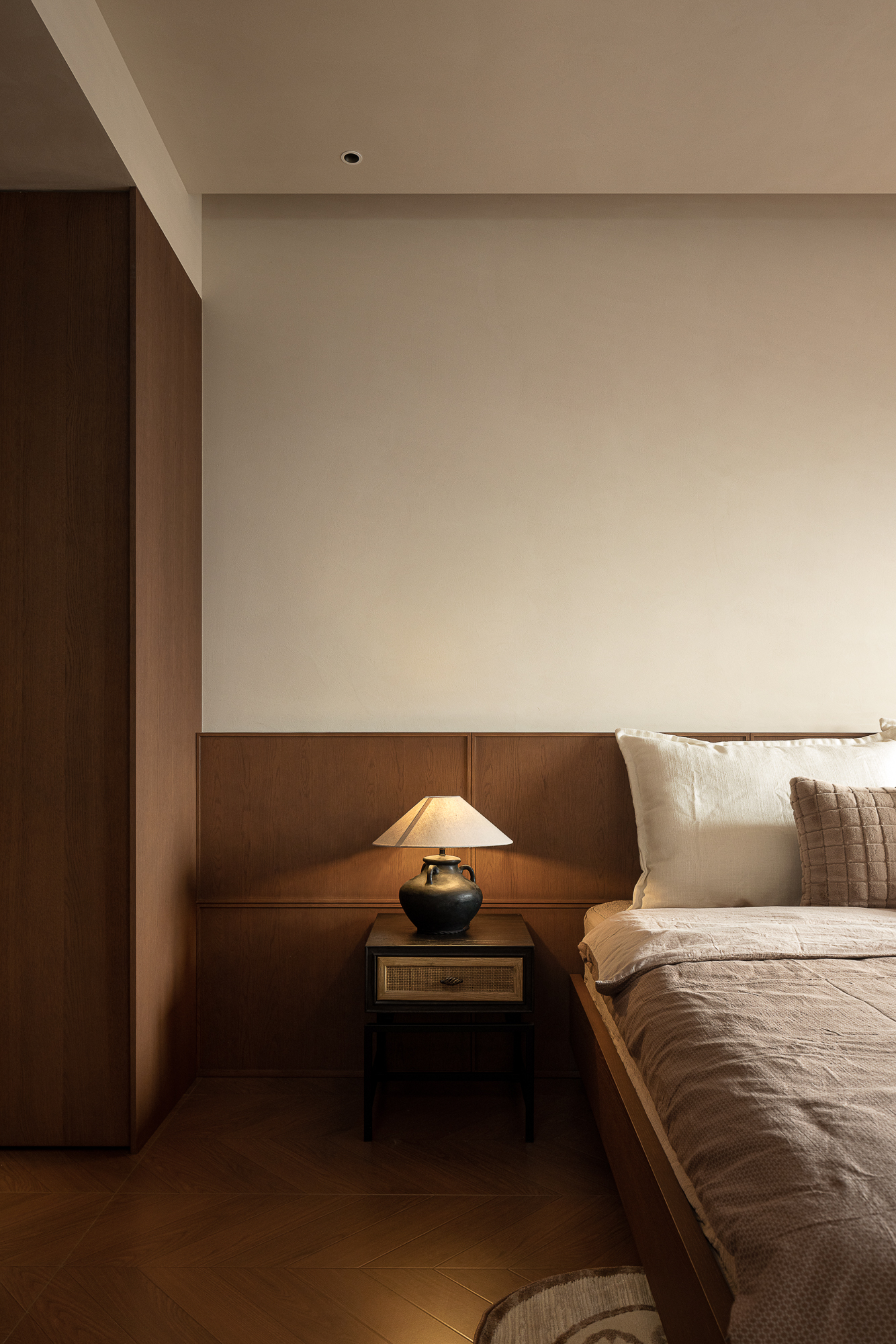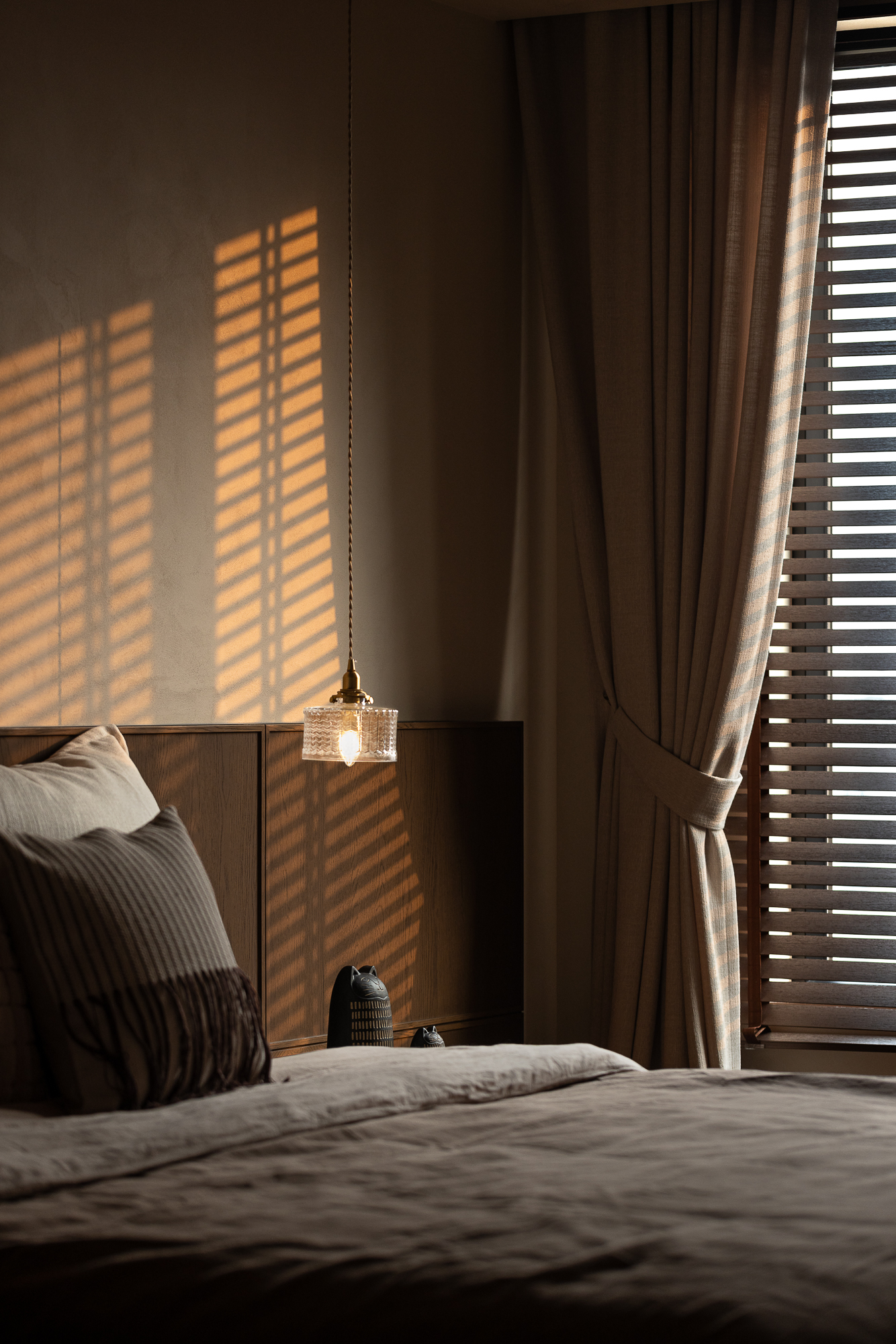 温暖的木制色调半包裹着空间,百叶窗帘映透着朝阳与晚霞,链接自然和生活,杂糅古今之质朴。这里不仅是夜晚的休憩之地,更是时光与设计交融的私密空间,每一处细节都在诉说着优雅与宁静的平衡。