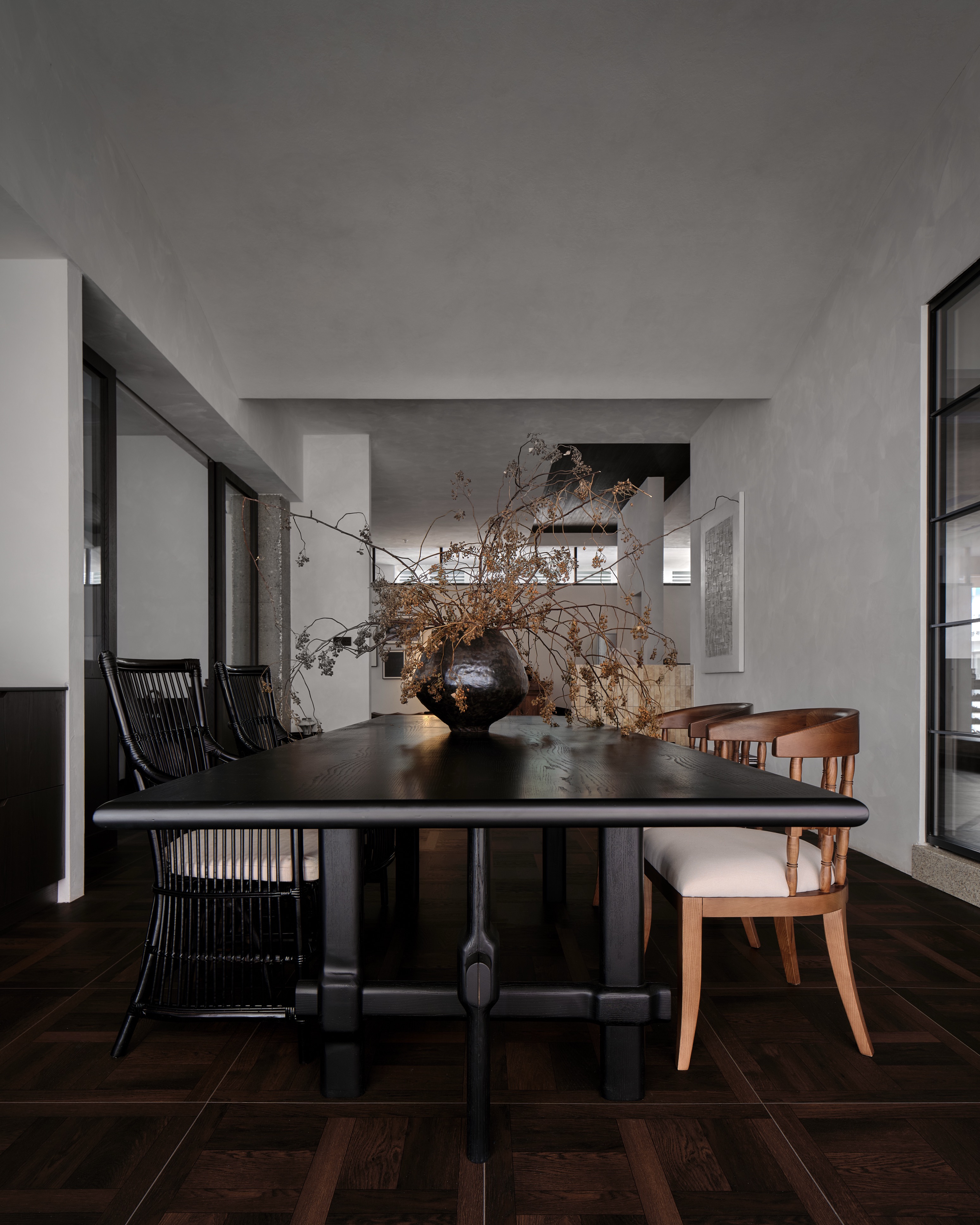 木质窗户、造型、吊顶、门部分,均采用铁柚木二手木地板拼接,有天然的旧木质感,造价也非常低 -