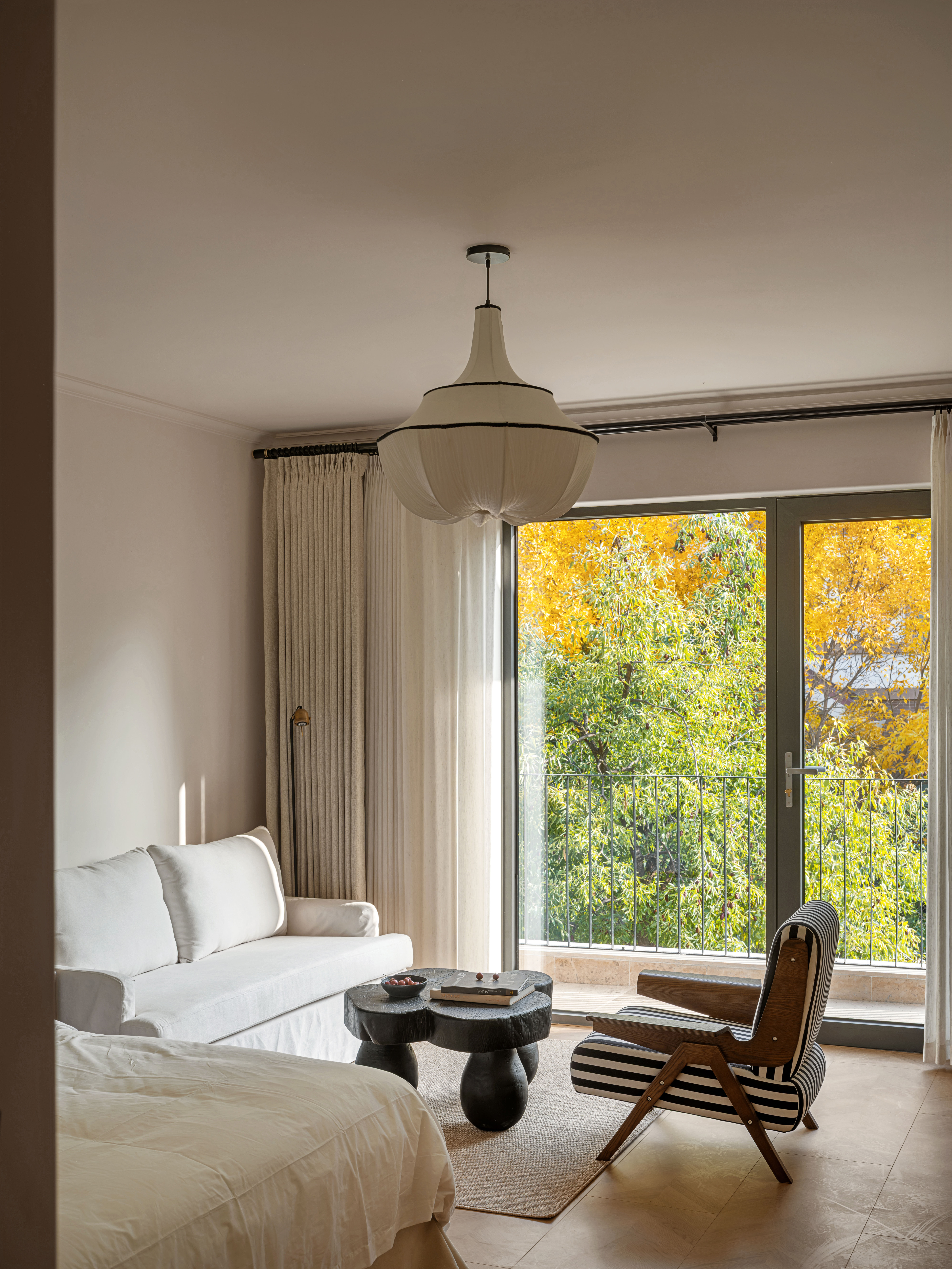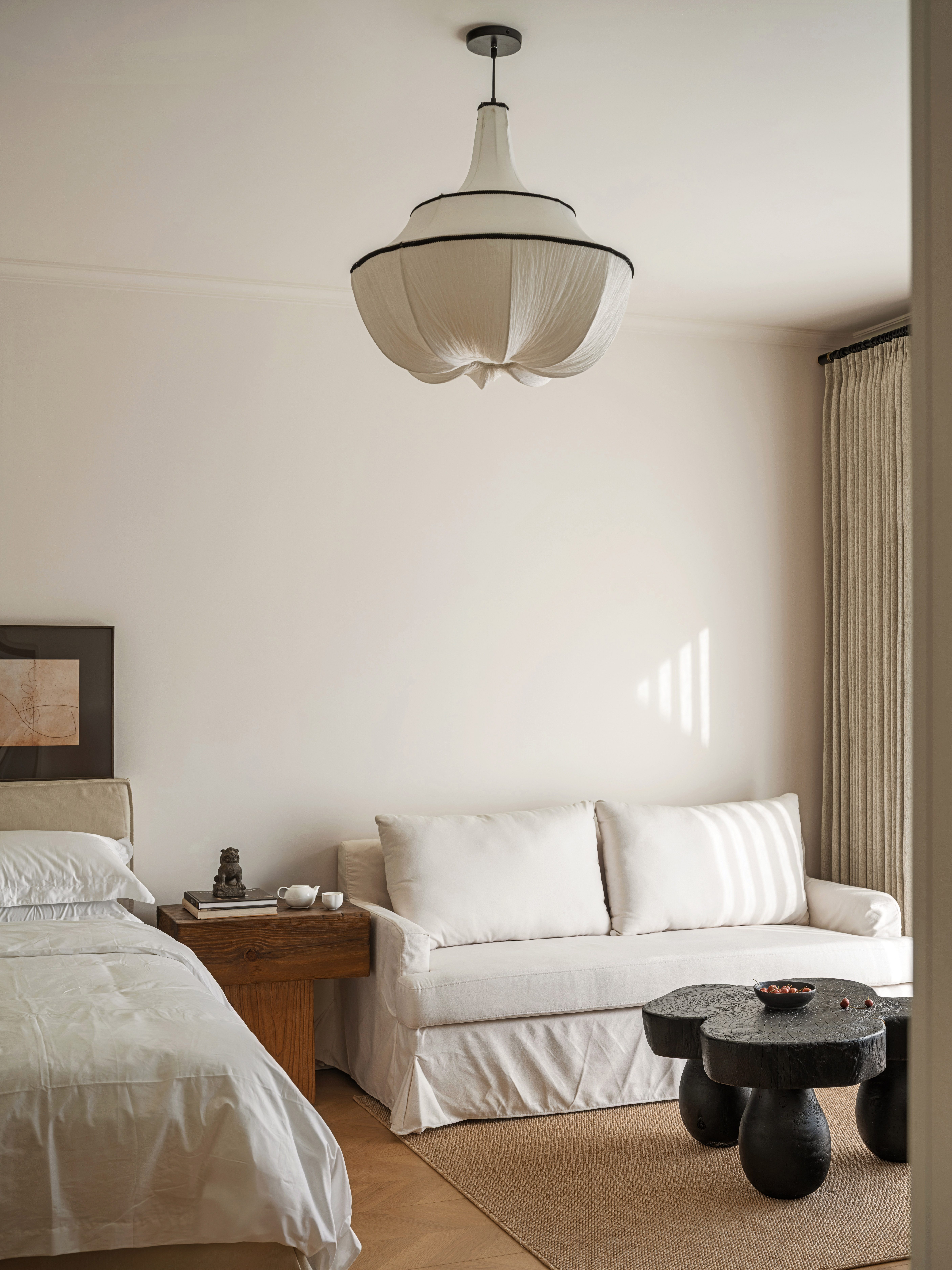 卧室选用麻织布料,随性,自然。