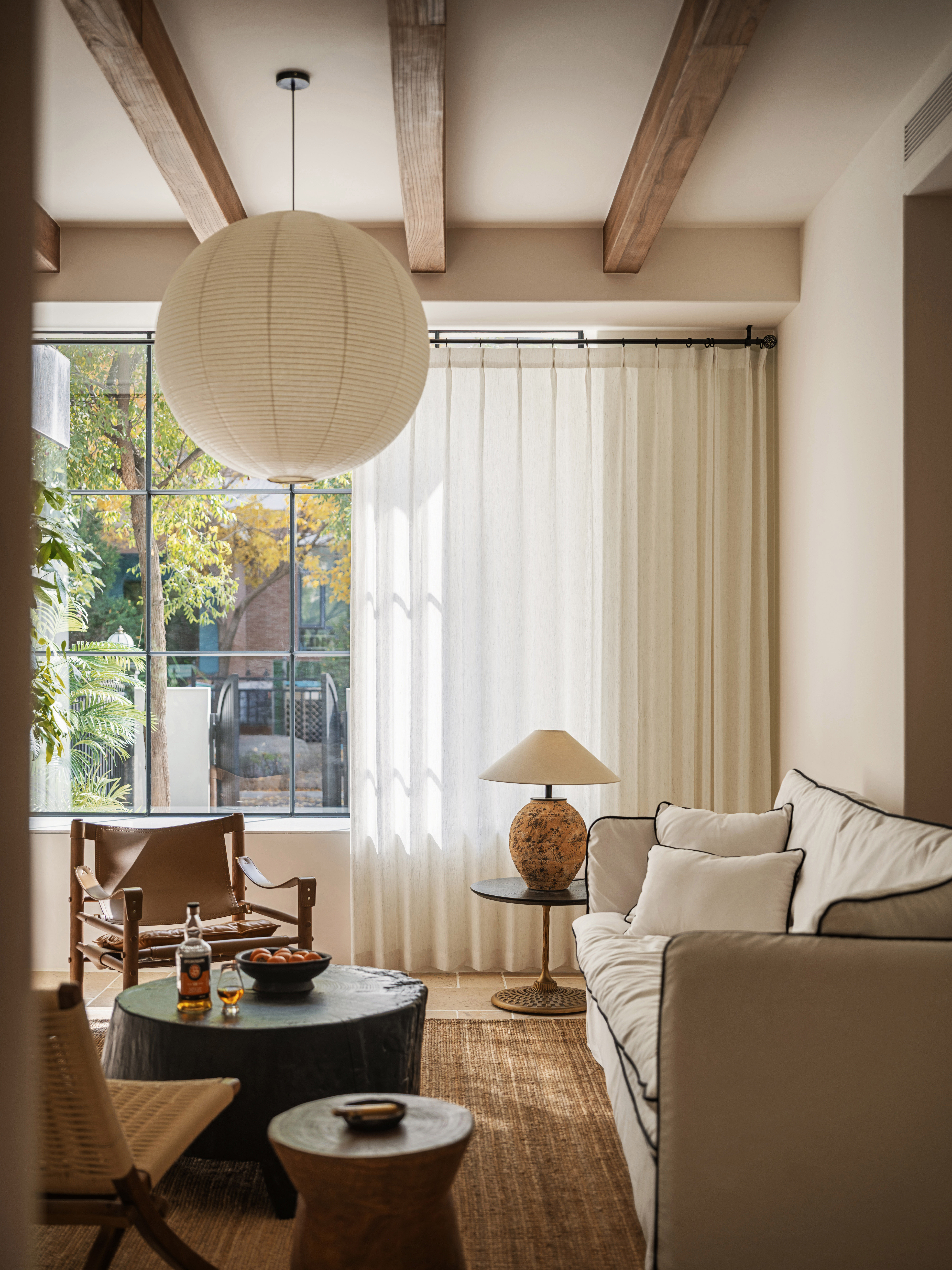 吊灯选用了和纸灯,增加了空间温暖的亲合力。