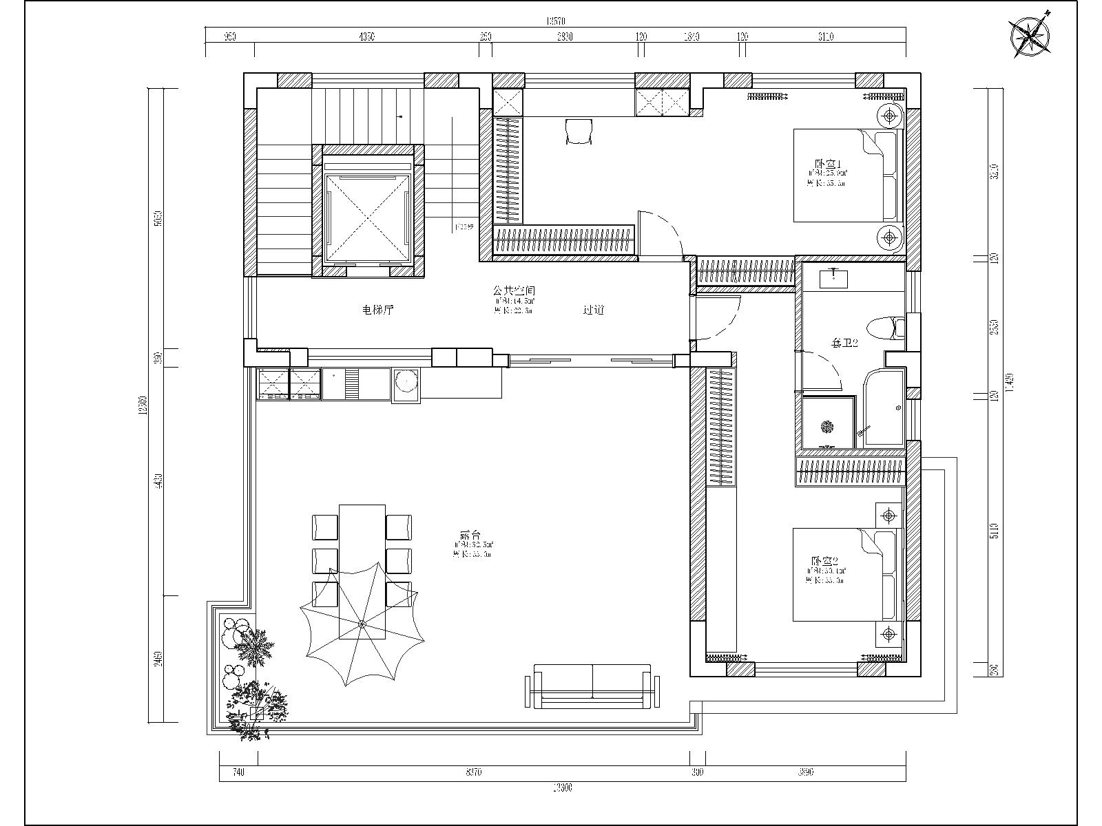 四层:私享休闲与景观层 1. 功能定位:顶层私享休闲区,融合观景、休憩、轻办公等个性化功能。 2. 空间规划: ◦ 核心打造露台休闲区,配置户外家具与景观绿植,利用顶层视野优势打造沉浸式户外休闲空间,满足观景、下午茶、小型聚会等需求; ◦ 室内规划卧室套间与过道过渡区,为主人的书房、健身区或客房,实现功能的灵活切换; ◦ 保留电梯厅与便捷的入户动线,与三层居住空间形成互补,成为独立的私享功能区。