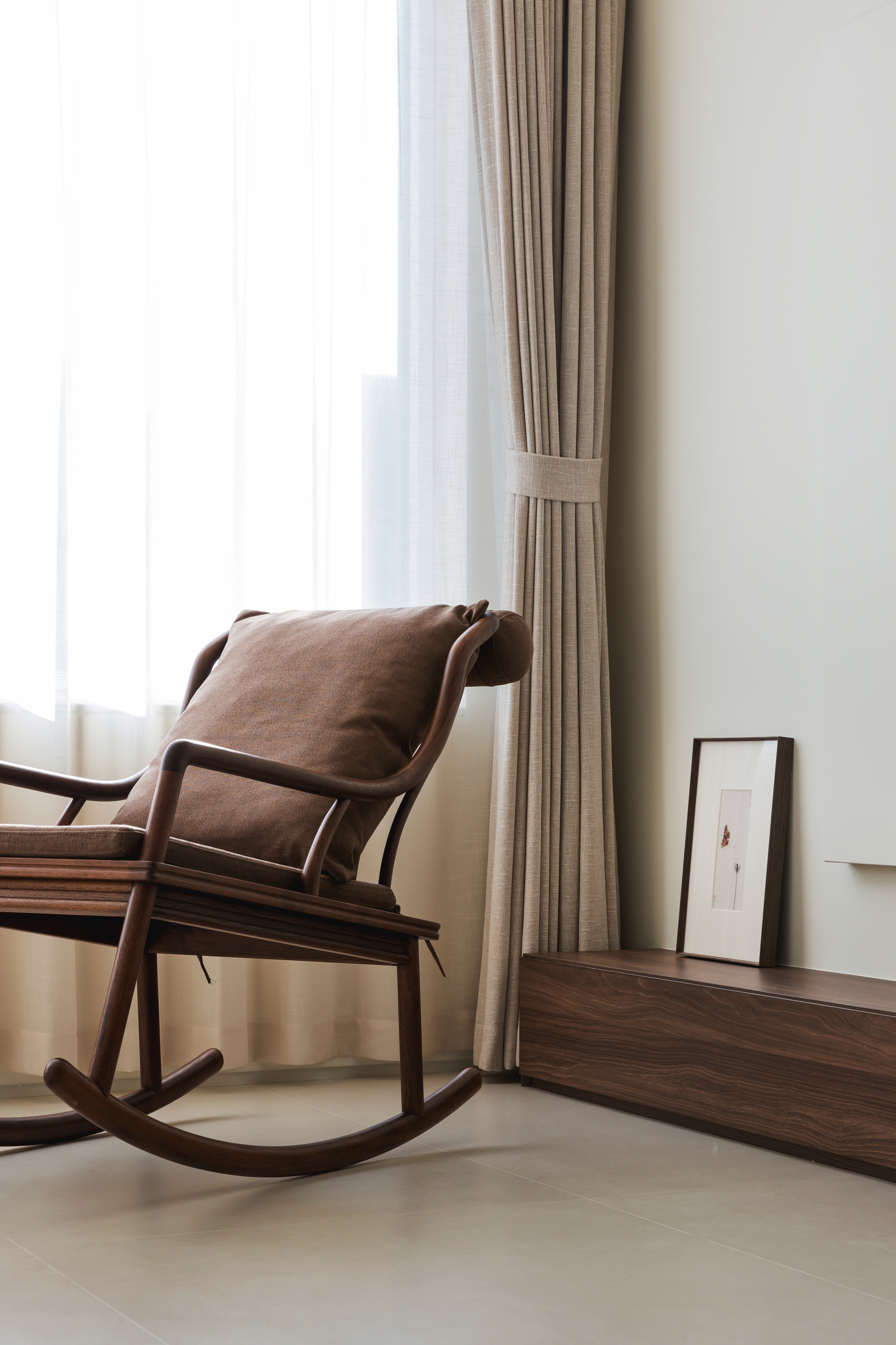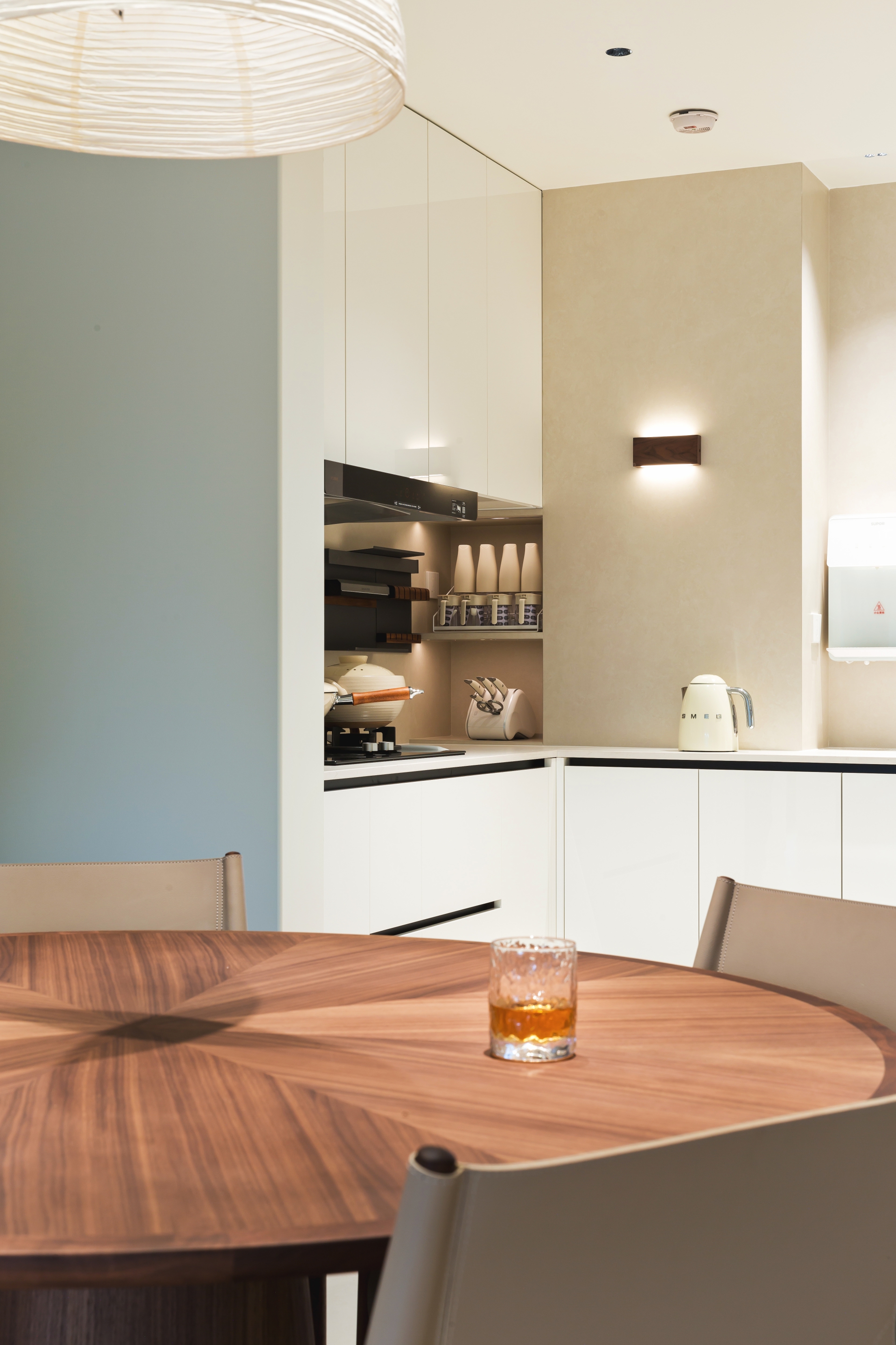 设计选材:强调触感与自然质感。使用带有手工肌理的白色艺术涂料、宣纸玻璃、哑光白橡木、本色亚麻与棉。材质温暖、亲肤,避免冰冷的工业感。