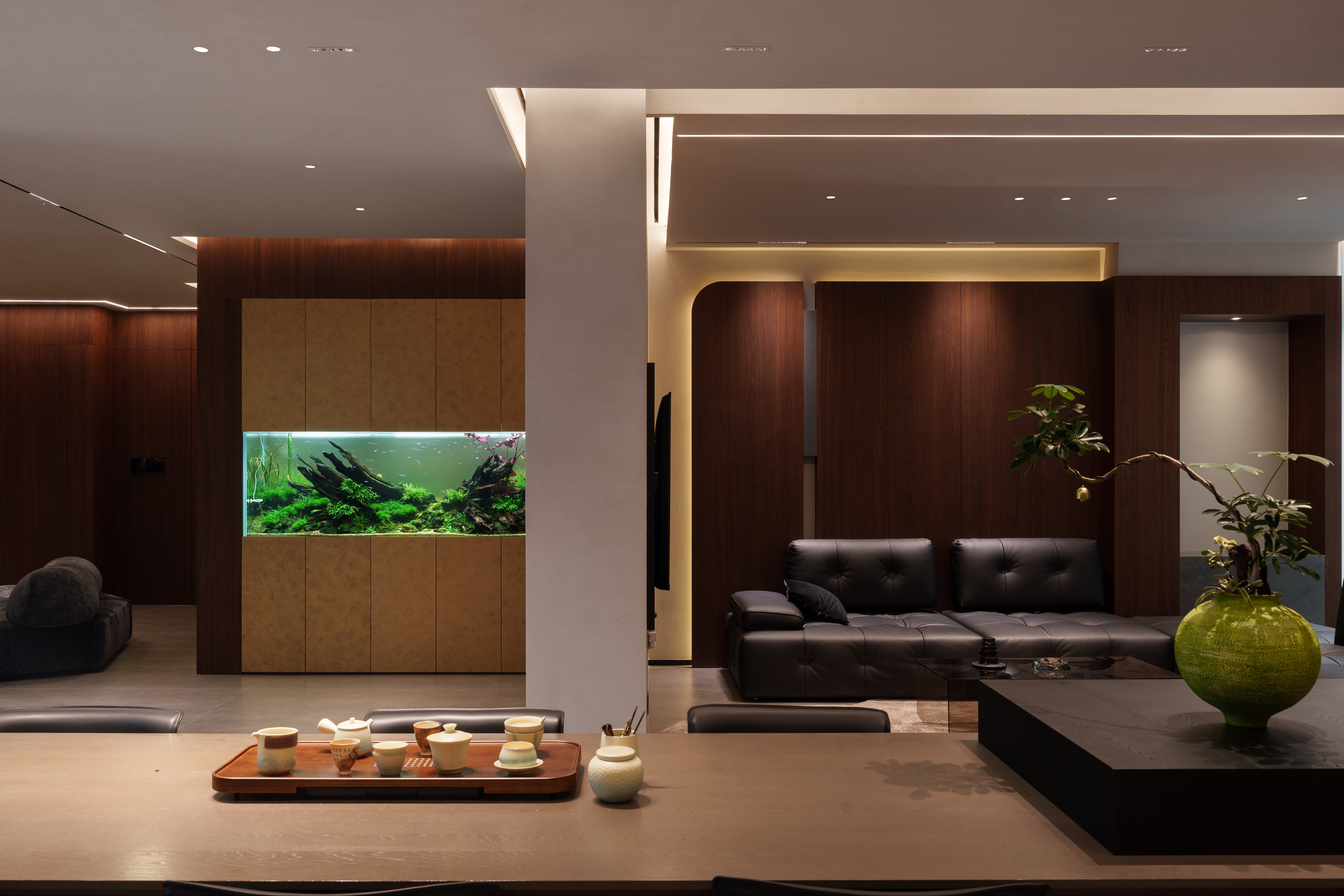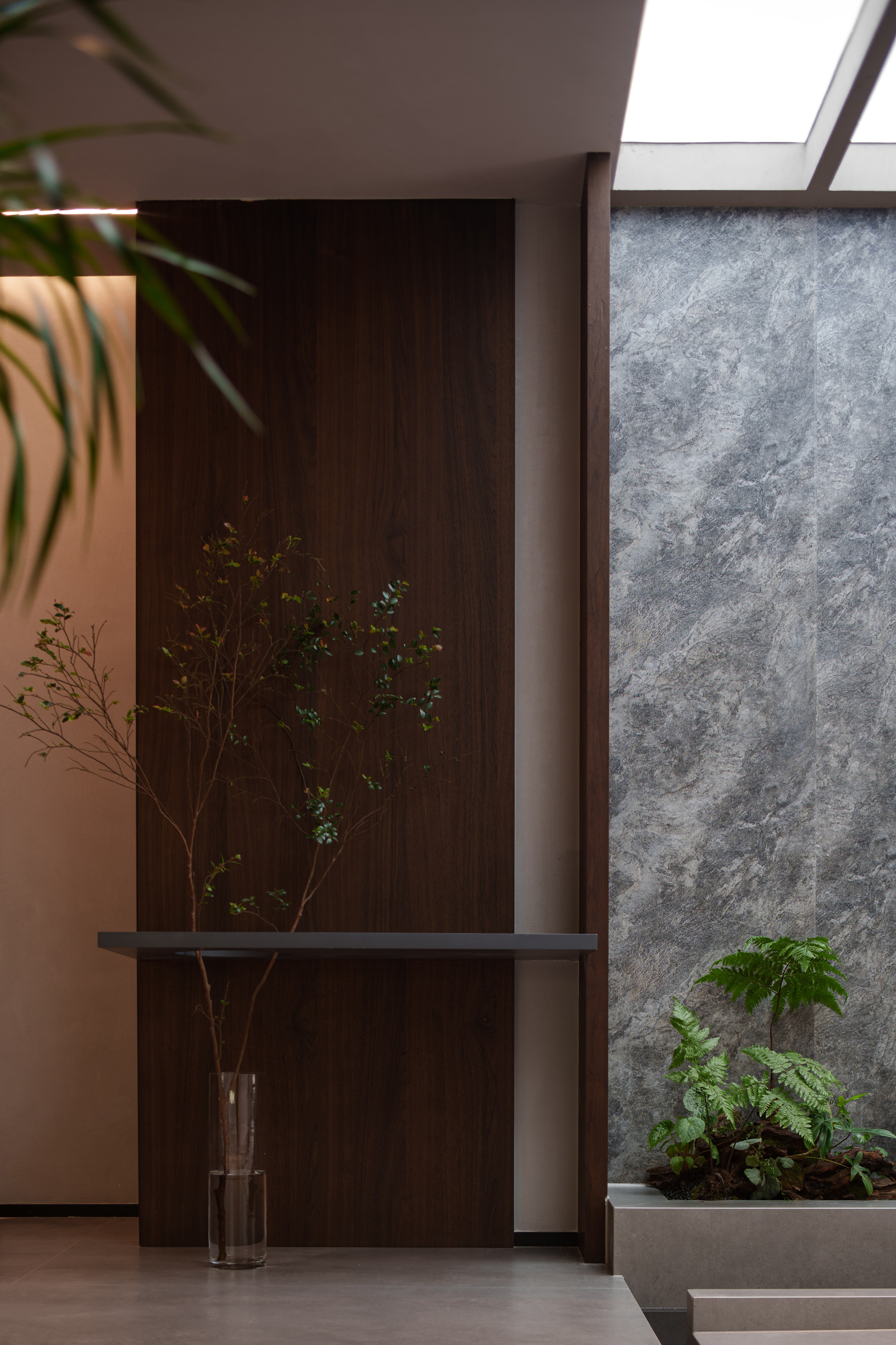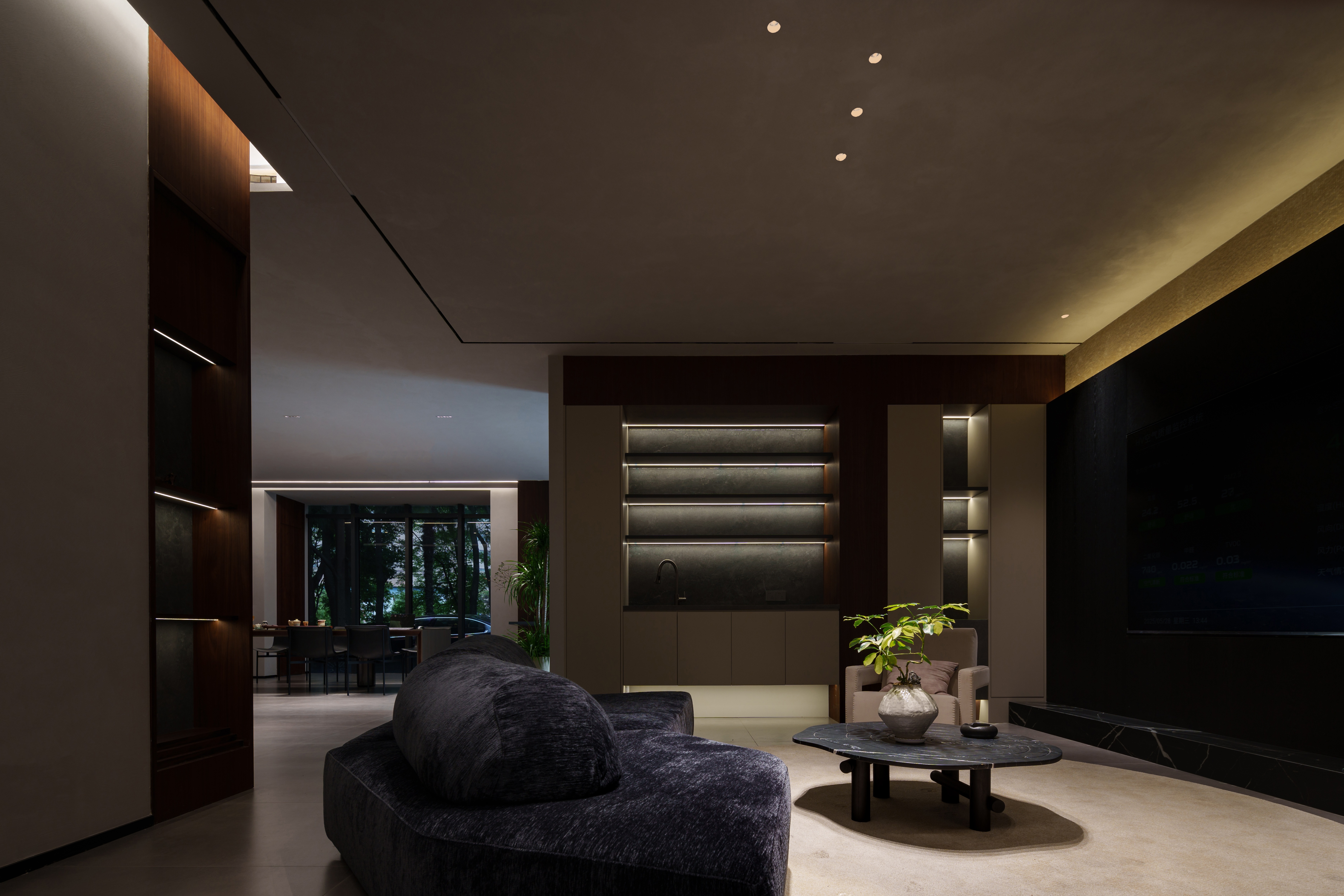 - 有机脉络 :胡桃木年轮肌理延展于立面与家具,形成牵引动线的“地磁经纬”,为极简空间注入生命温度。