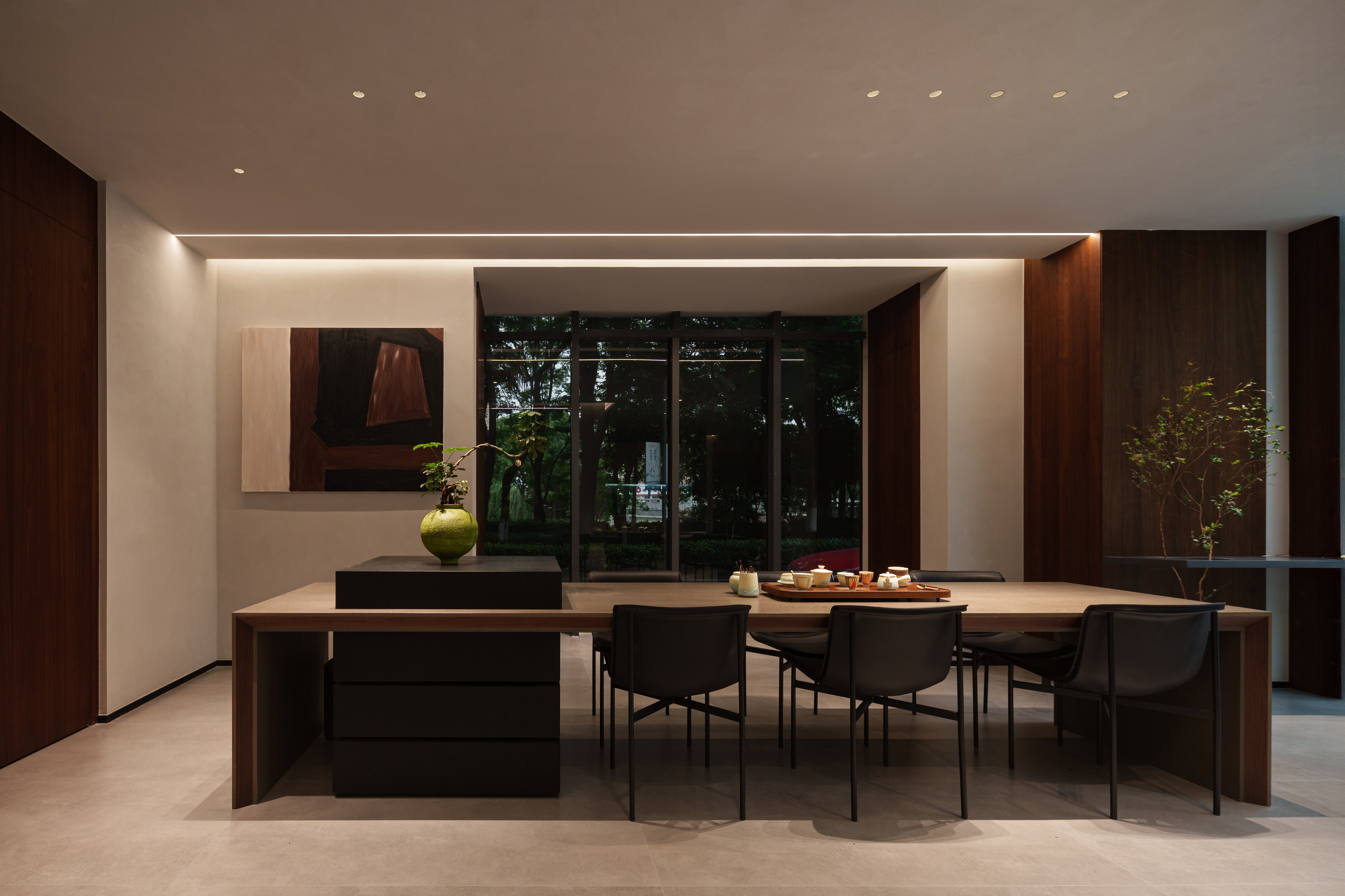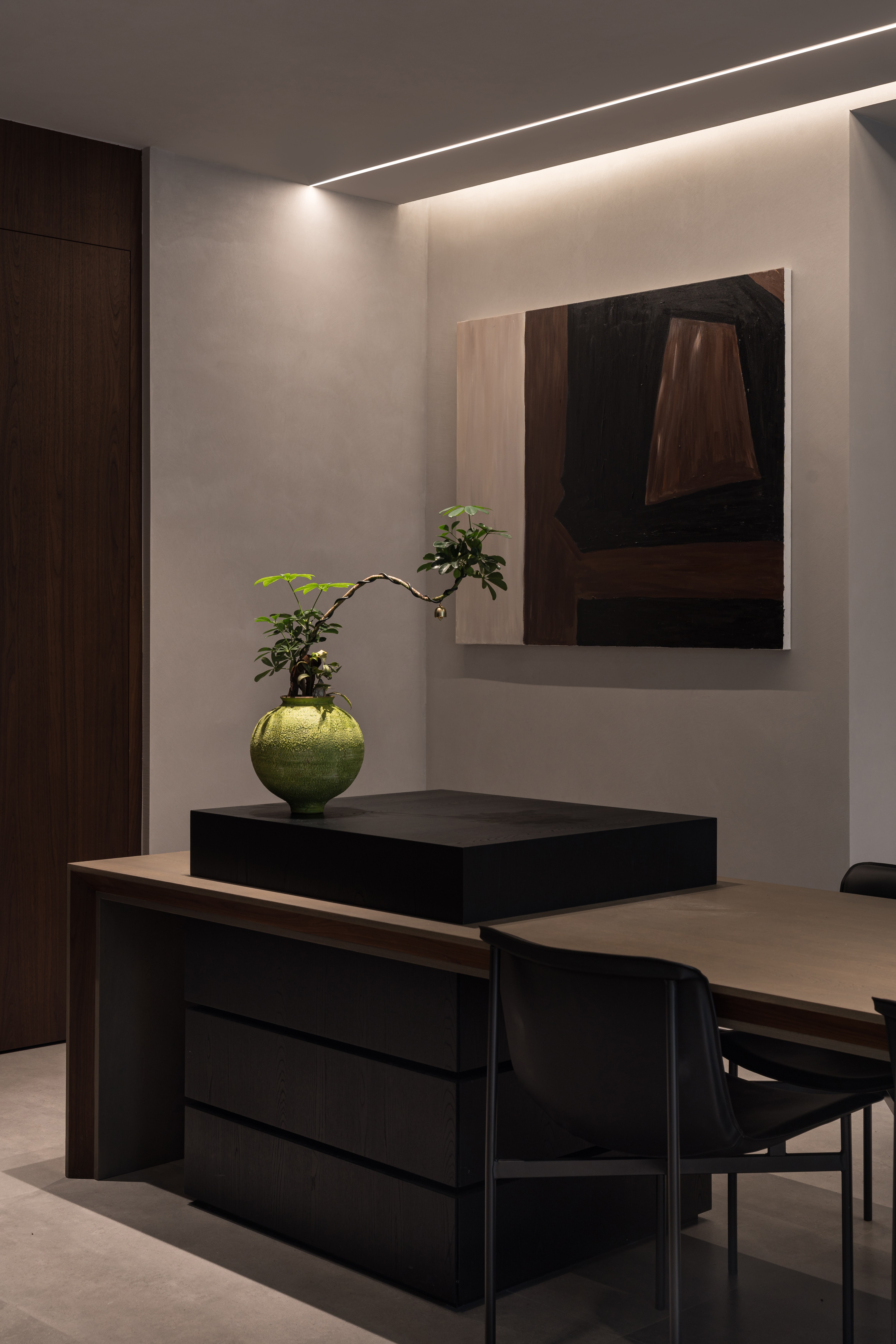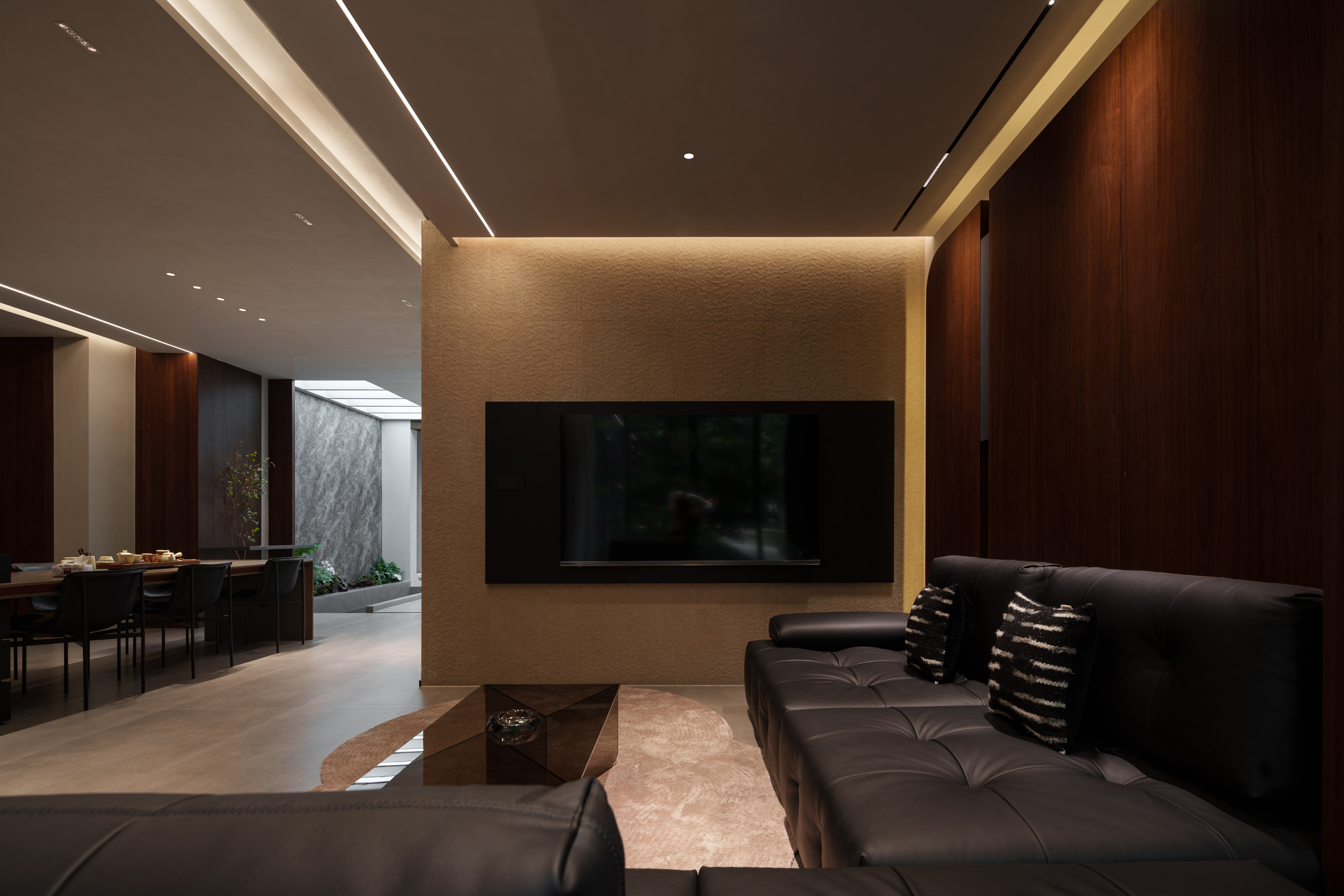 - 有机脉络 :胡桃木年轮肌理延展于立面与家具,形成牵引动线的“地磁经纬”,为极简空间注入生命温度。