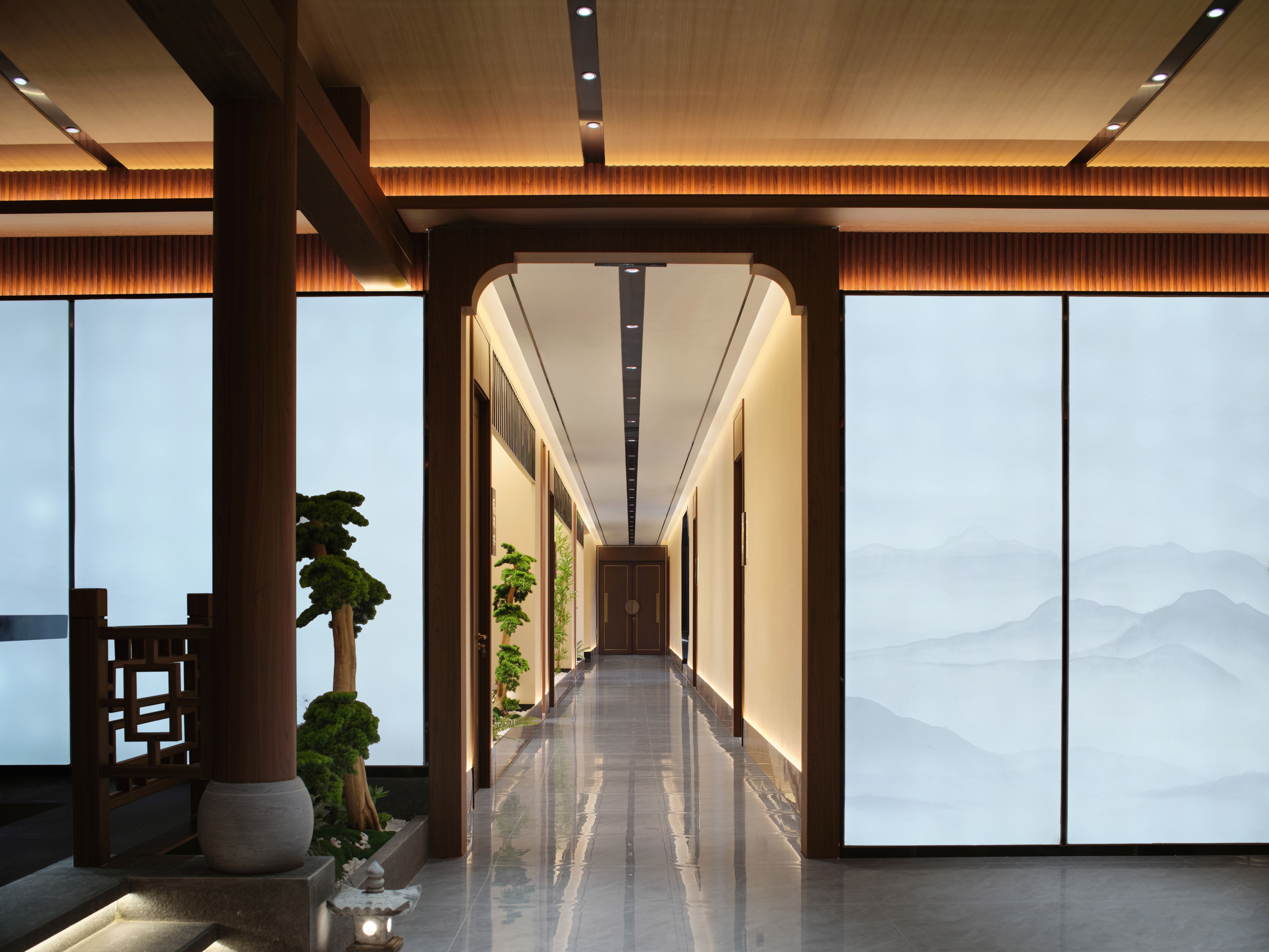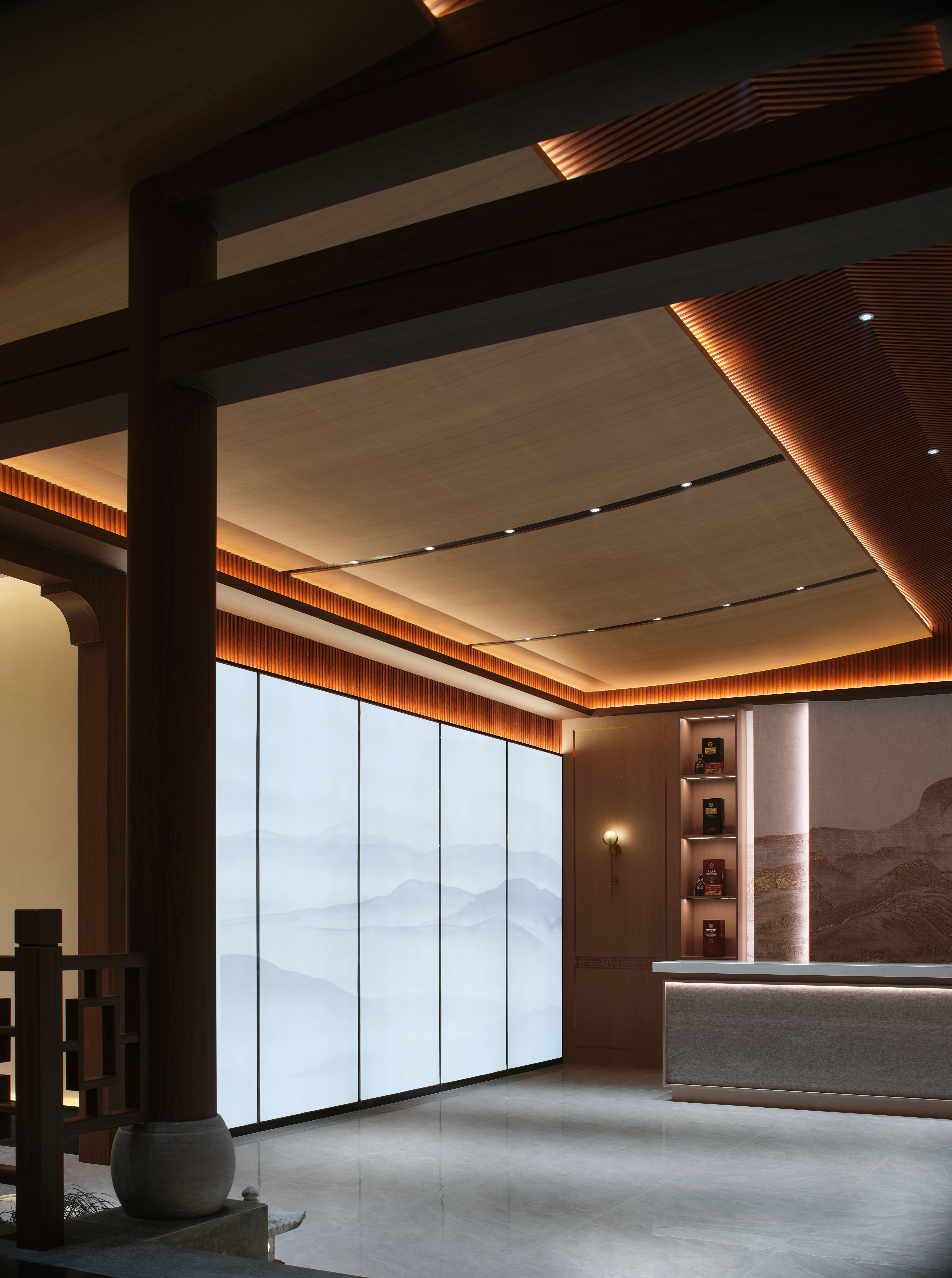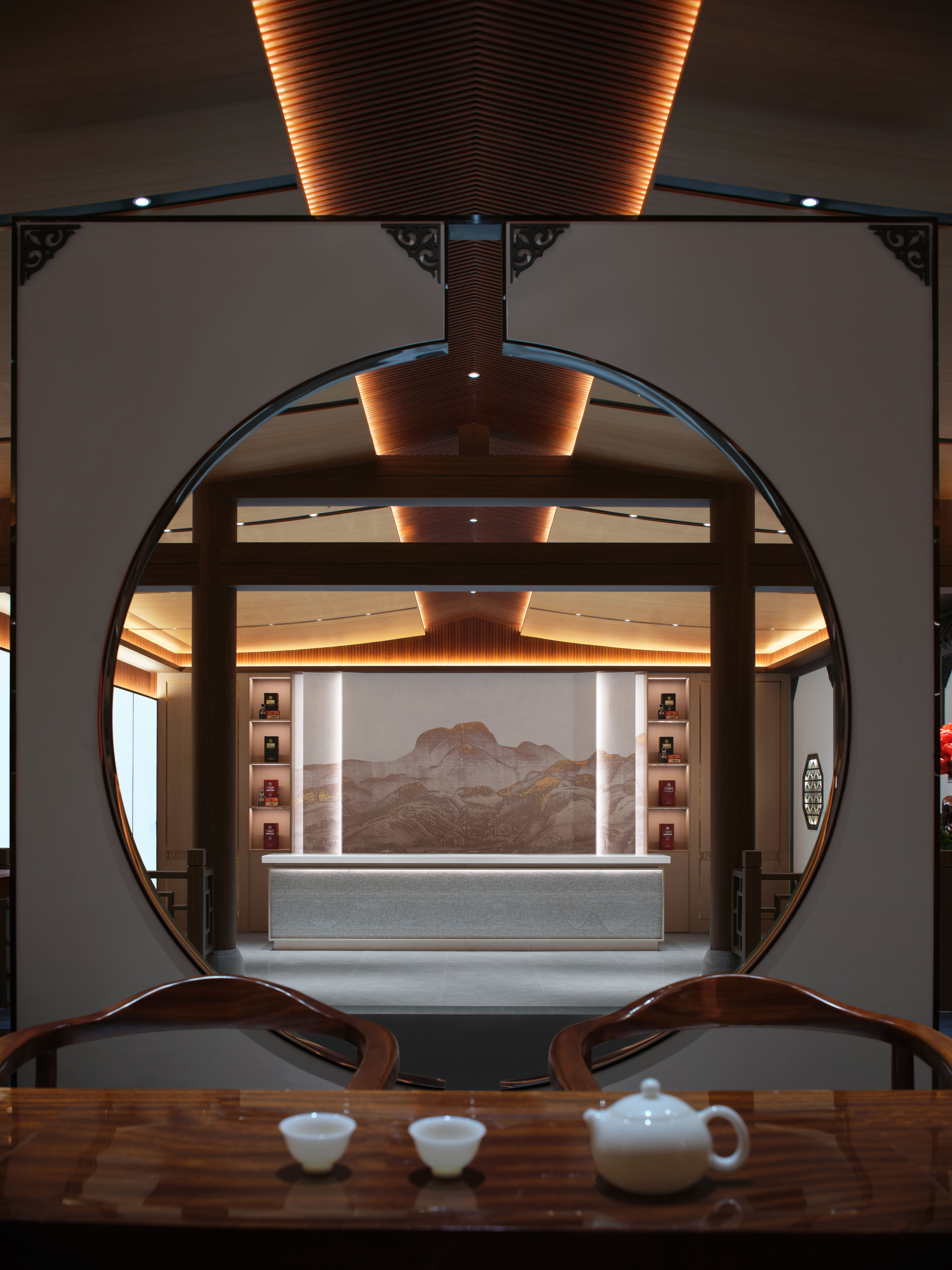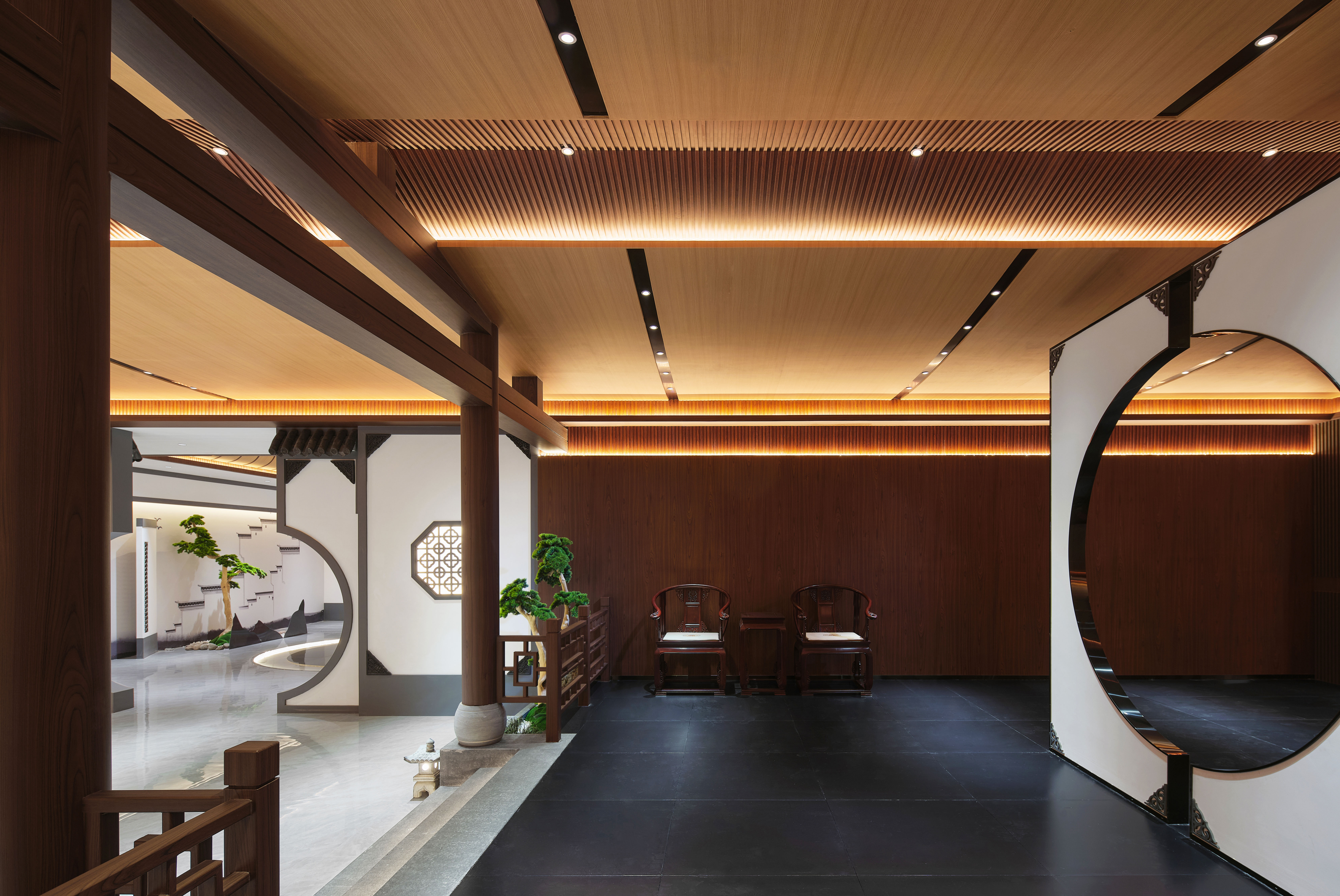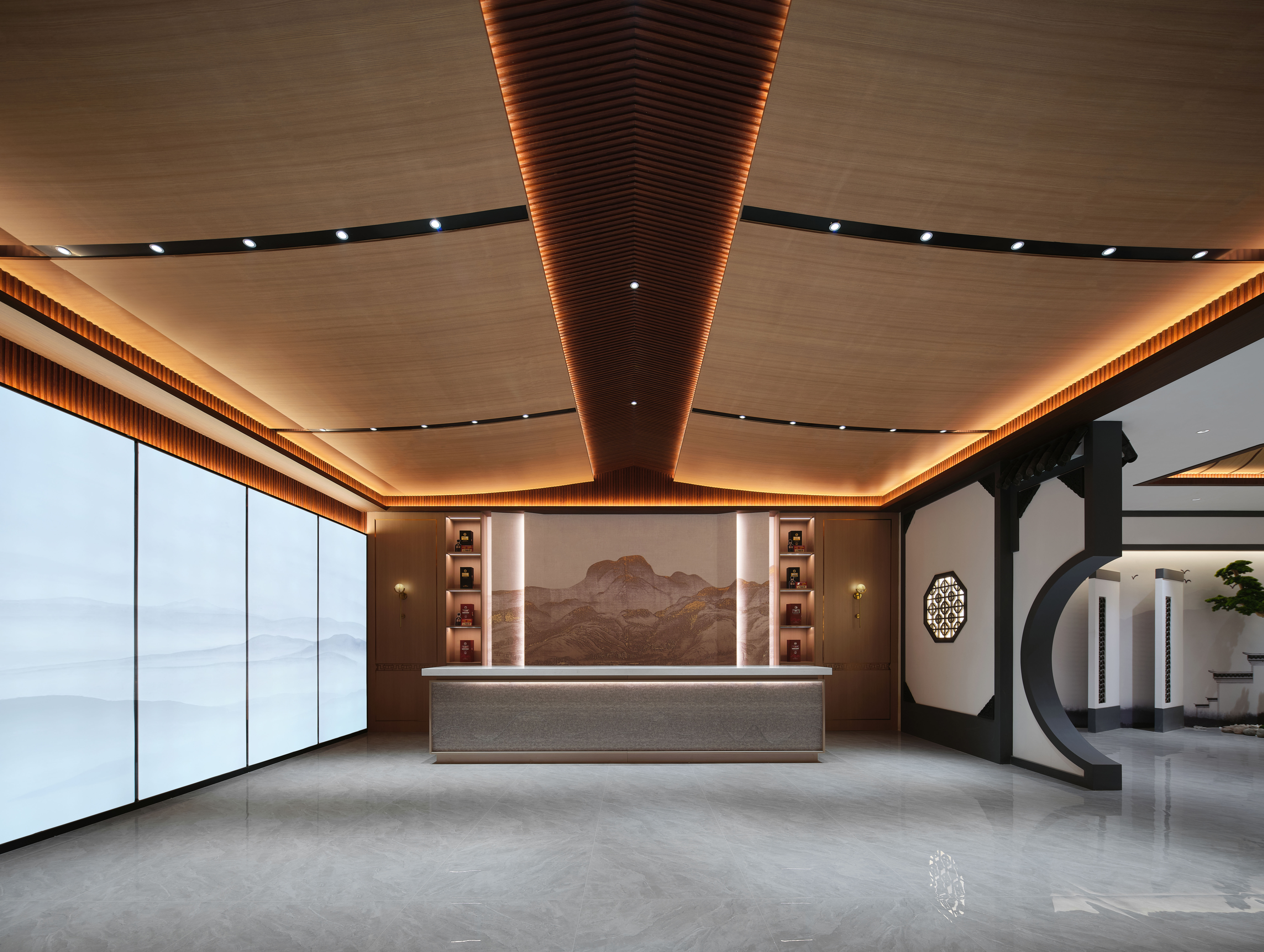 接待前厅延续诗意,设于大厅深处,韵味含蓄而典雅。