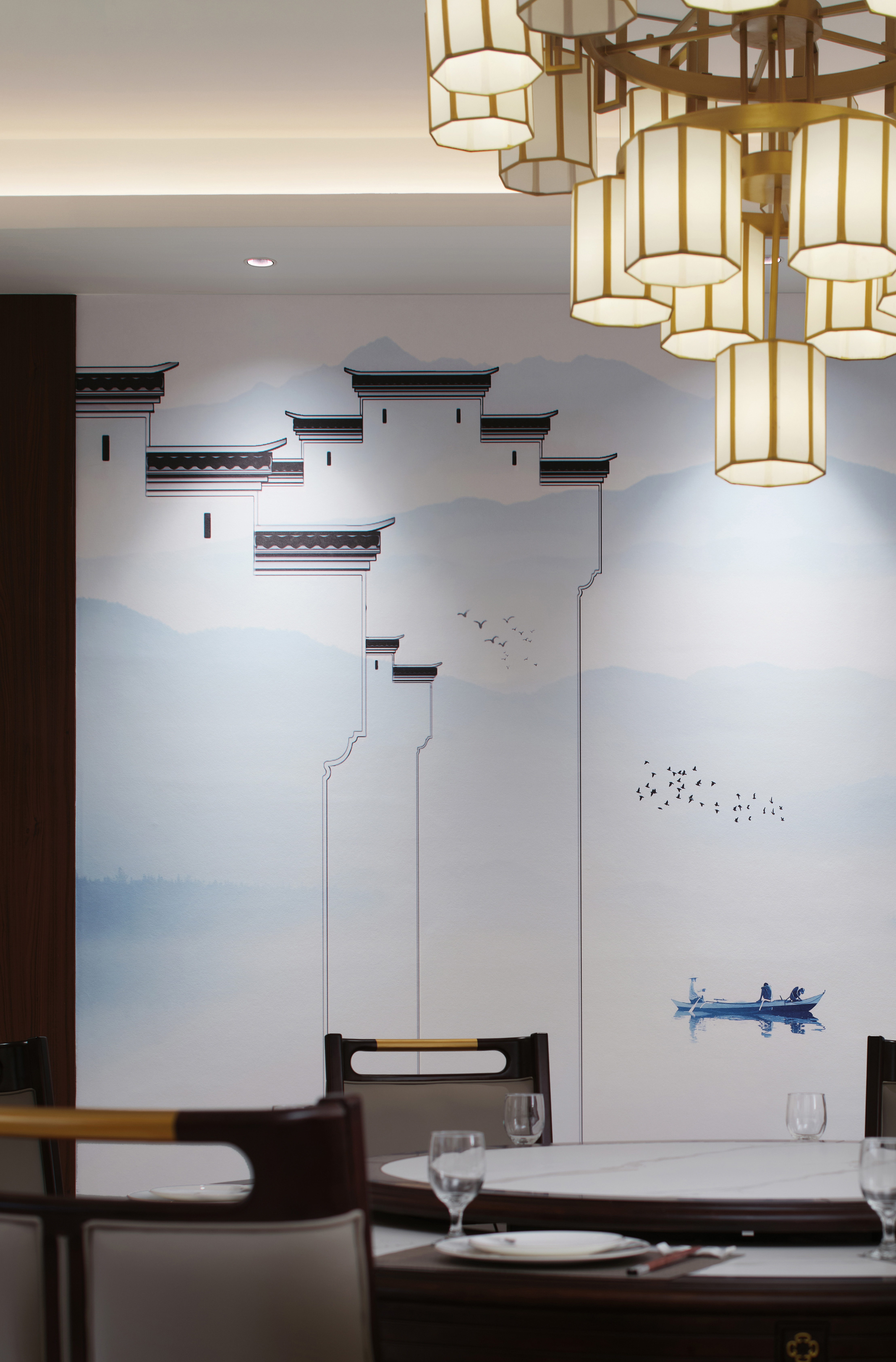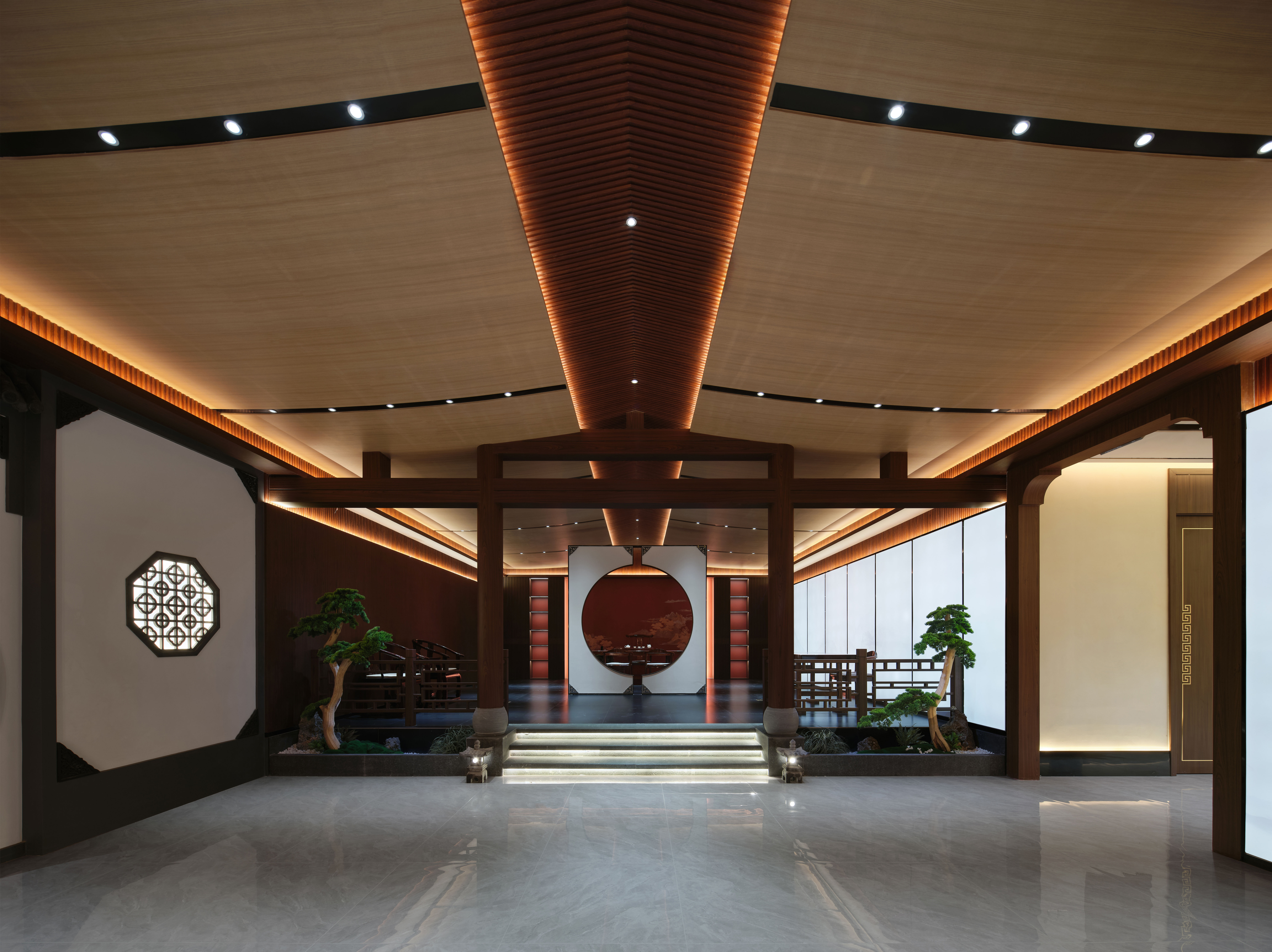 空间意境:现代设计为骨,中式美学为魂。取徽派建筑之形意,于空间中写意碰撞,勾勒出震撼的视觉画卷。