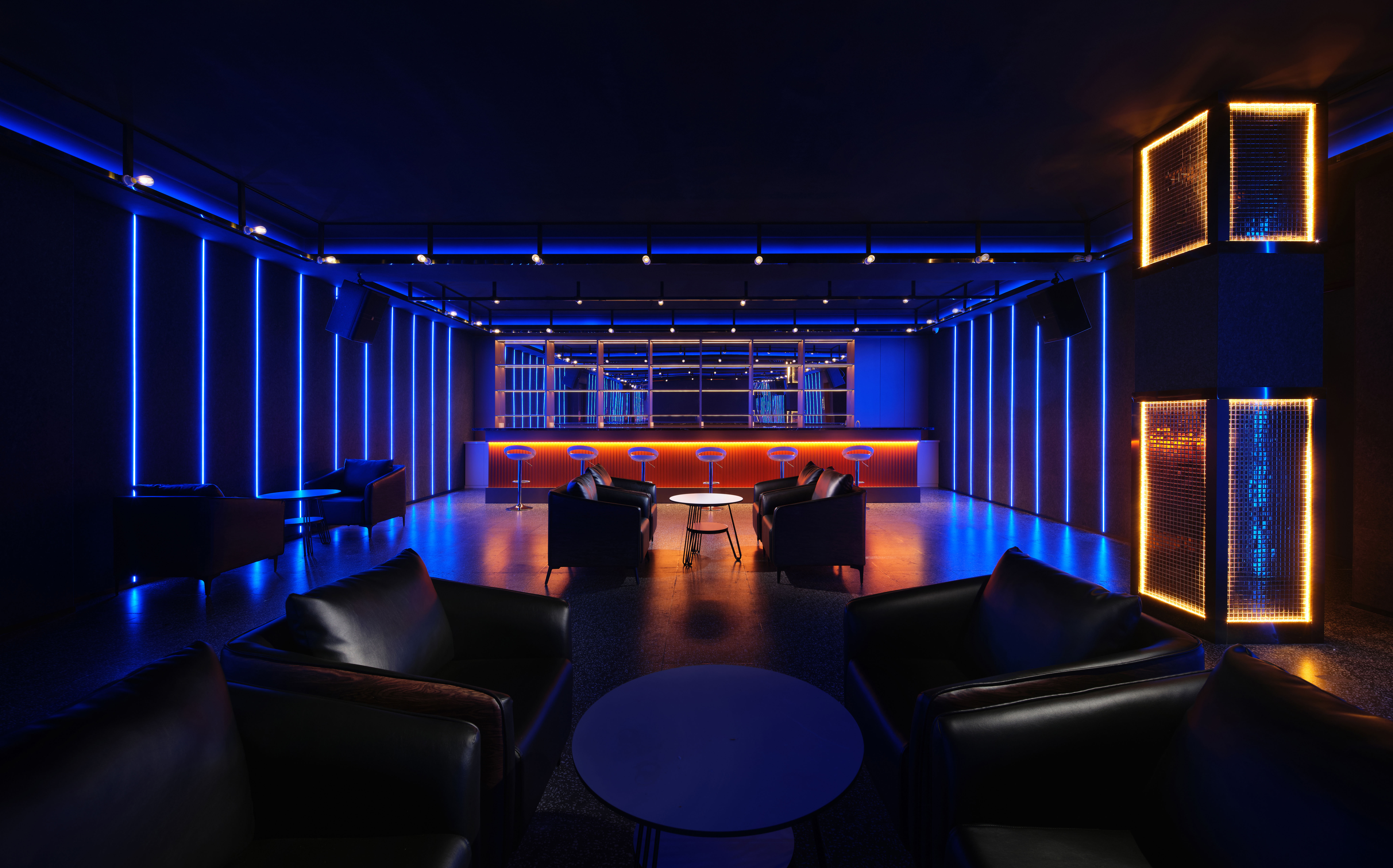 穿过长廊,酒吧休闲区豁然显现。此处氛围由静转动,灯光摇曳,音乐流动,成为整体布局中一处“隐秘的喧哗”,以热闹尾声收束空间叙事,形成张弛有度的节奏对比。 -