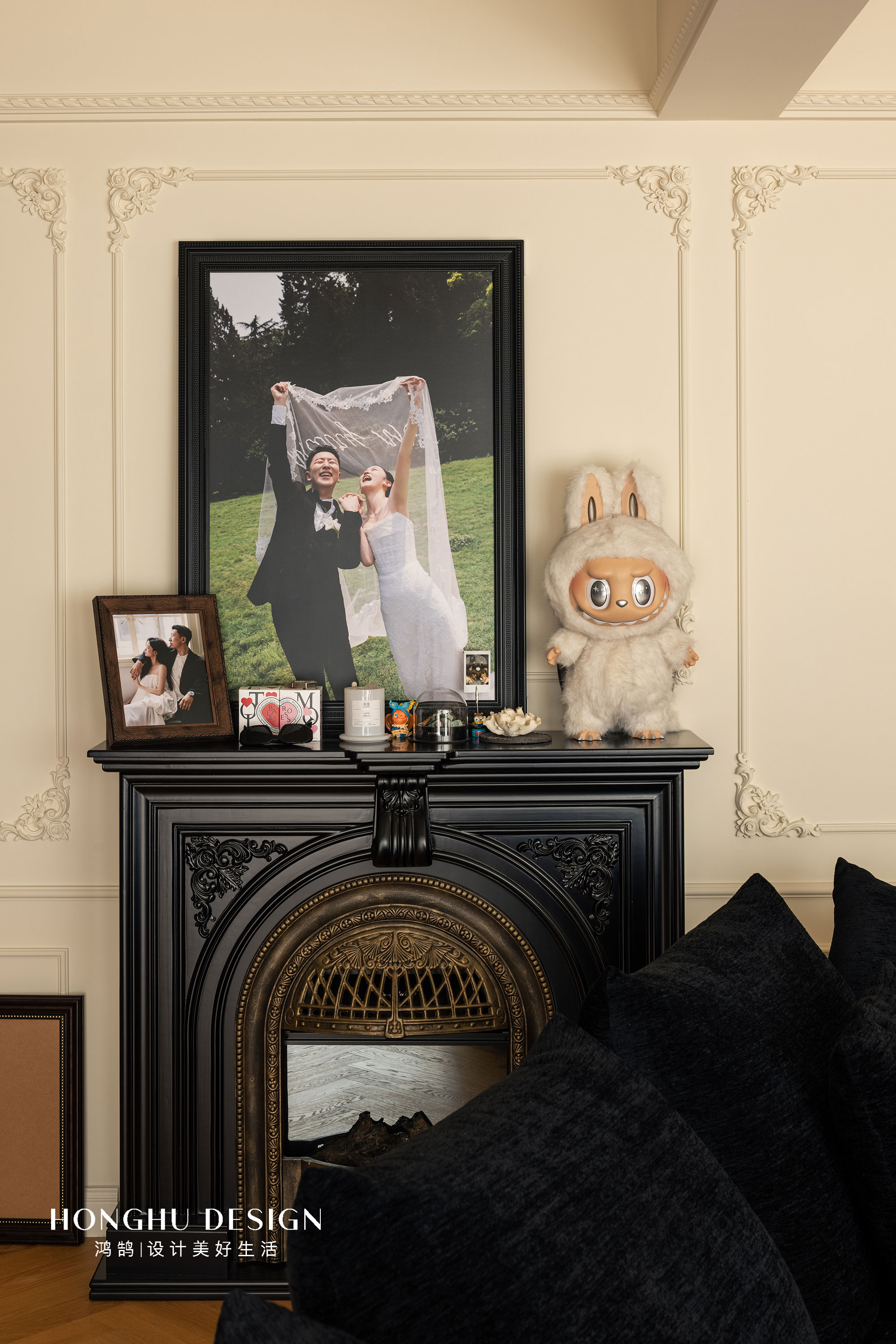 女业主特别喜爱的中古壁炉也很好地融入到空间里,男业主很重视生活的每一个瞬间,所以他需要将每个瞬间都能展现在这个充满“爱”的家里。