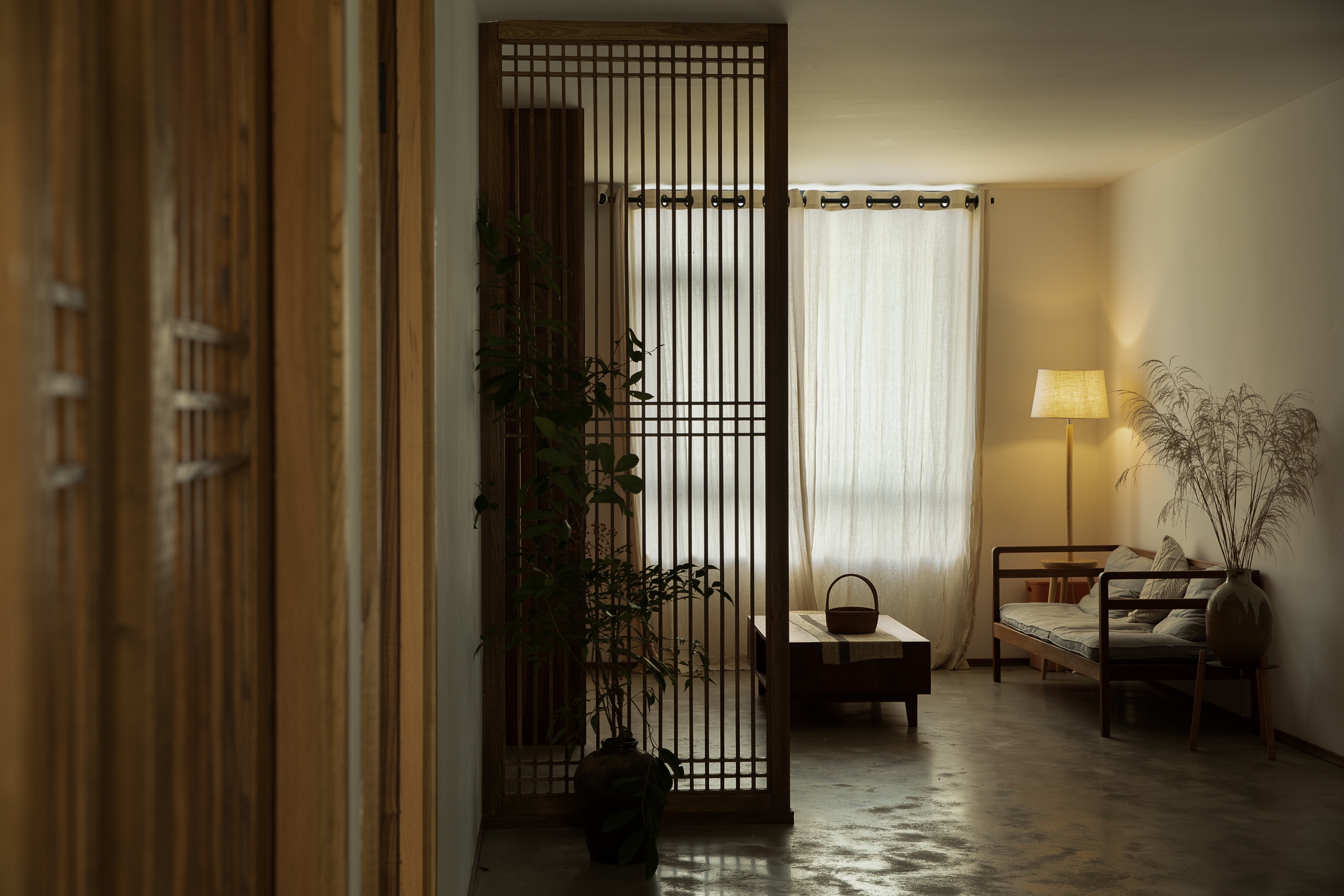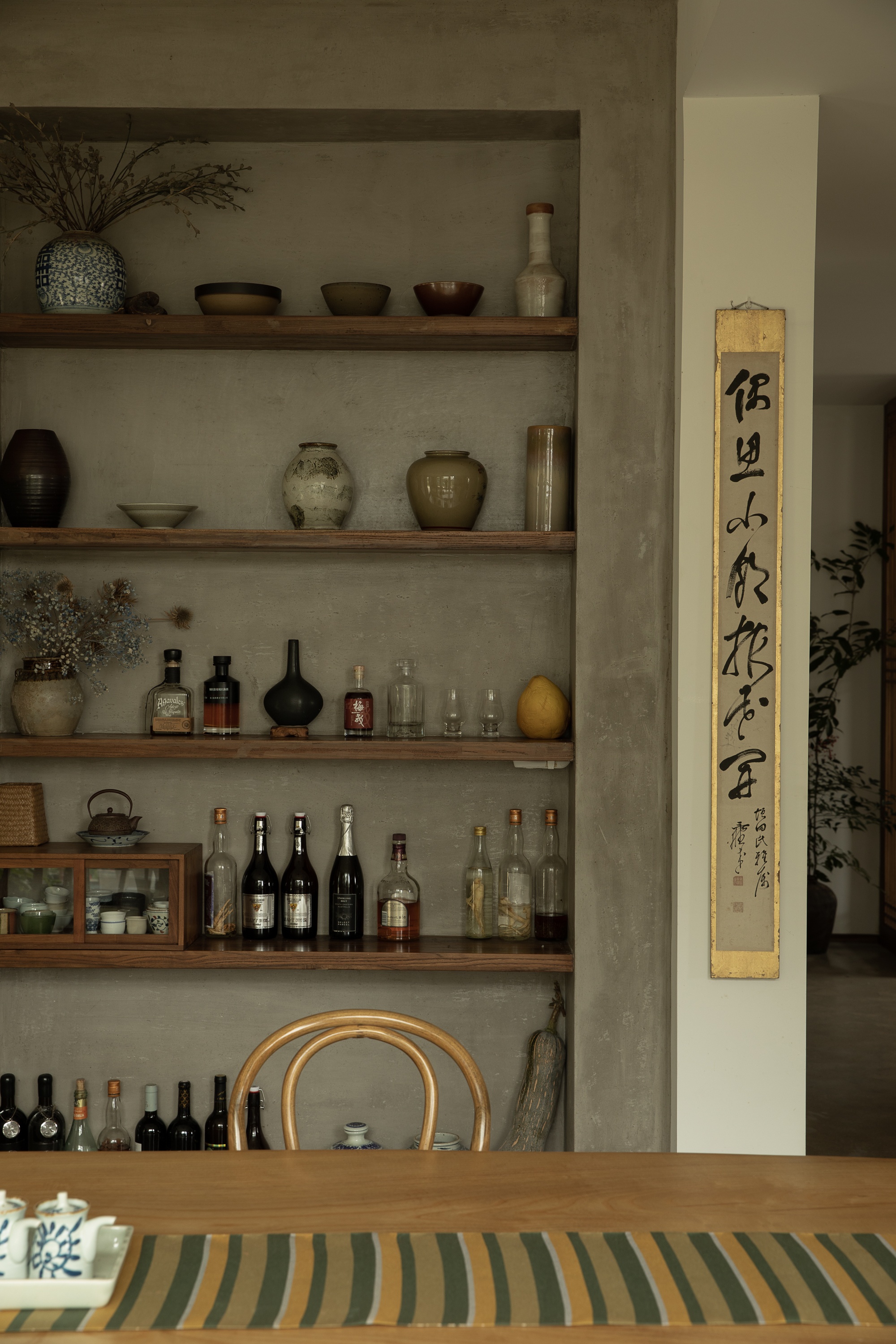 设计选材:空间不仅是当下的存在,它也是时间的见证者。水泥地面与实木肌理,让粗粝的矿物质地与温润的木质脉络相互对话,在“不完美”的材质语言中,发现残缺的美感,模糊了建筑与自然的边界,又让每个生活褶皱都沉淀出独特的光泽。