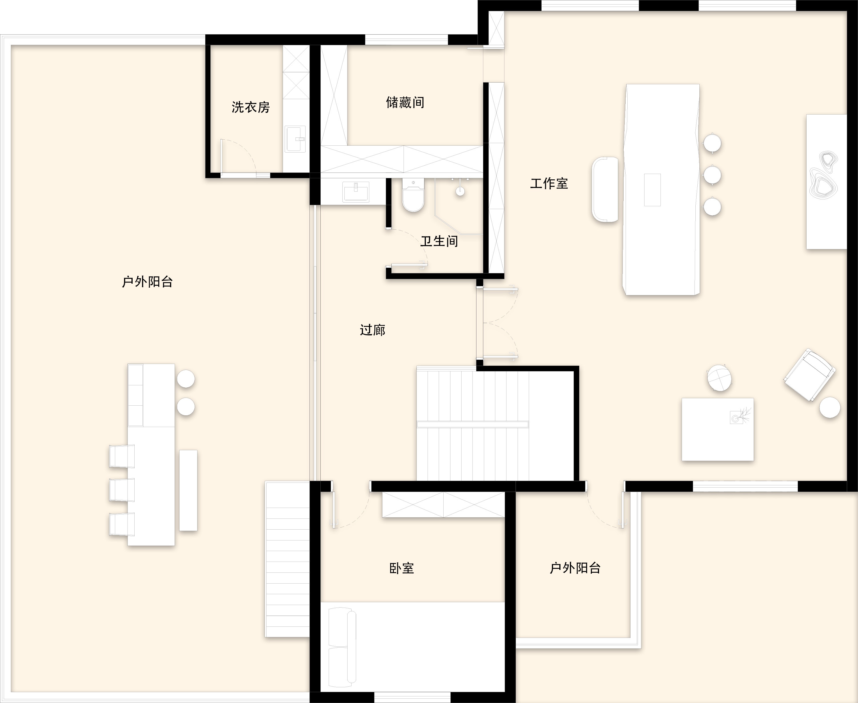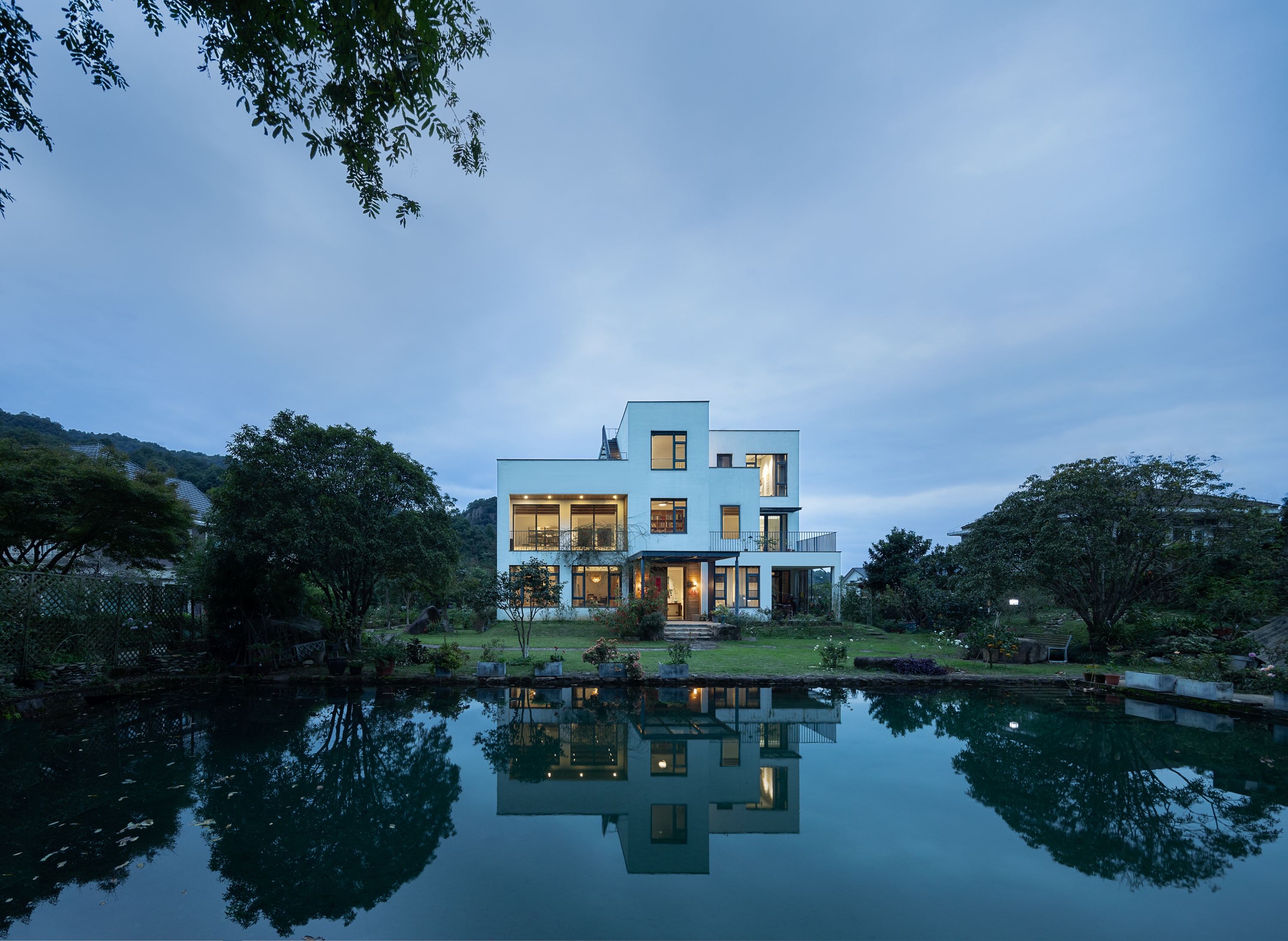 空间布局:项目原身为传统美式风格的三层建筑,顶层阁楼未得到充分利用,且封闭式结构与狭小的窗口限制了自然采光,但环绕建筑的山水胜景激发了设计团队的改造灵感,通过对室内结构进行大刀阔斧的改动,打开空间的禁锢,构建场景间的有机联系,以开放的姿态重新定义空间的边界,完成人与环境的交互。