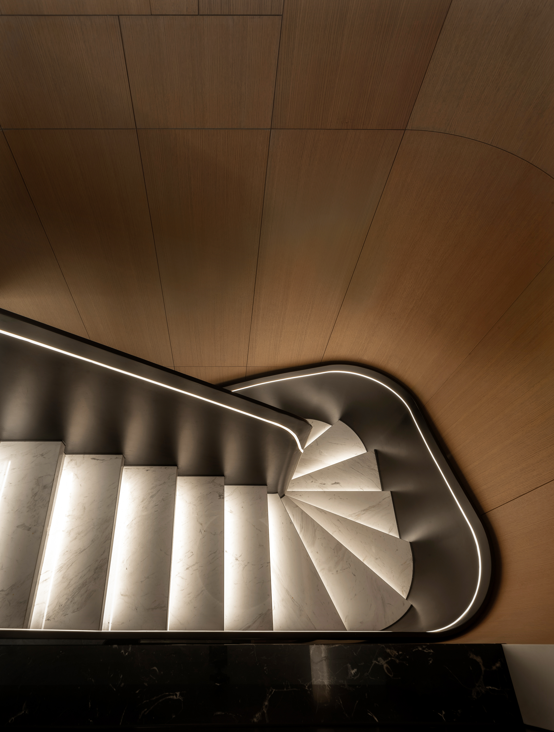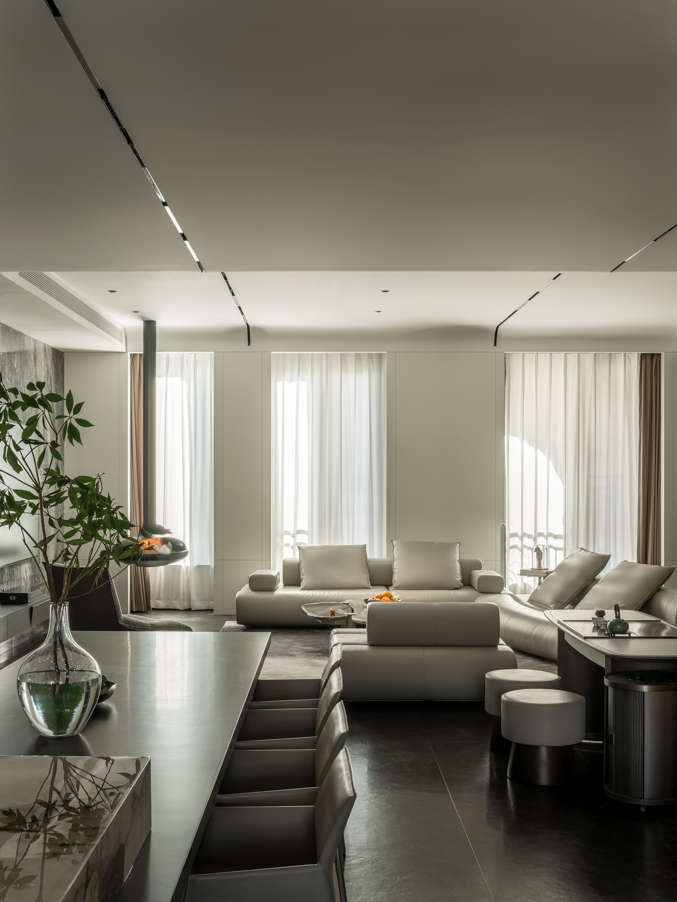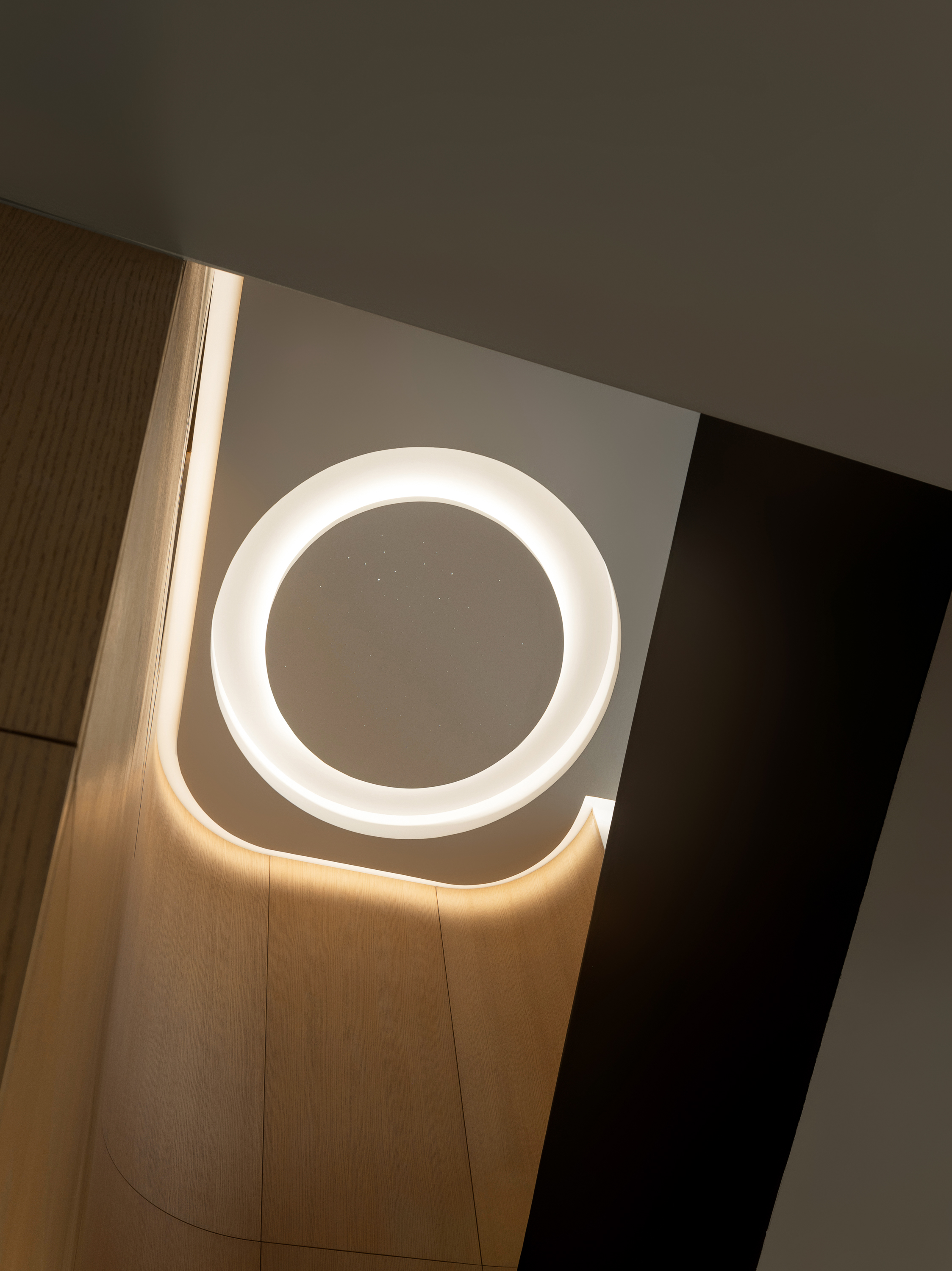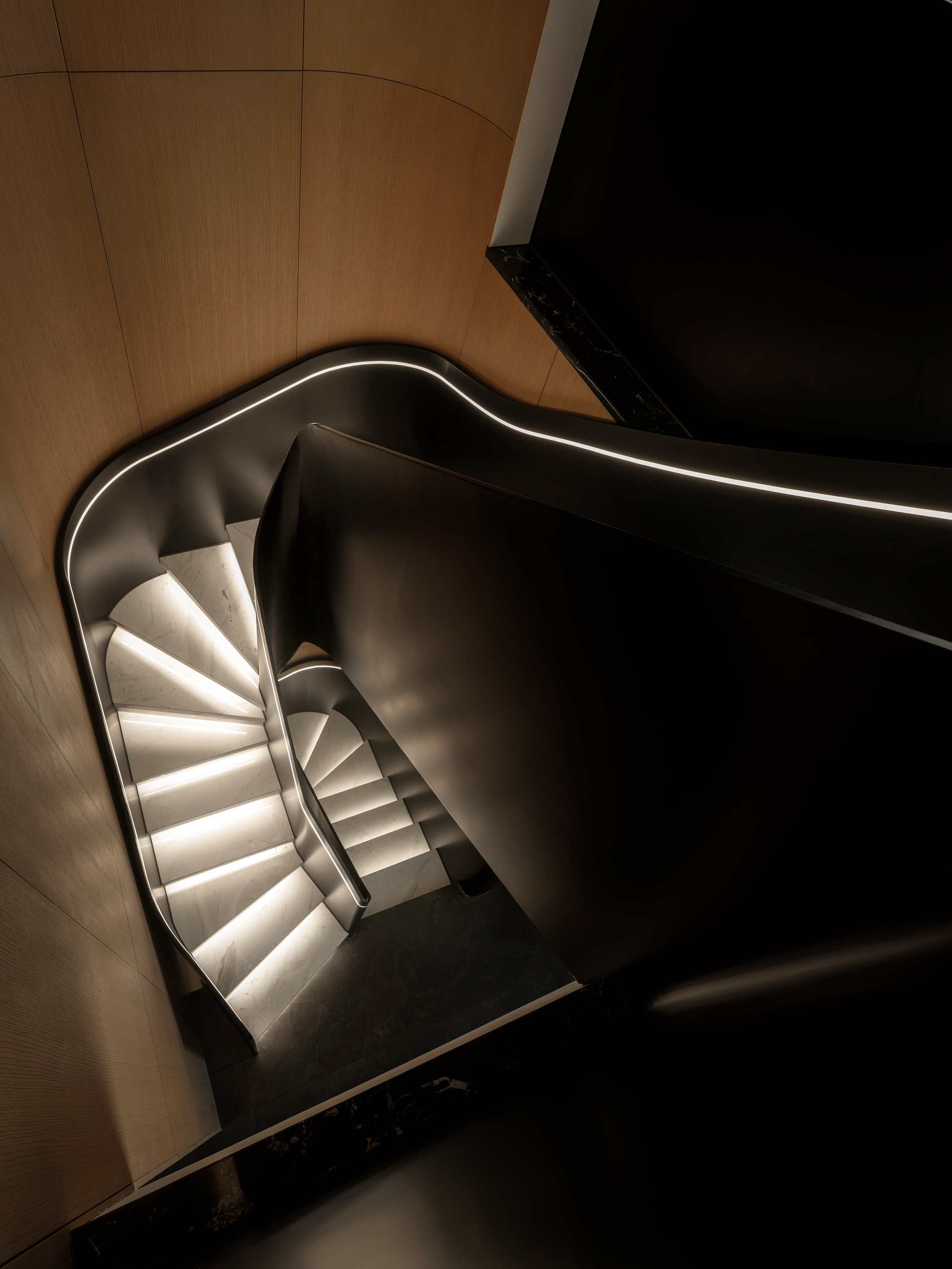 本案为一栋地上三层、地下两层的别墅。设计以现代为基调,在黑白木色的冷静框架中,融入石材与金属的细节点缀,营造温馨而雅致的氛围。空间逻辑上,我们着重解决家庭互动与私密分区的平衡,并通过结构优化与功能重组,为居住注入更多生活的叙事性。 -