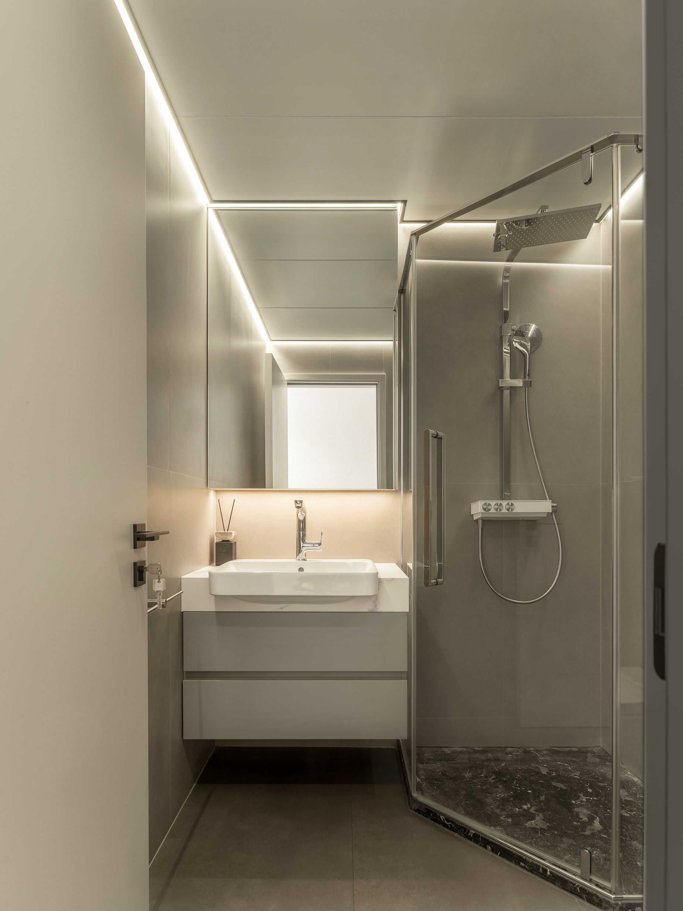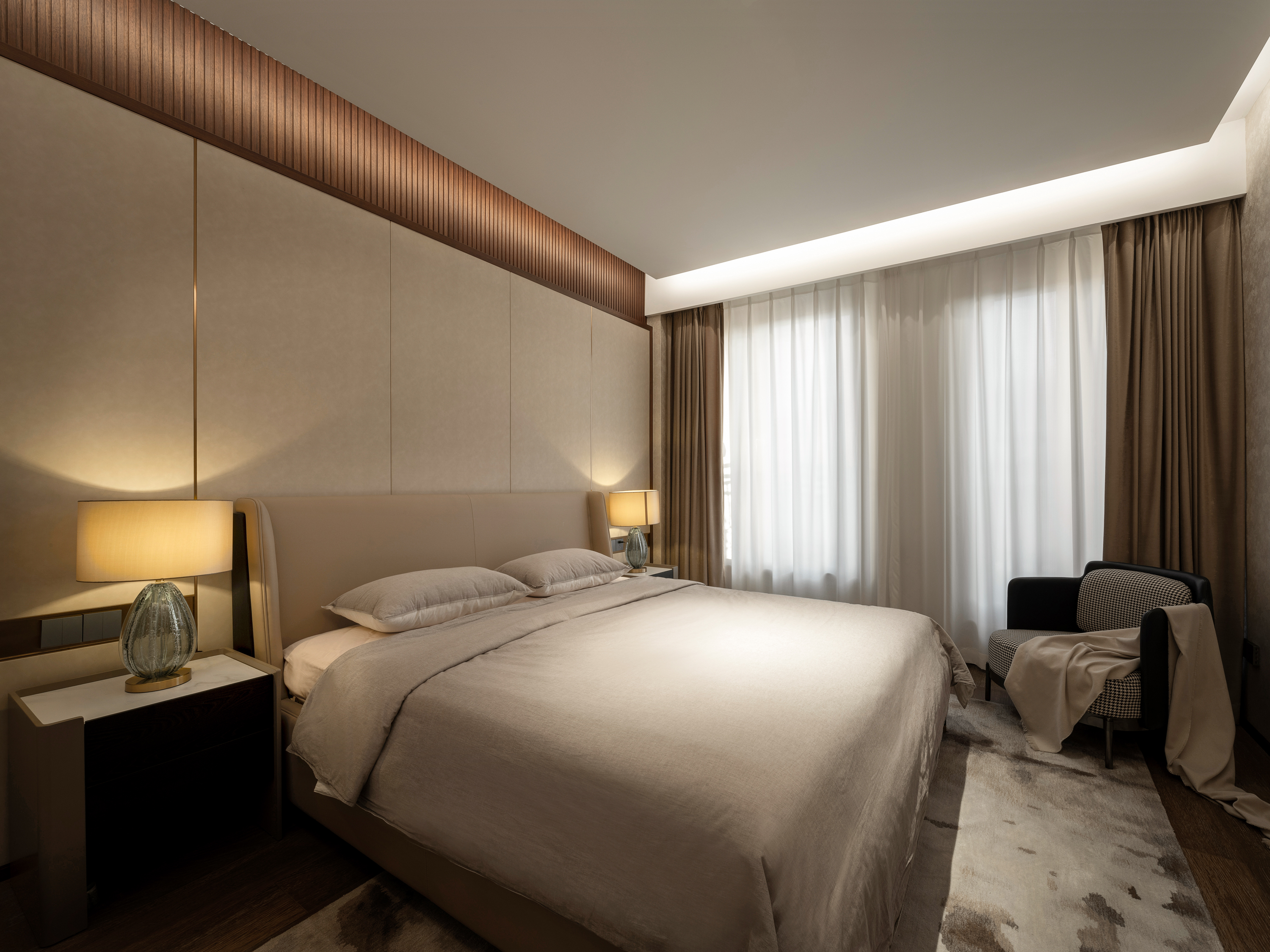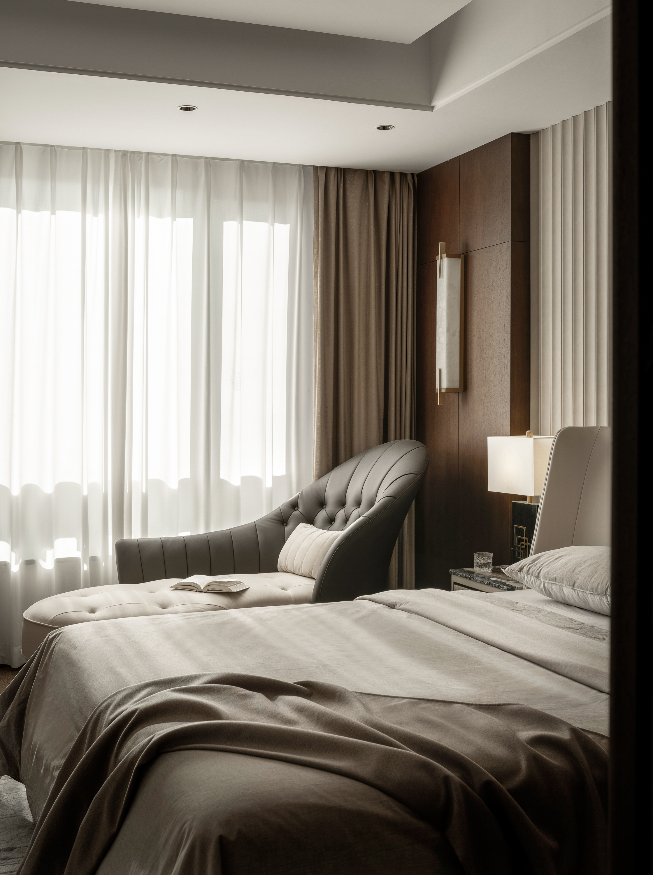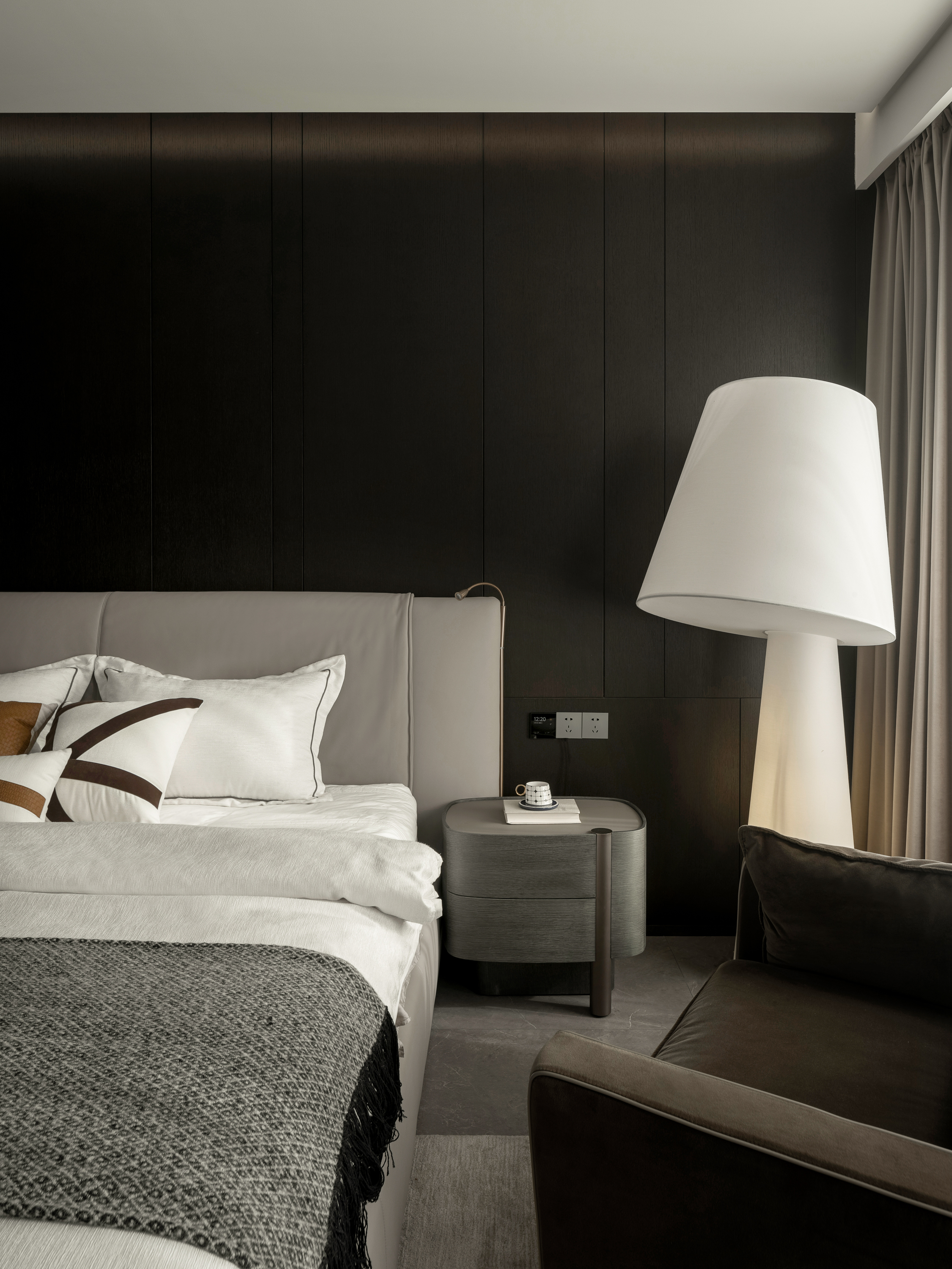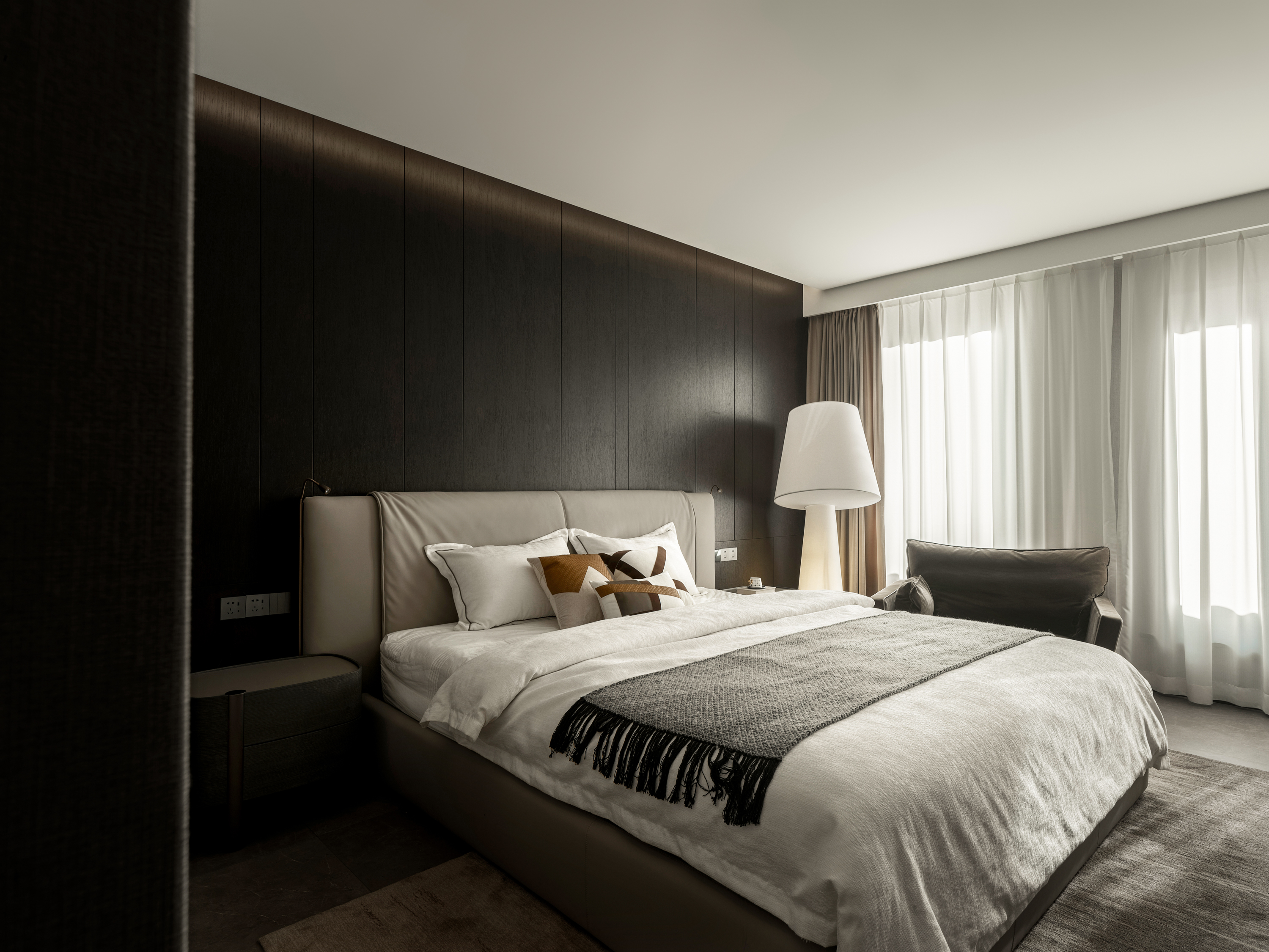 本案为一栋地上三层、地下两层的别墅。设计以现代为基调,在黑白木色的冷静框架中,融入石材与金属的细节点缀,营造温馨而雅致的氛围。空间逻辑上,我们着重解决家庭互动与私密分区的平衡,并通过结构优化与功能重组,为居住注入更多生活的叙事性。 -