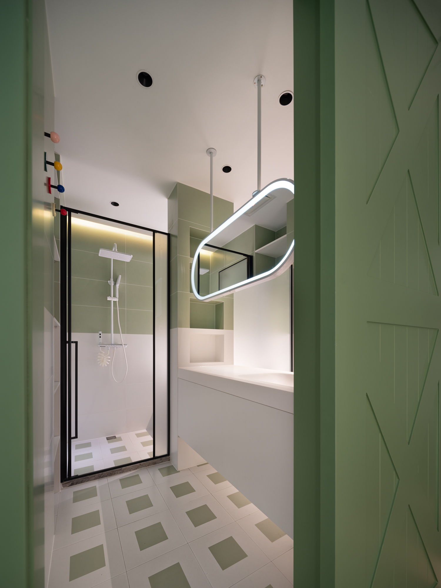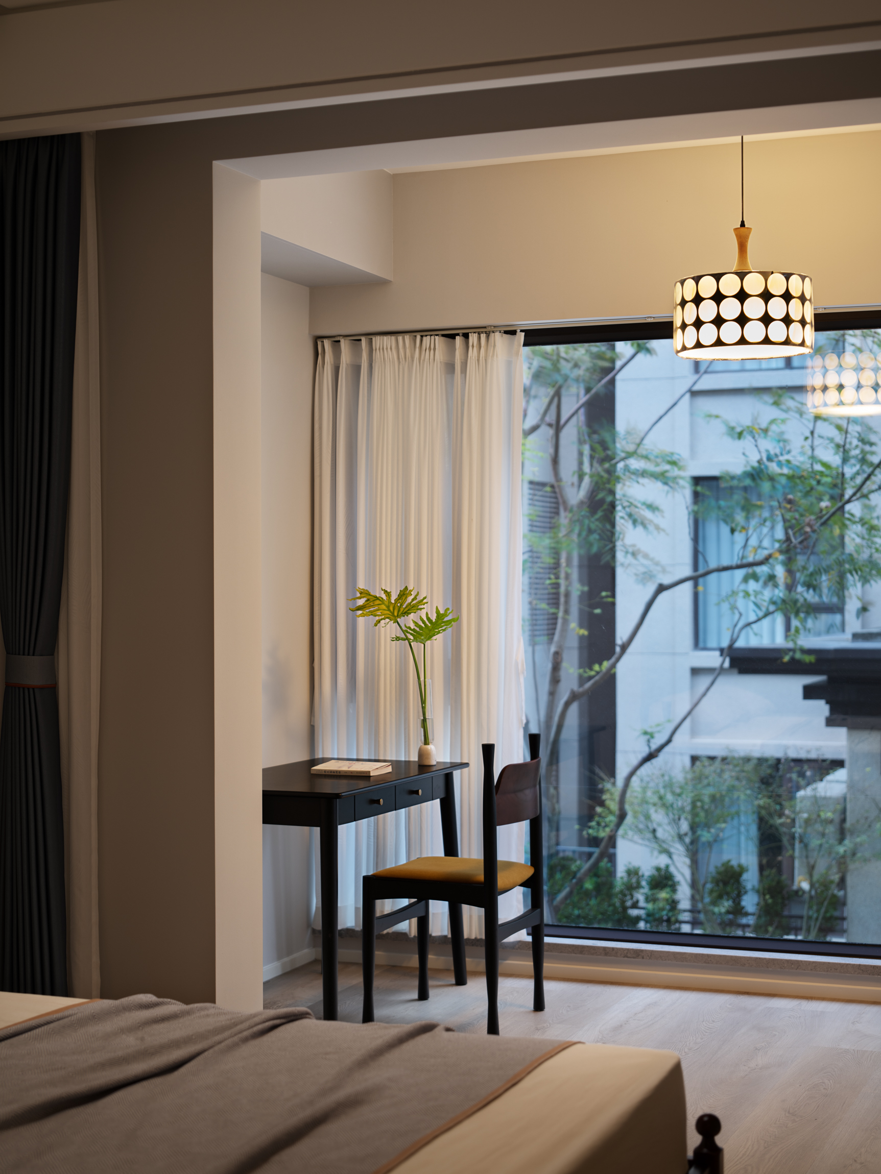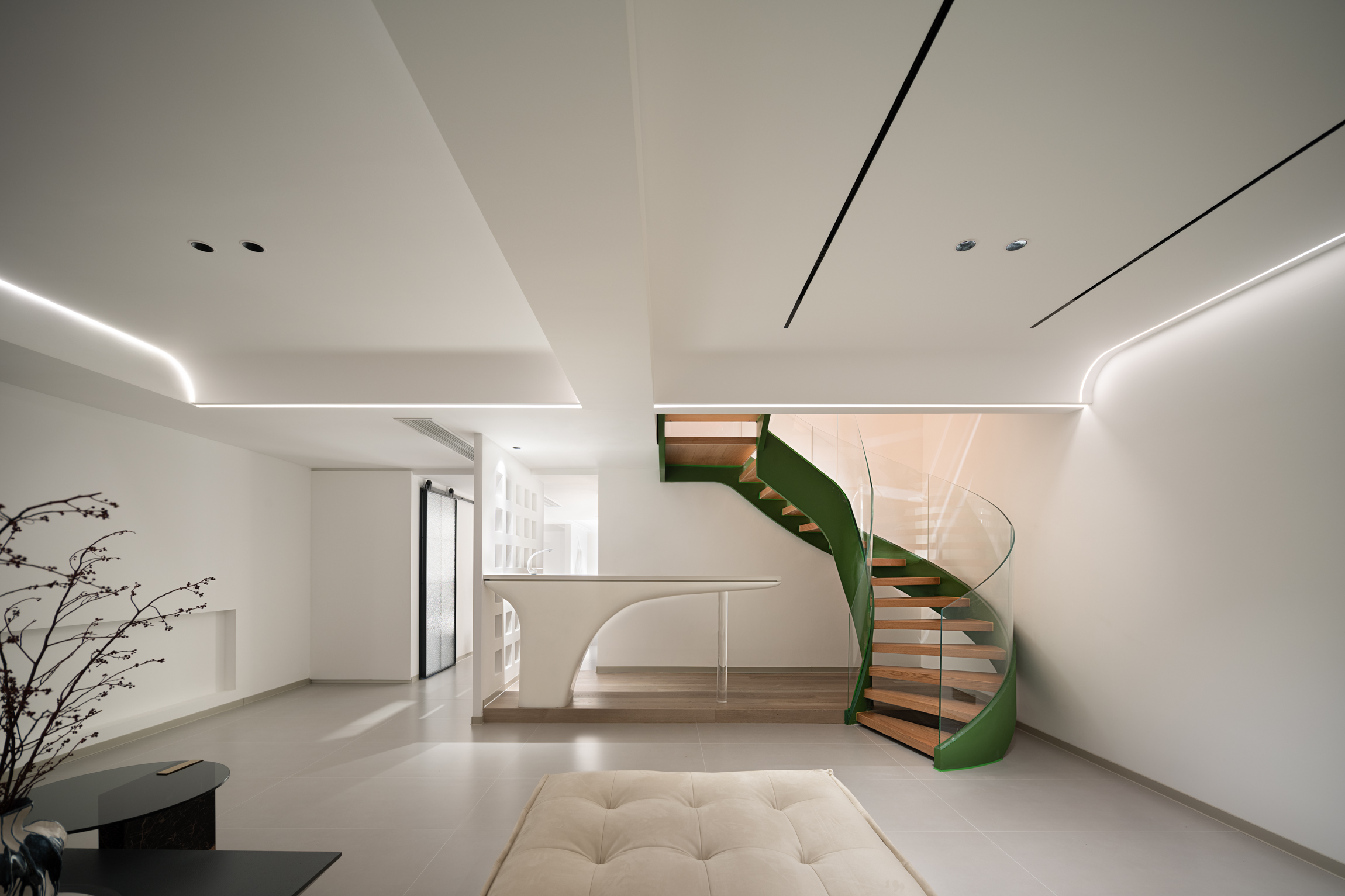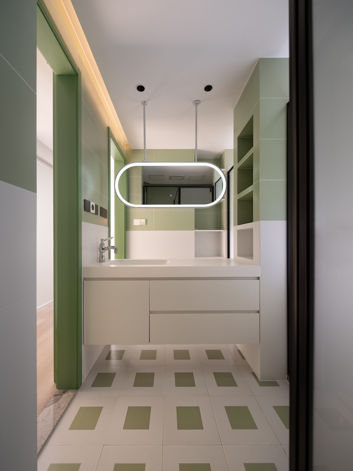 空间意境:整体空间以简洁的白色、绿色为底色,营造出干净、纯粹的氛围。减少不必要的装饰元素,采用简洁的线条,使空间显得开阔、通透,给人以视觉上的舒适感和心灵上的放松感。