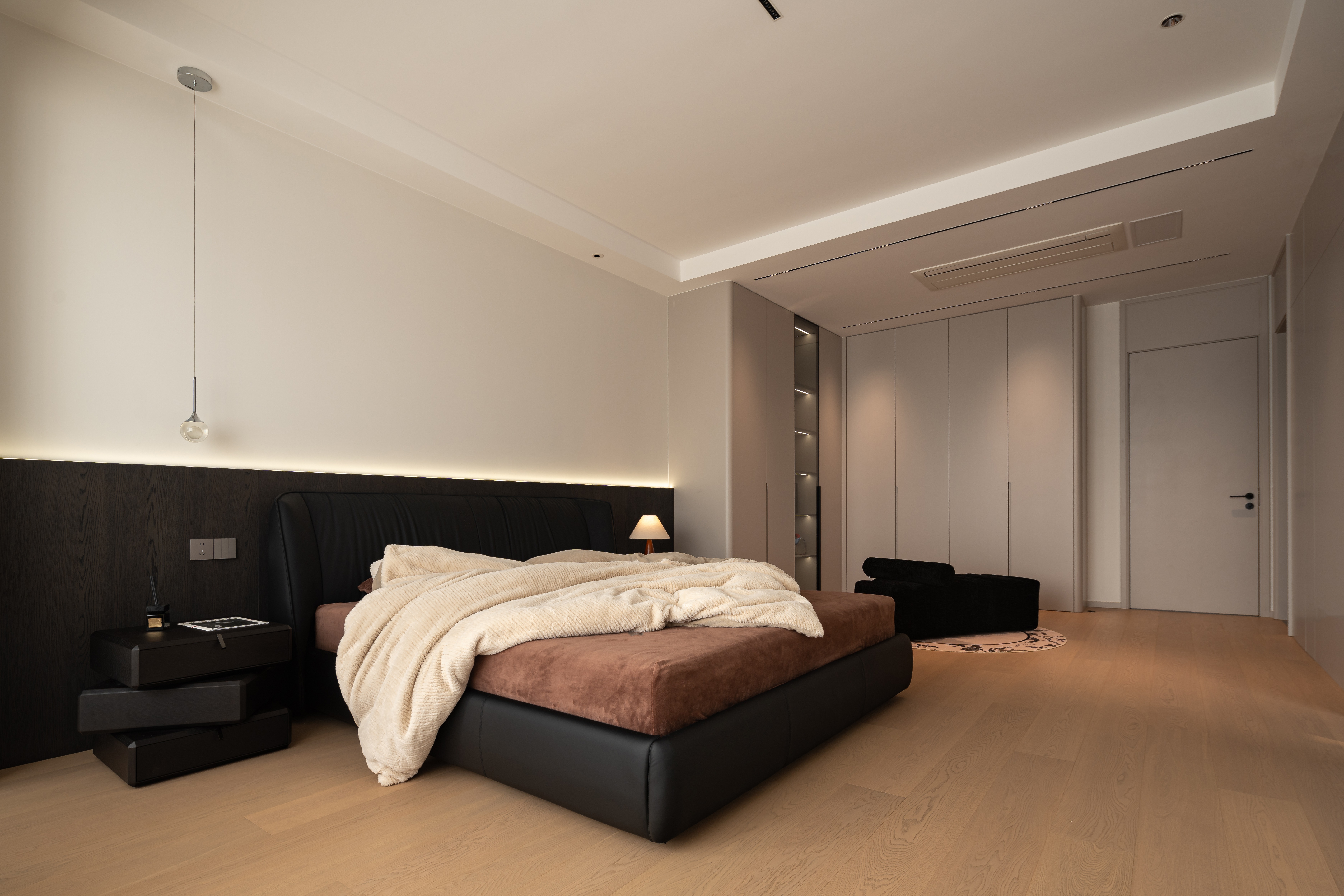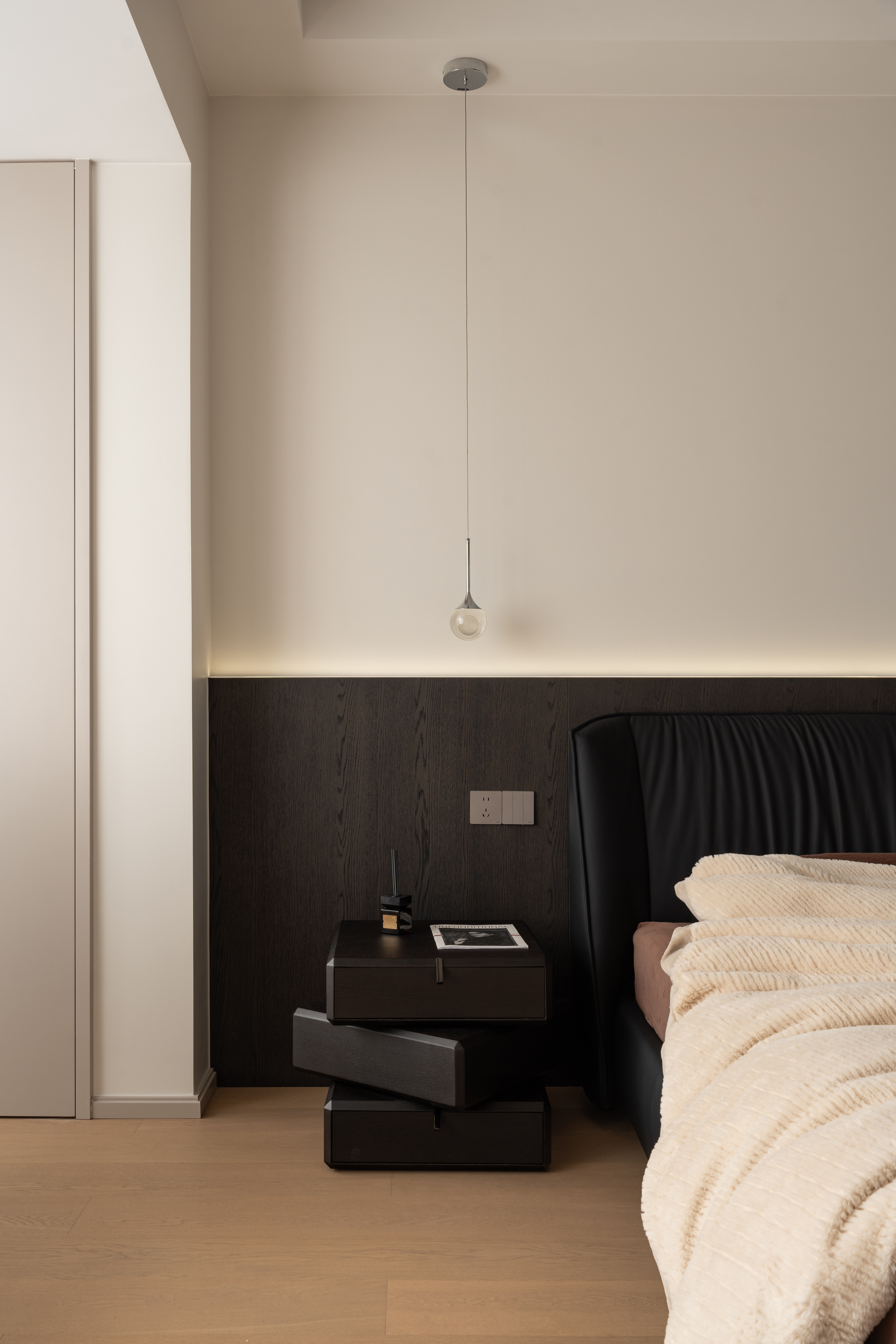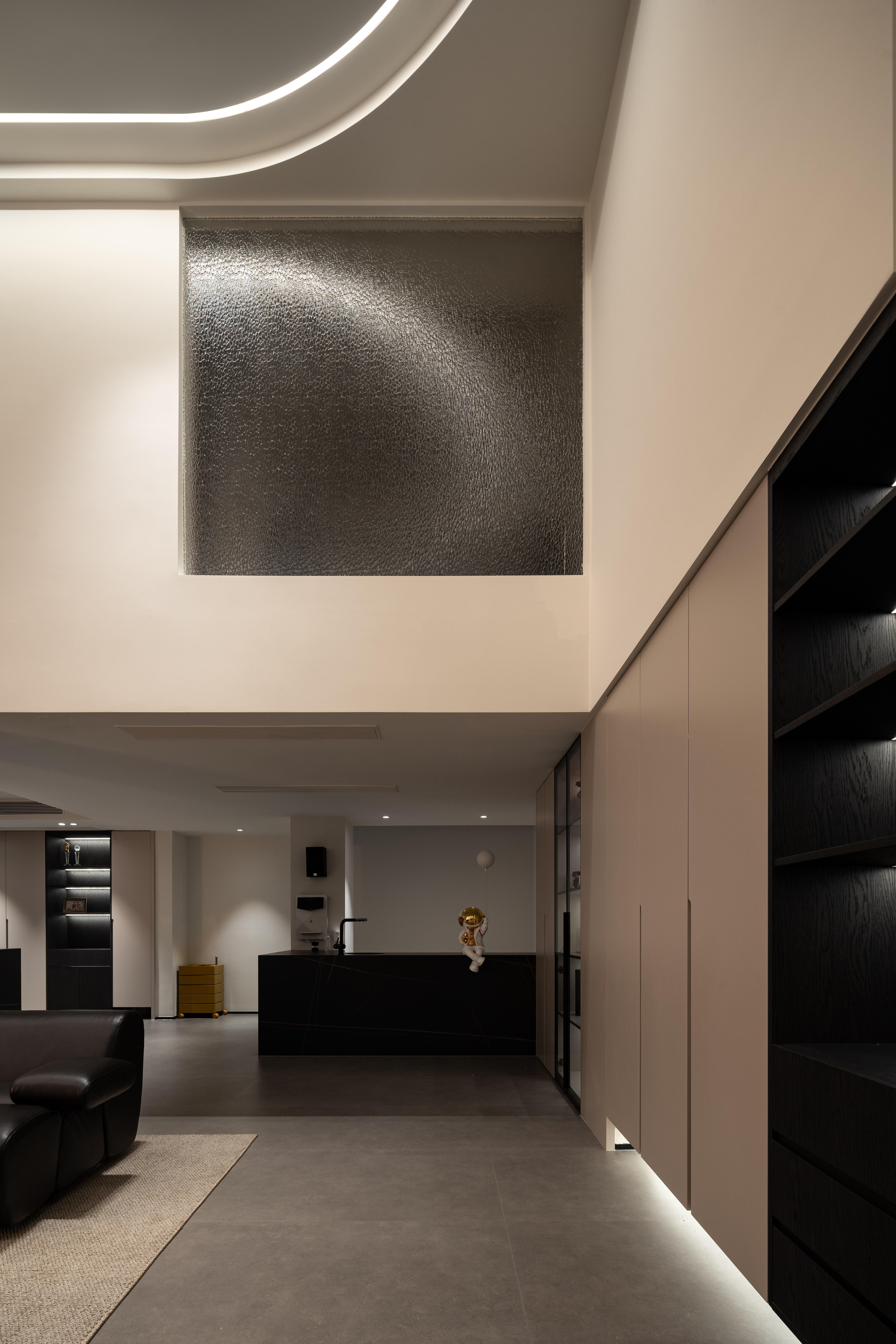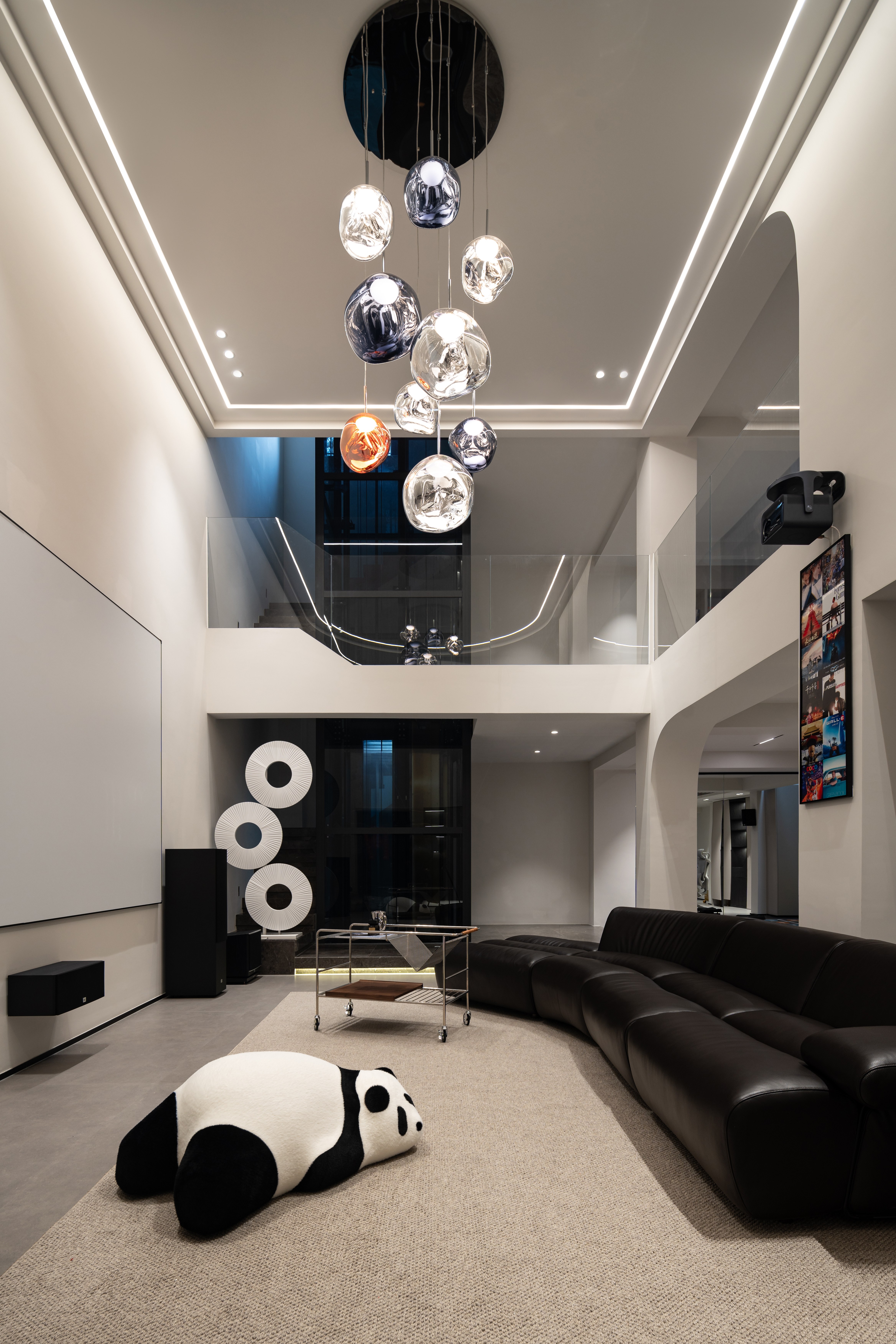 空间意境:通过氛围感展柜、星球吊灯等艺术装置,将地下层、餐厨、客厅等化为多维能量场与静谧磁场