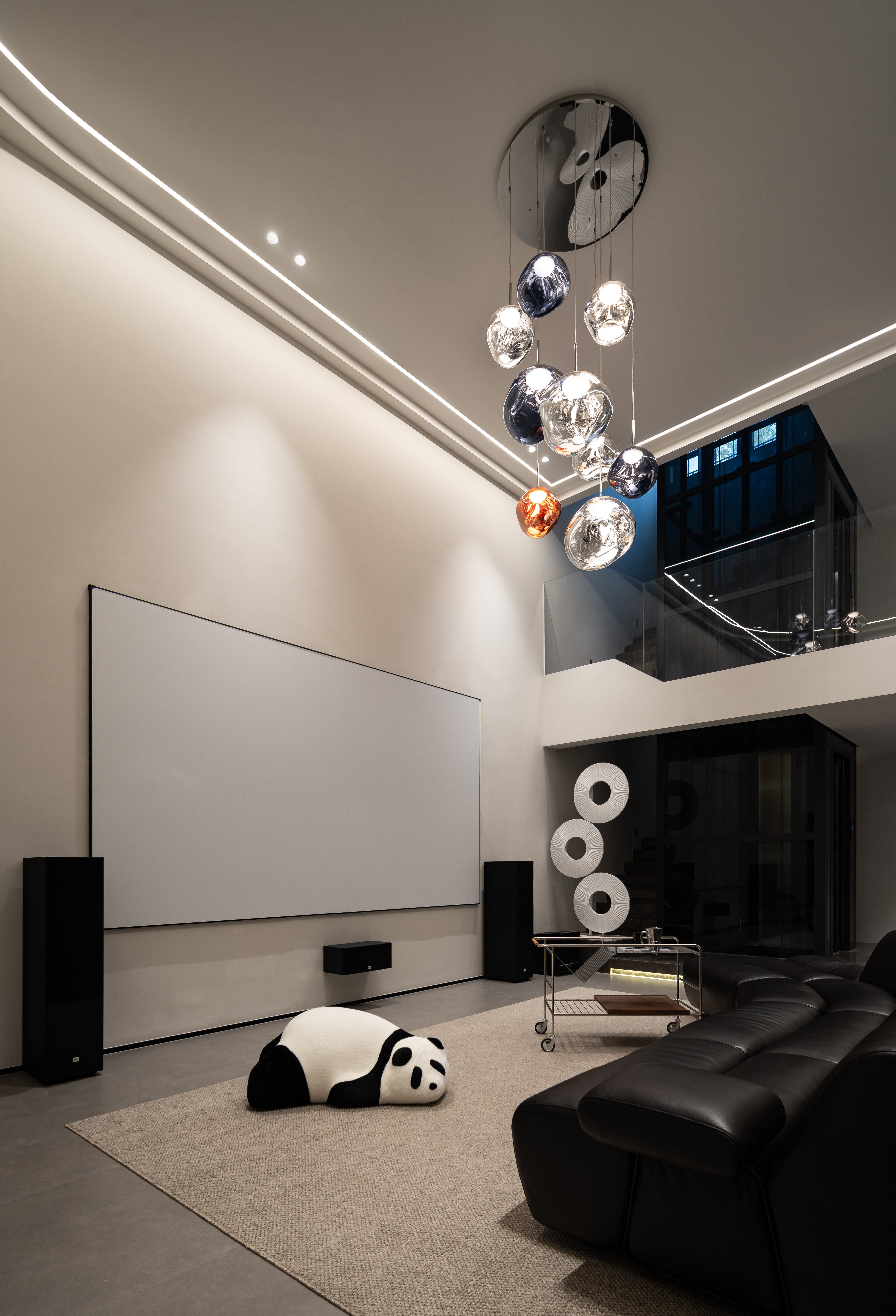 地下室,手办是时光的琥珀, 封存着那些一去不返的炽热。 健身区的跃动,是生命在闪烁, 与单调日常,勇敢地分割 。 巨幕垂下,等待故事汹涌如潮。 吊灯似悬浮星球,洒下神秘光线。 在这里,生活挣脱平凡,自由疯长。