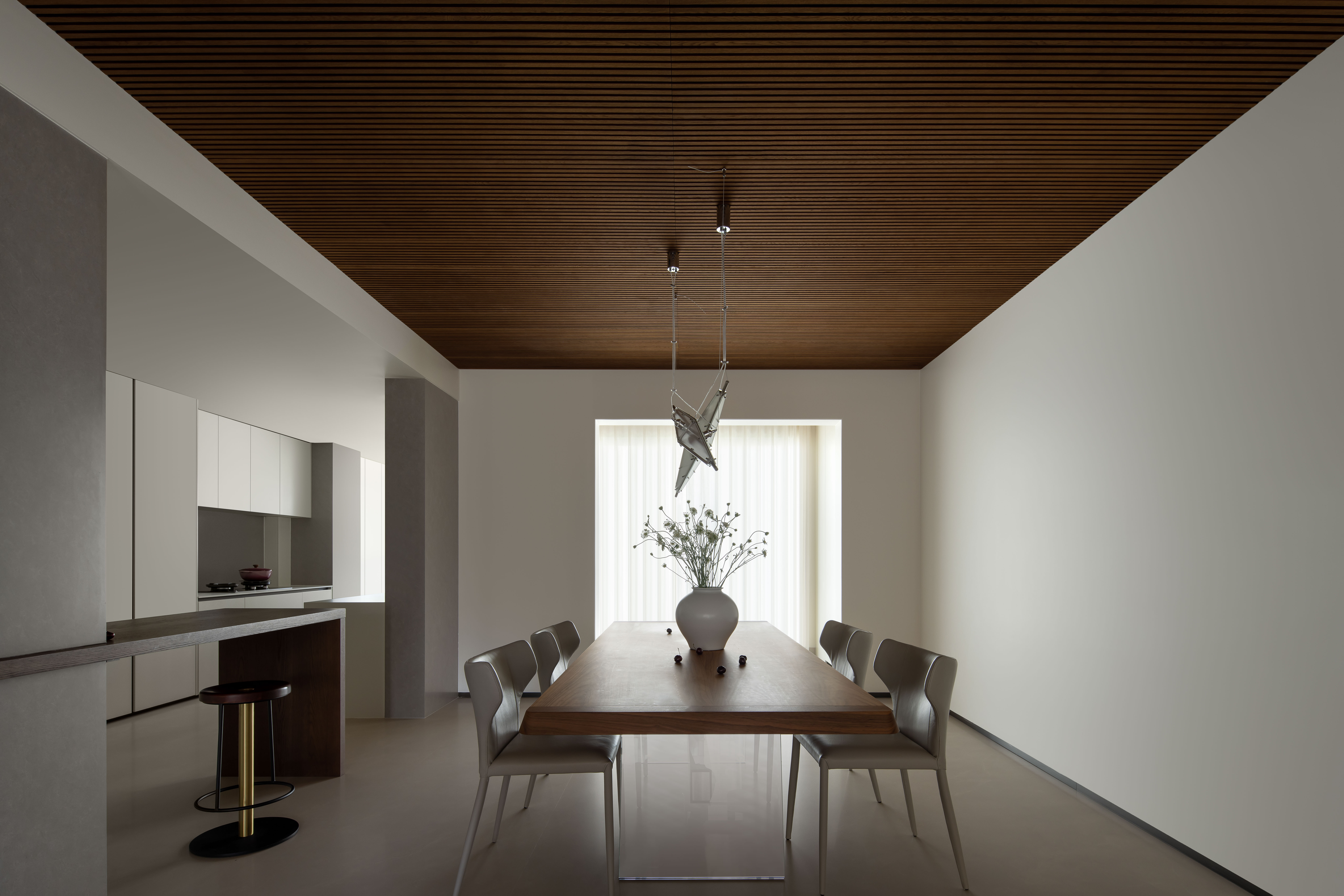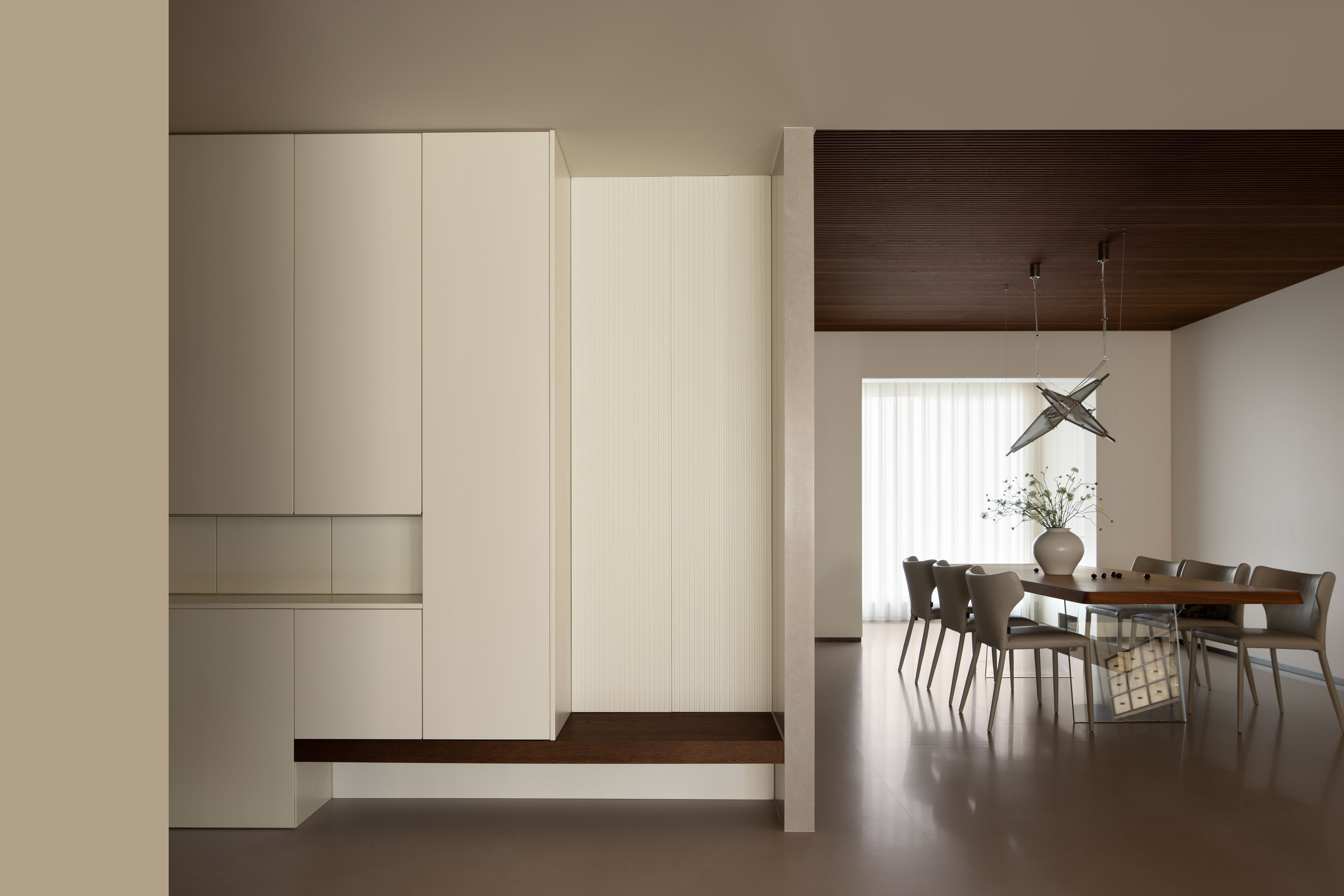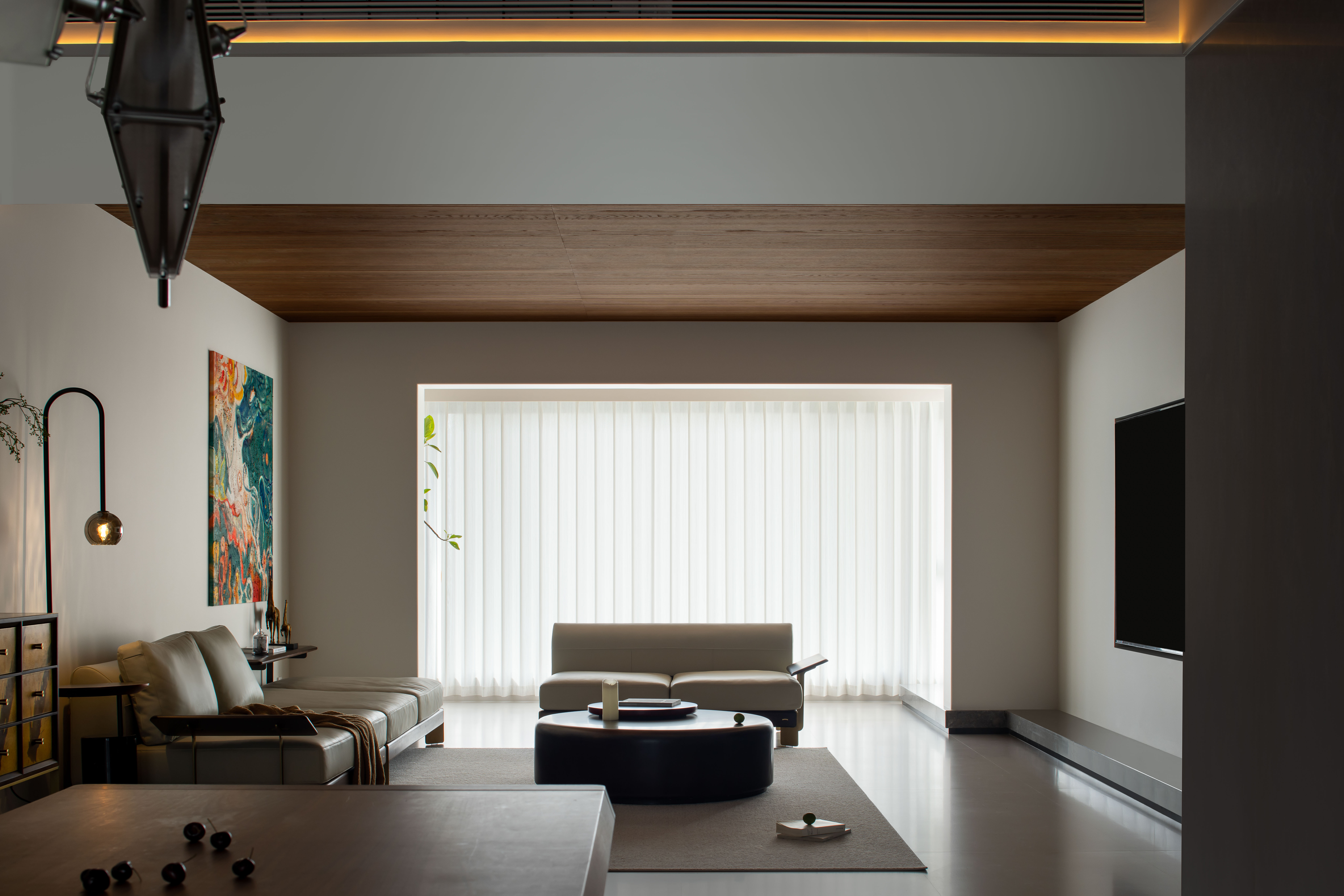 空间布局:通过同材质通铺自然过渡,形成洄游动线,既保证空间通透,又让各功能区互不干扰。