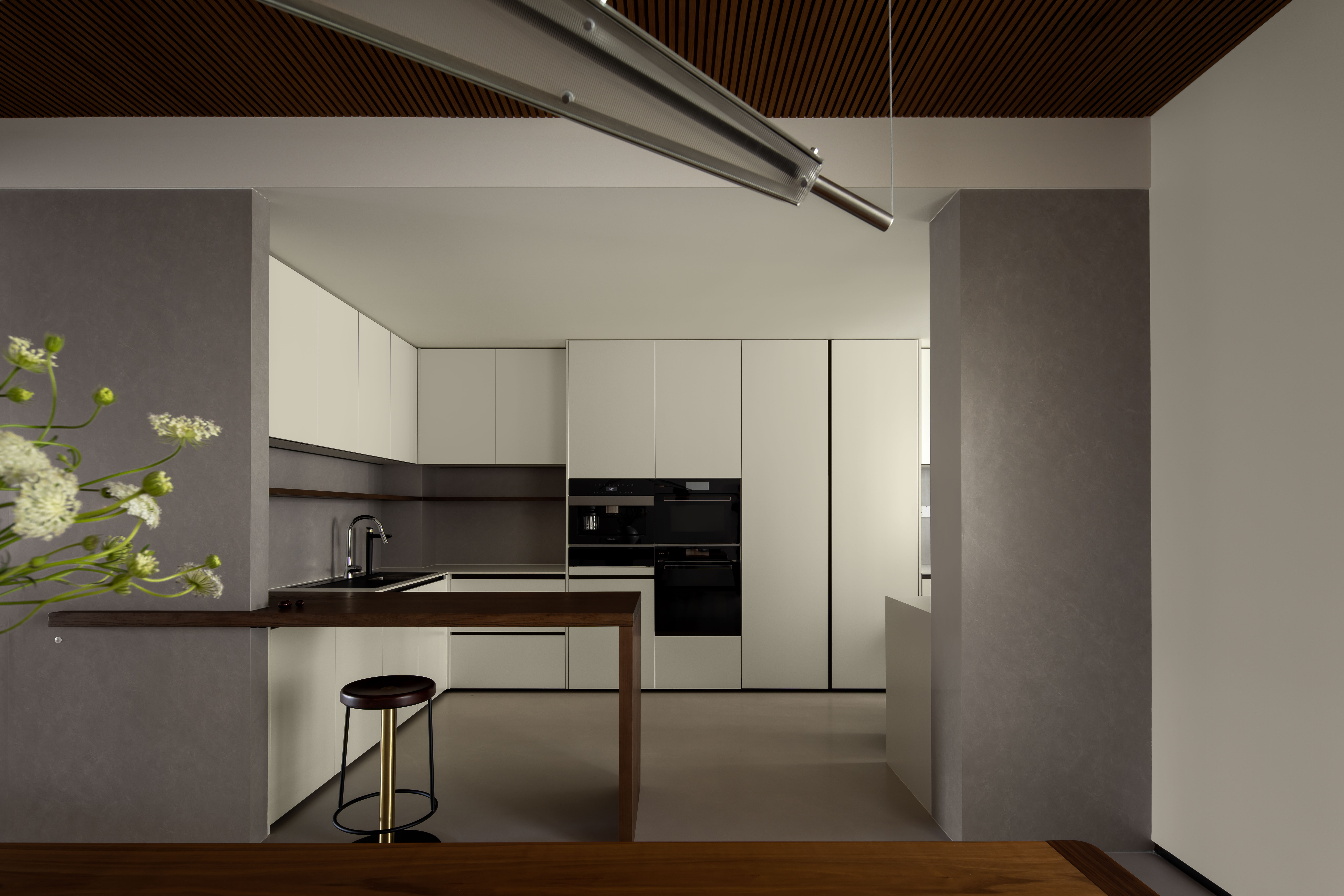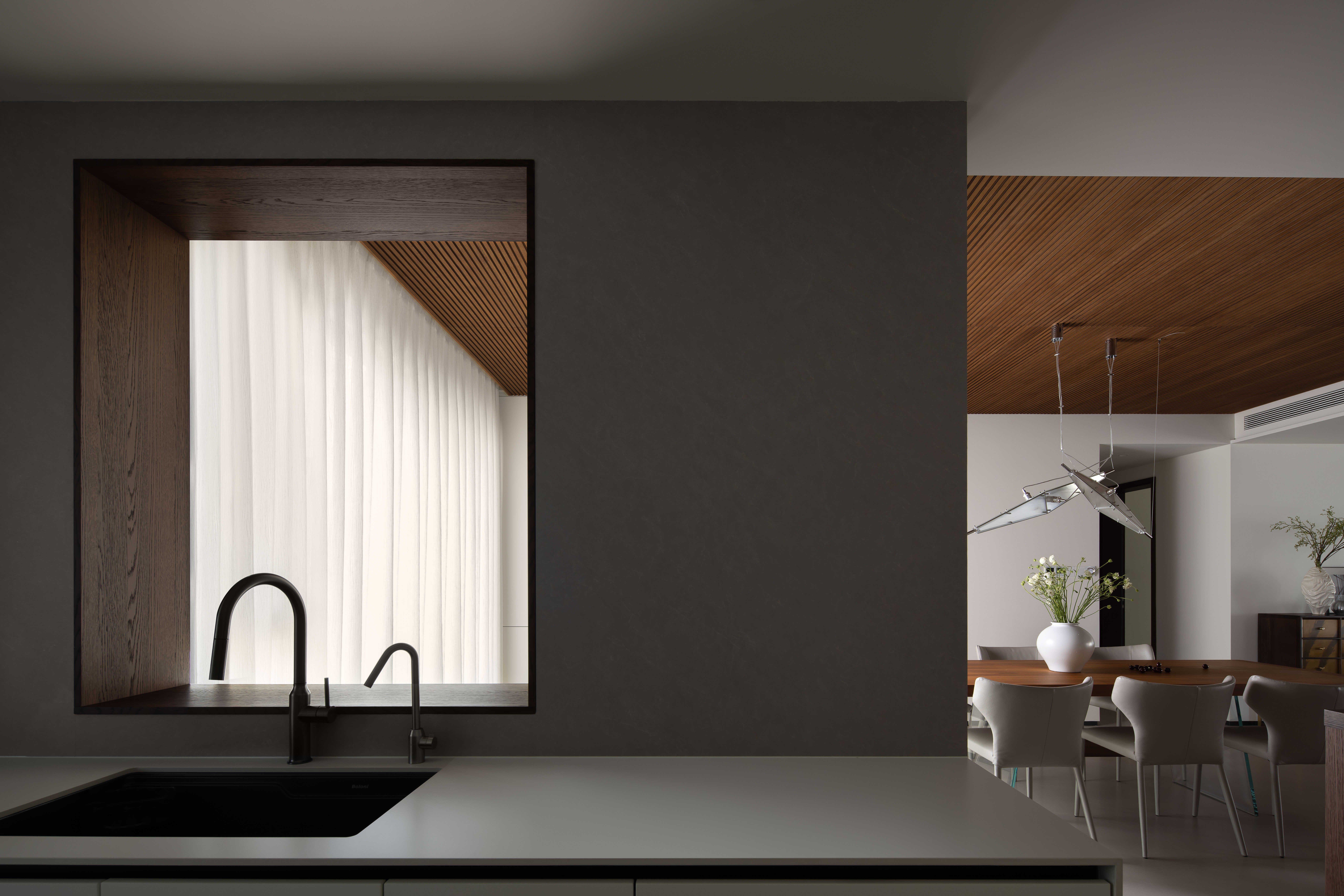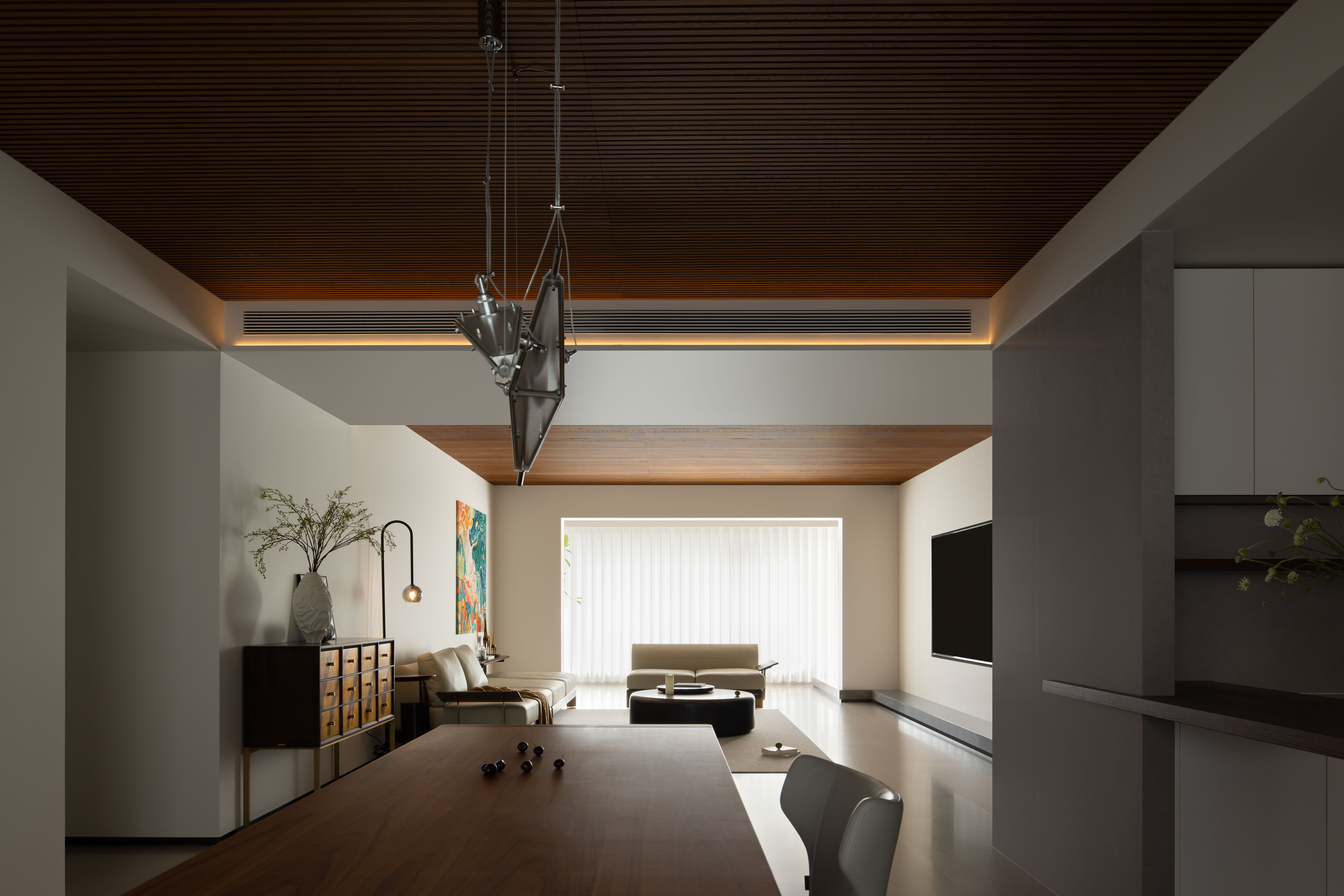 空间布局:通过同材质通铺自然过渡,形成洄游动线,既保证空间通透,又让各功能区互不干扰。