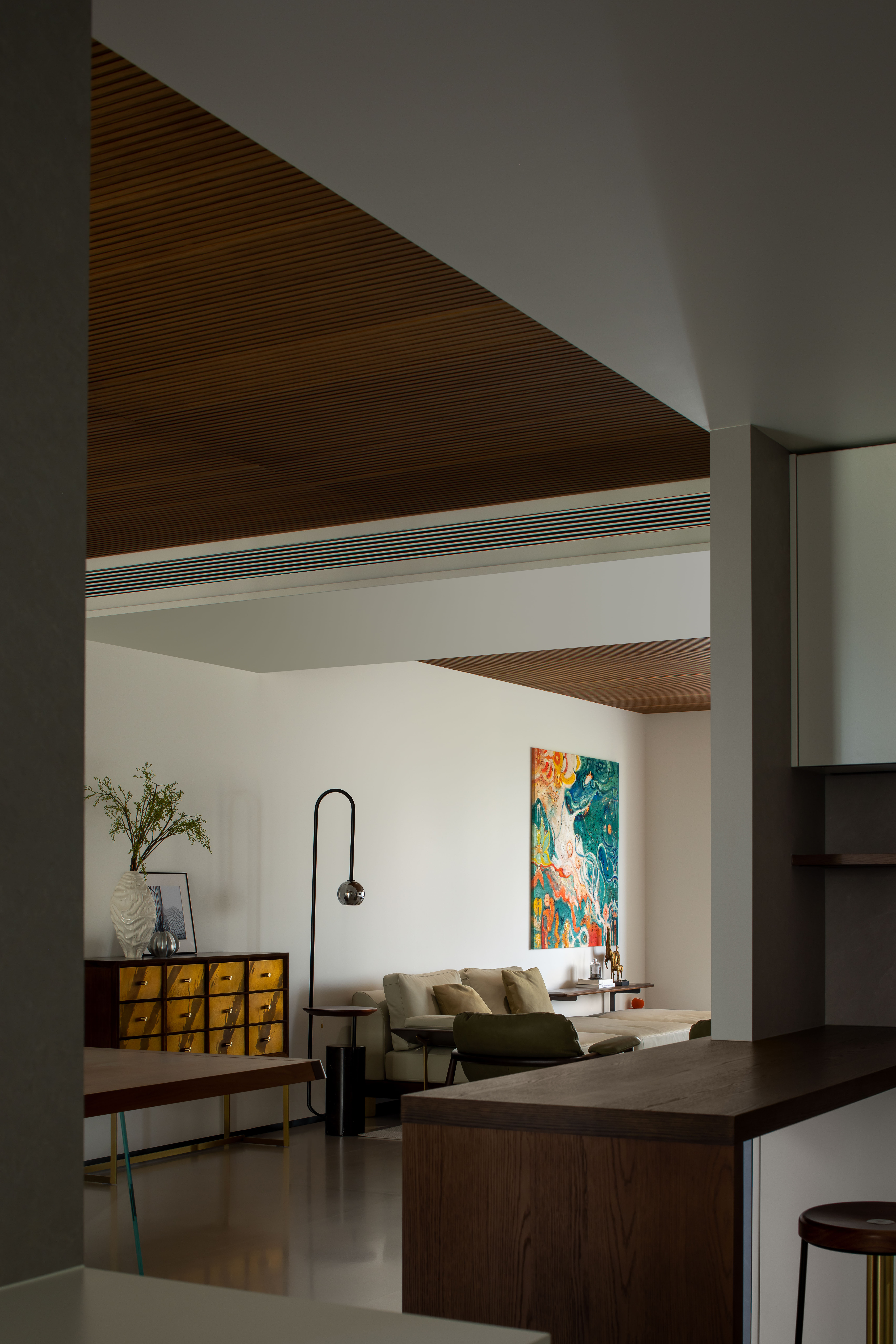 项目定位:设计将色彩与原木的温润巧妙融合,创造出一种既克制又充满温度的美学。原木温润的韵律感与绿意萌发的生命力相融,触手可及的真实感在此刻得到具化。