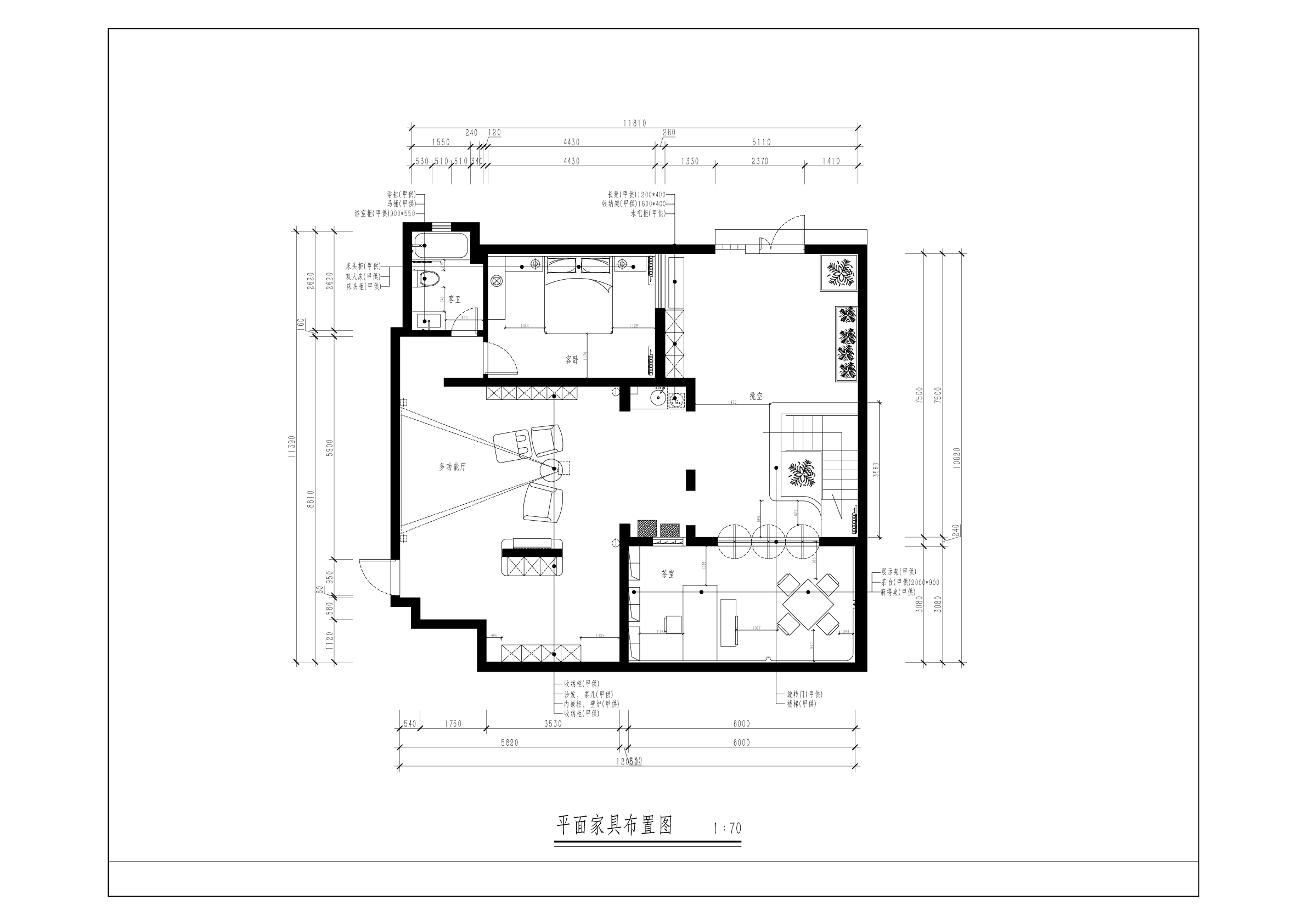 下跃空间为主要活动空间。封闭下跃空间到室内,预留客房。茶室和影音室作为主要娱乐空间使用。