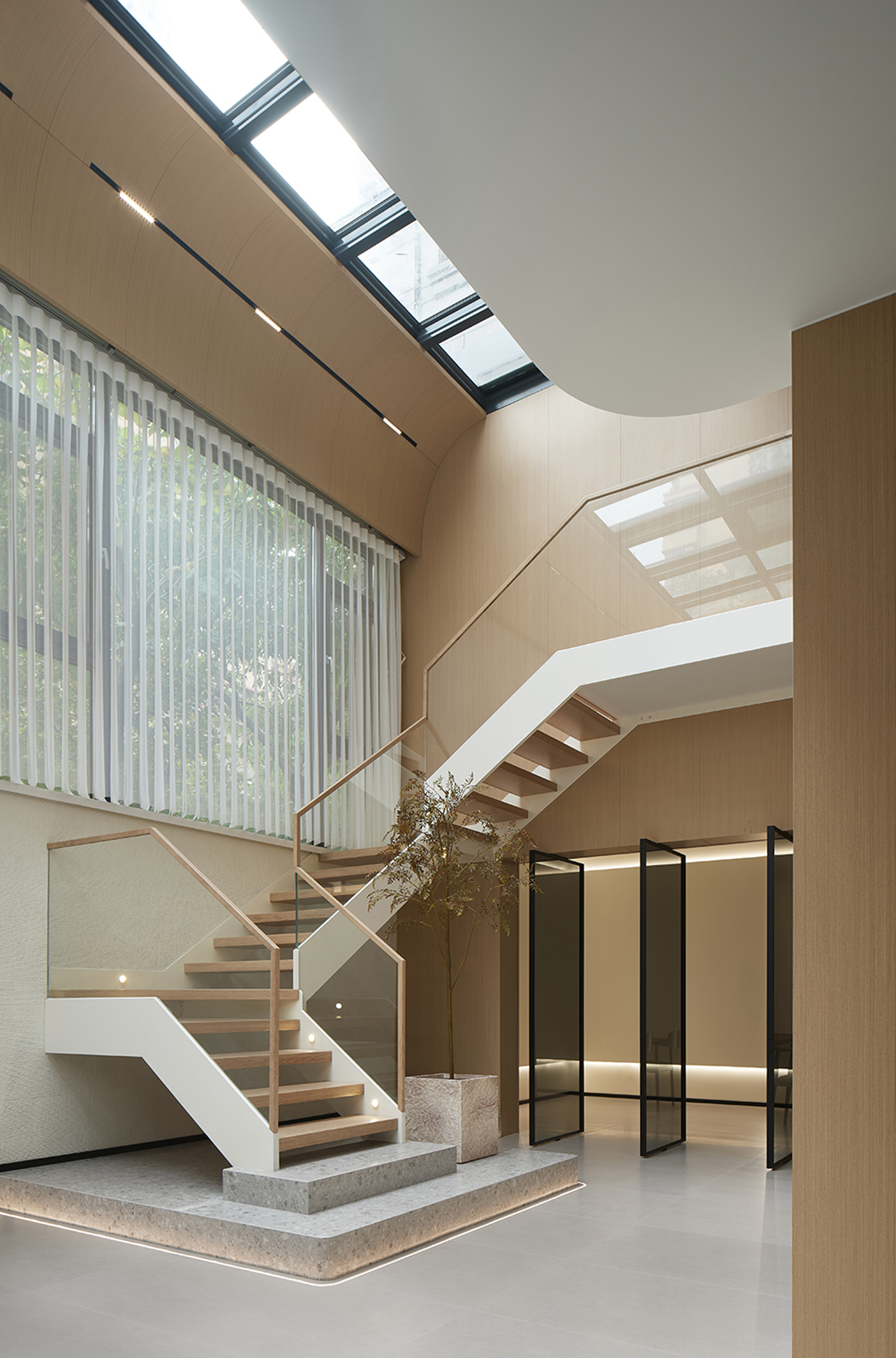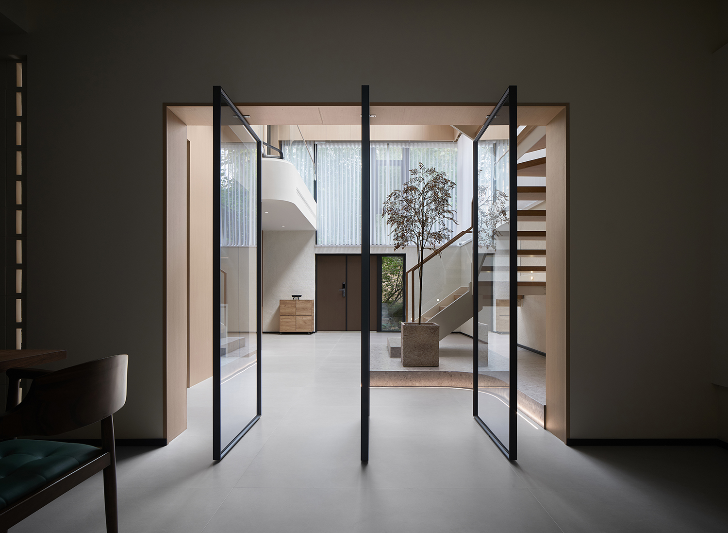 中轴旋转门与挑空空间形成互动。
