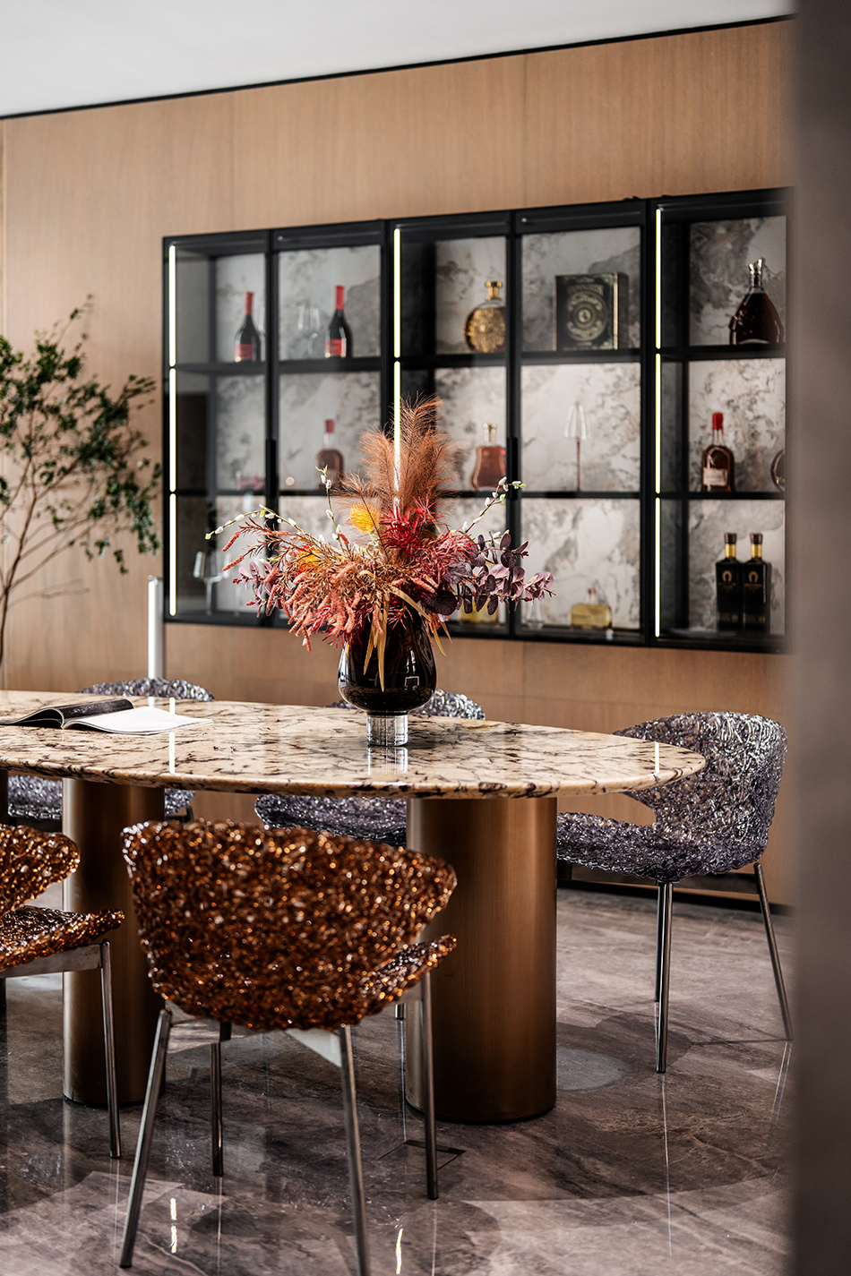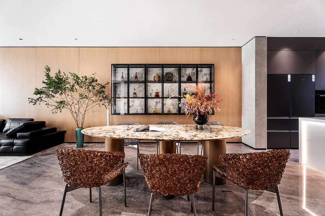 空间意境:强烈而又细腻的视觉张力,增添了空间的层次和深邃感,不仅是形式上的融合,更是功能、情感层面的互动和融洽。