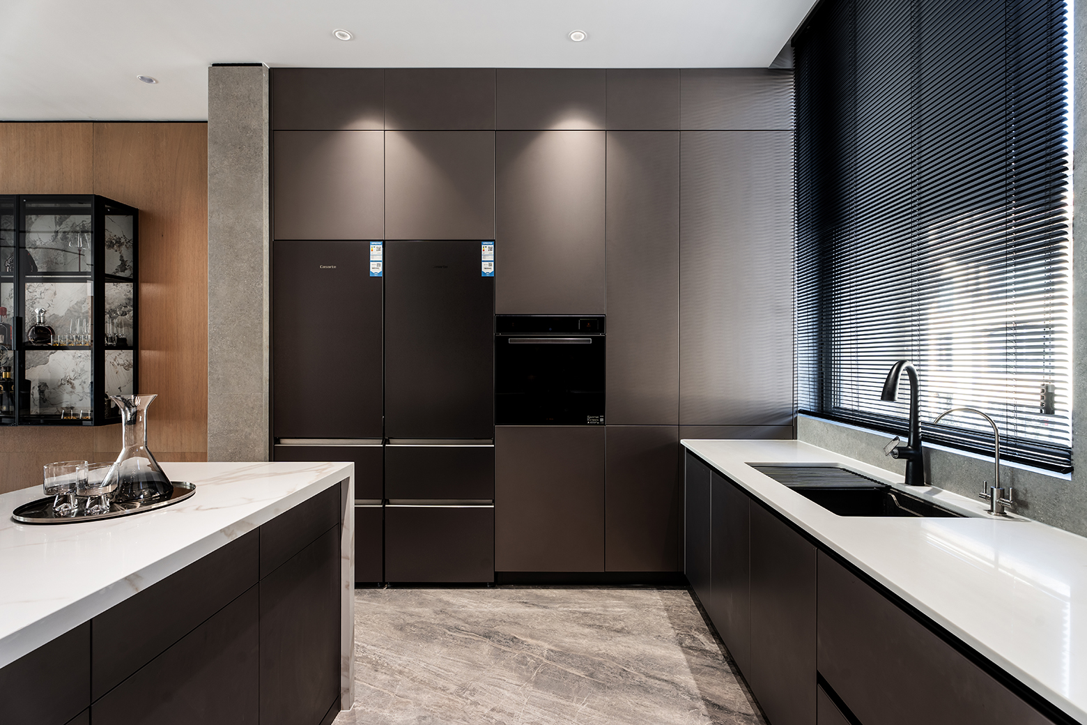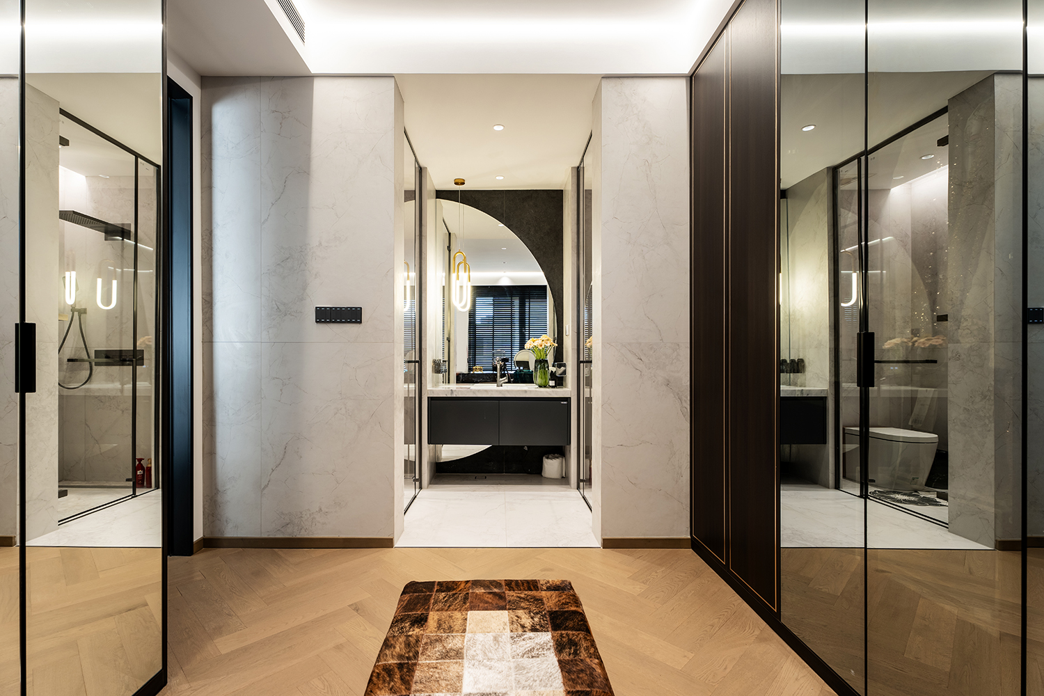 设计选材:木饰面、岩板、大理石、瓷砖、乳胶漆