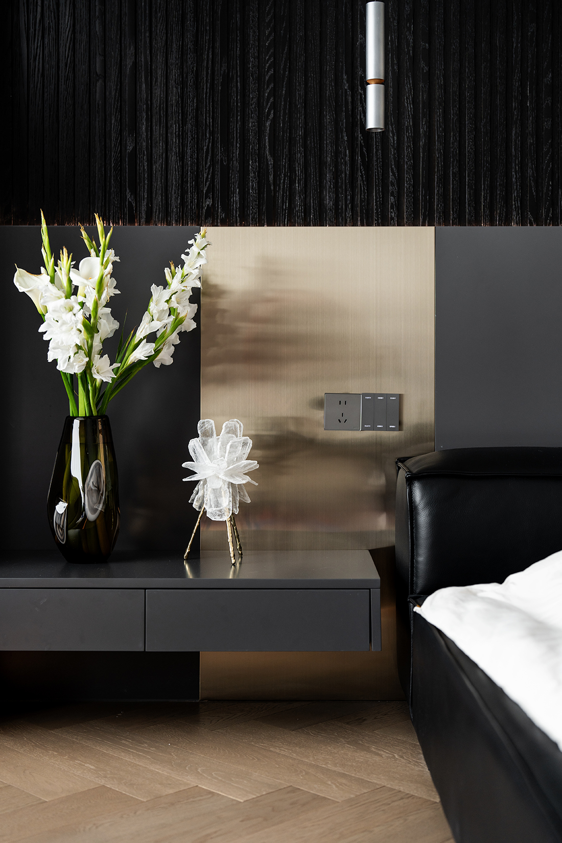 项目定位:仪式感空间的艺术独白,在更为平和、沉稳的气氛之中,空间以一种极富节奏的规律感层层递进, "以简驭繁,家居之美,在于细节与格调"