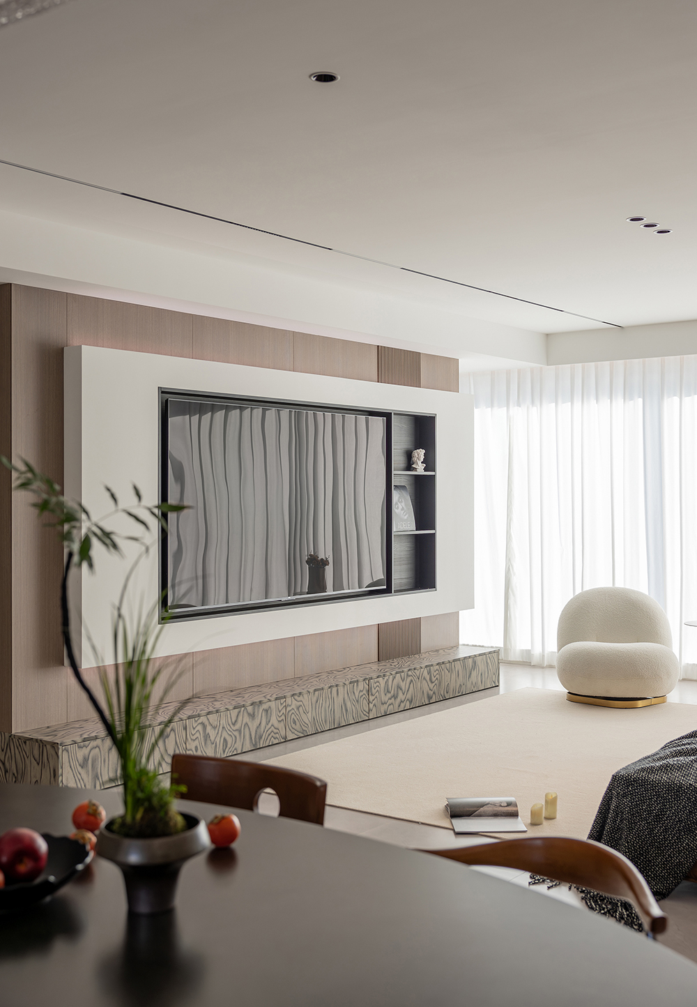 空间意境:空间如同主人一样琴瑟和鸣,打破边界的布局让功能和美学共振,刚柔相济的细节让质感和温度共鸣,与此间每一处设计皆为生活谱就和谐的乐章,琴瑟之韵,藏于日常的方寸里。