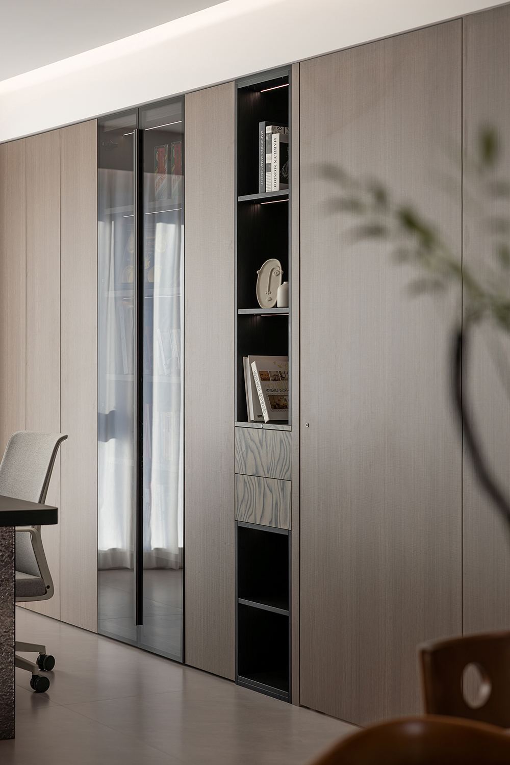 空间布局:空间布局上,最大利用了空间的每个角落,不但有多功能区的实现,还实现了800库的功能,让生活更加丰富。在有限空间内实现储藏效率与取用便捷性的双重最大化。打通墙体、柜体、角落的闲置维度,实现储藏容量几何级扩容,兼顾收纳秩序与空间通透感。