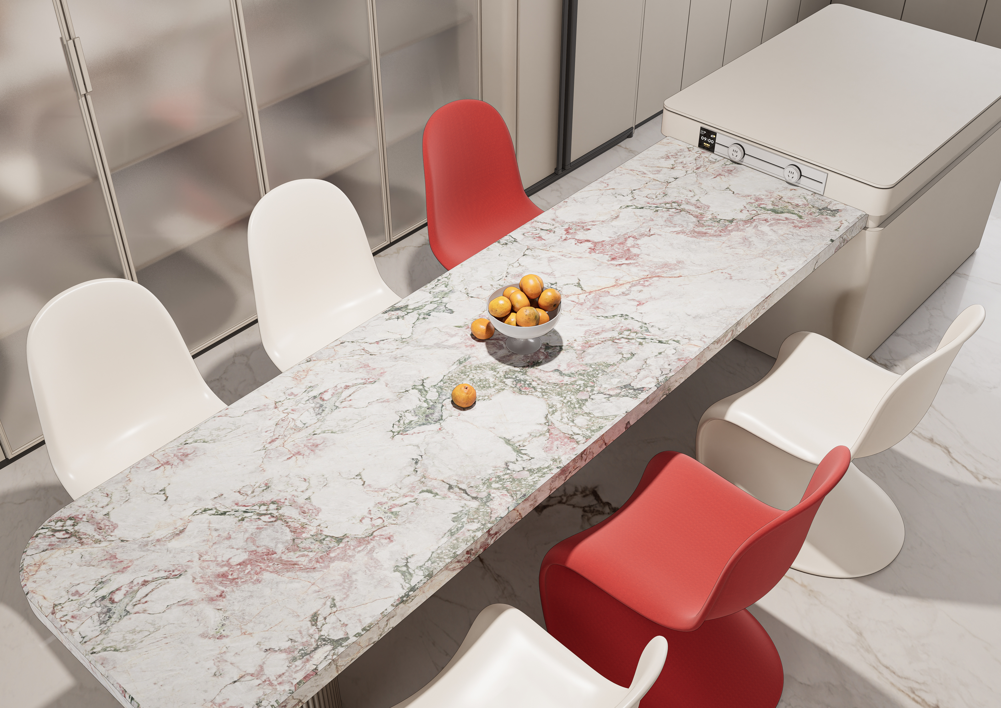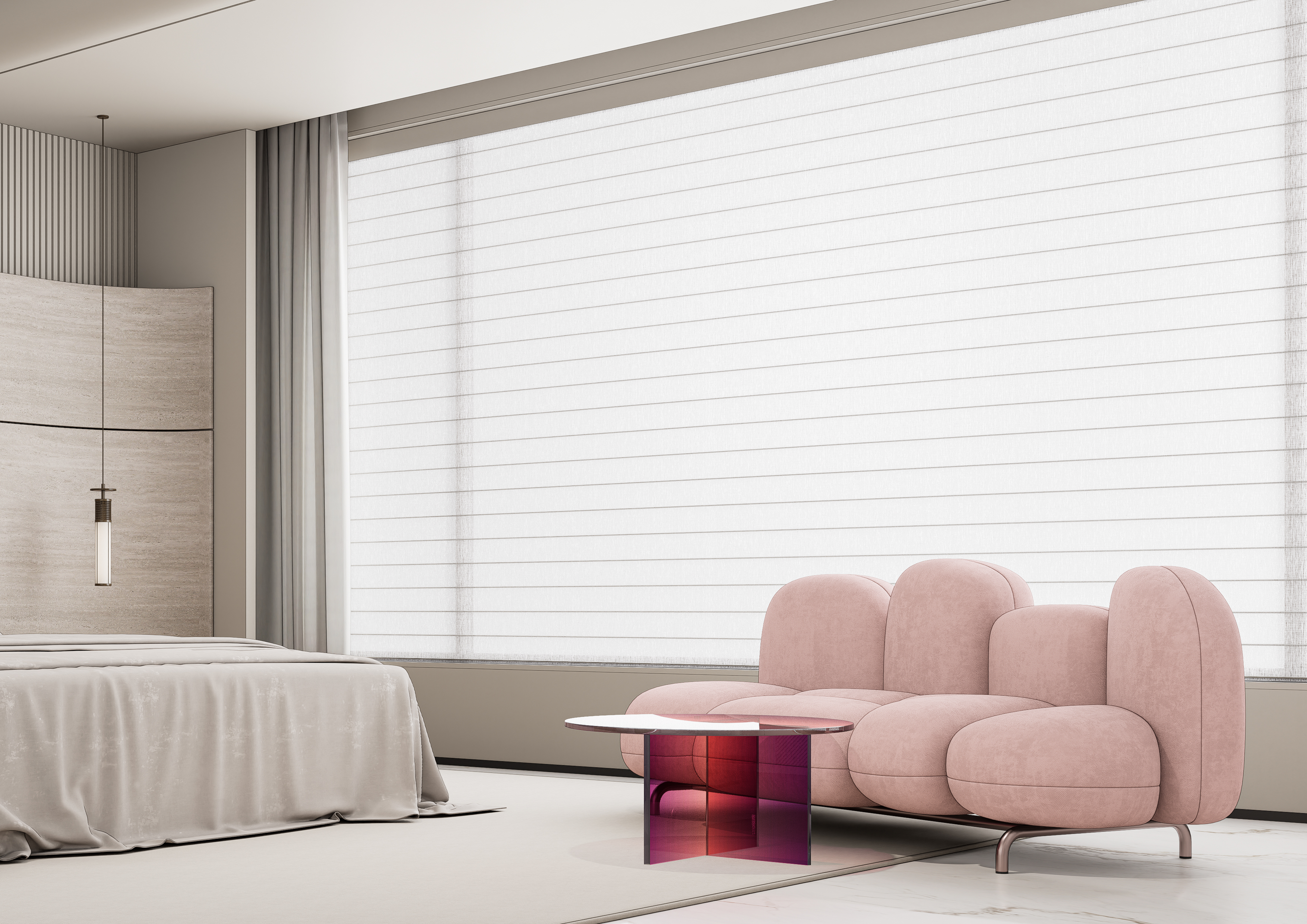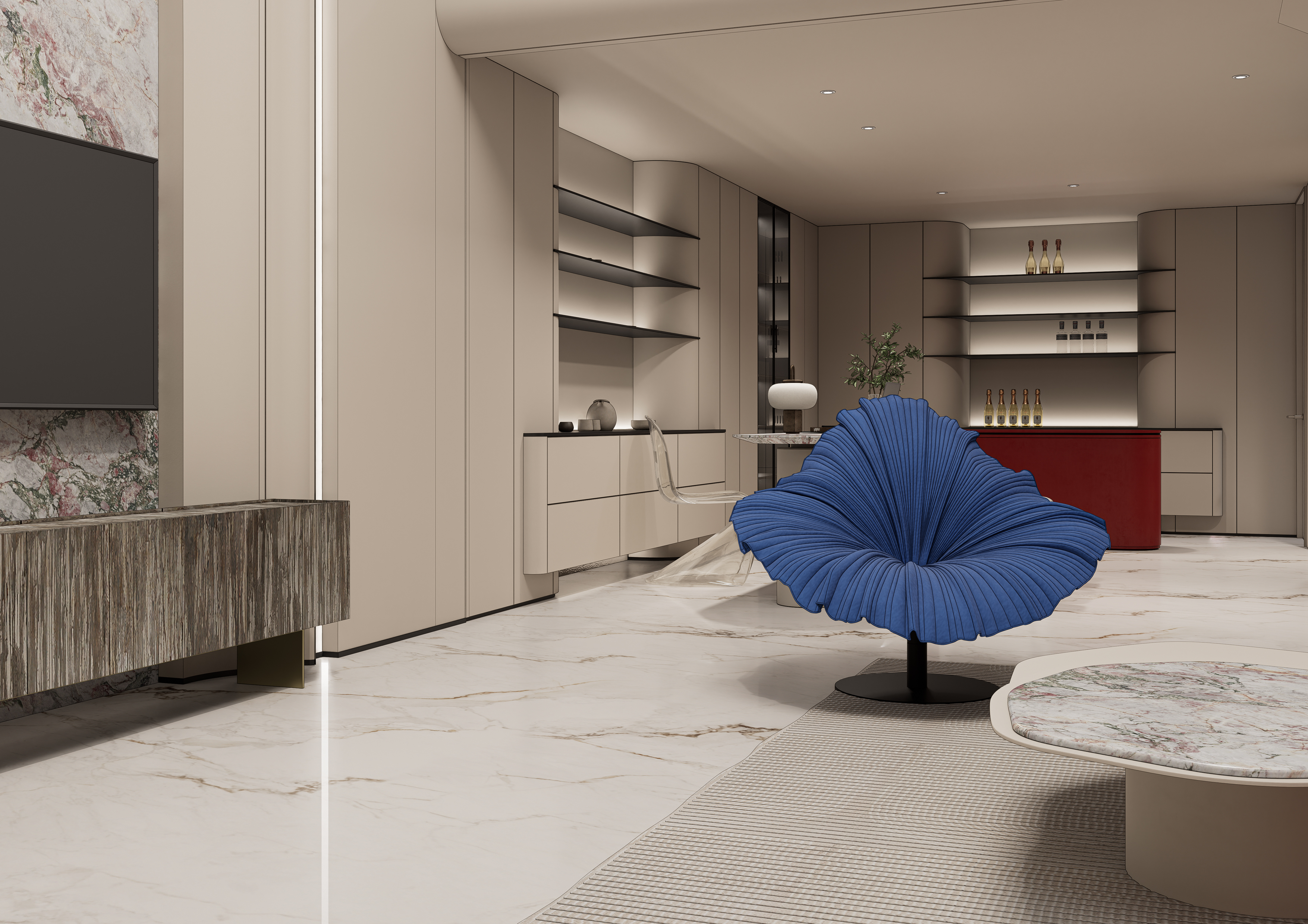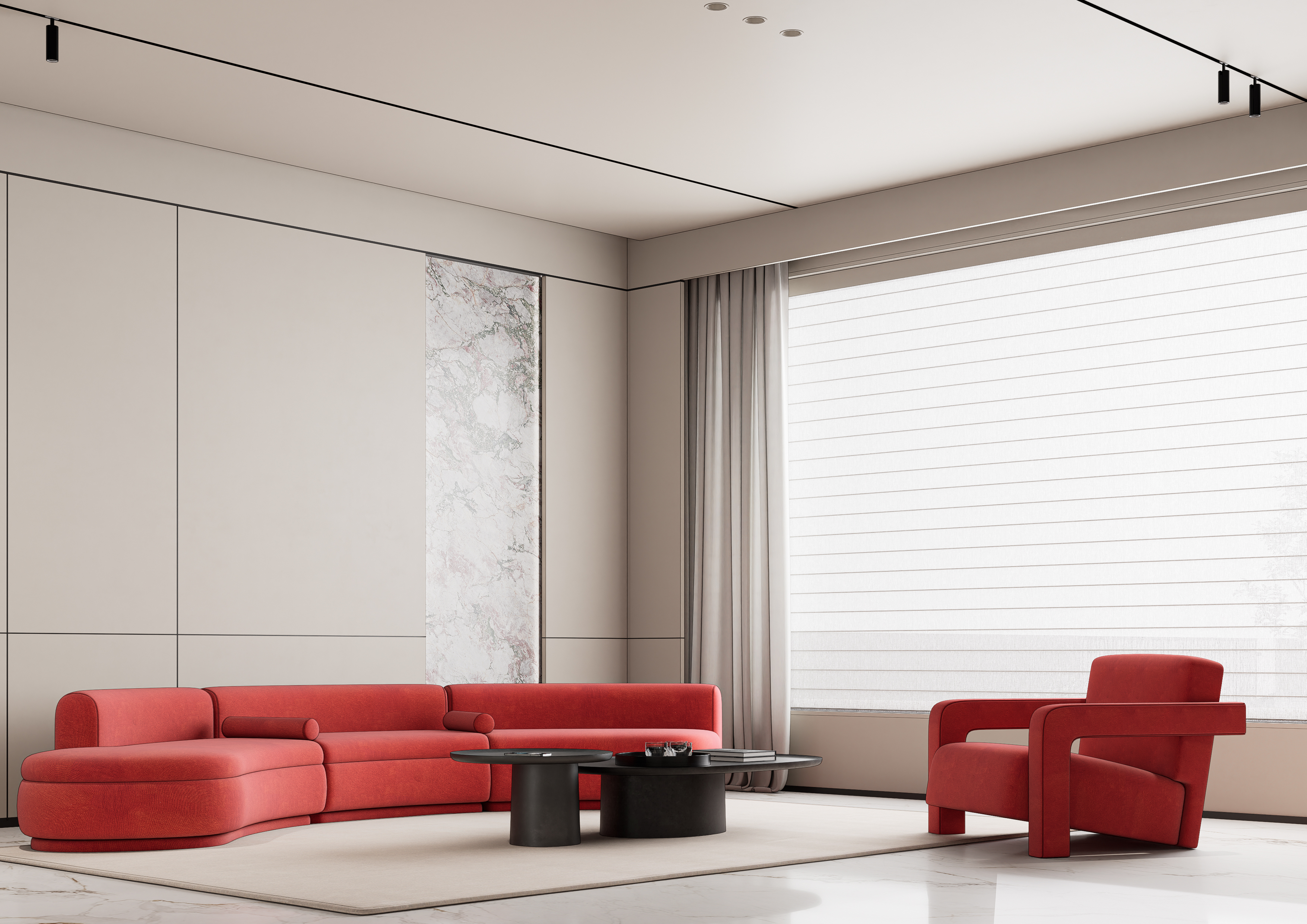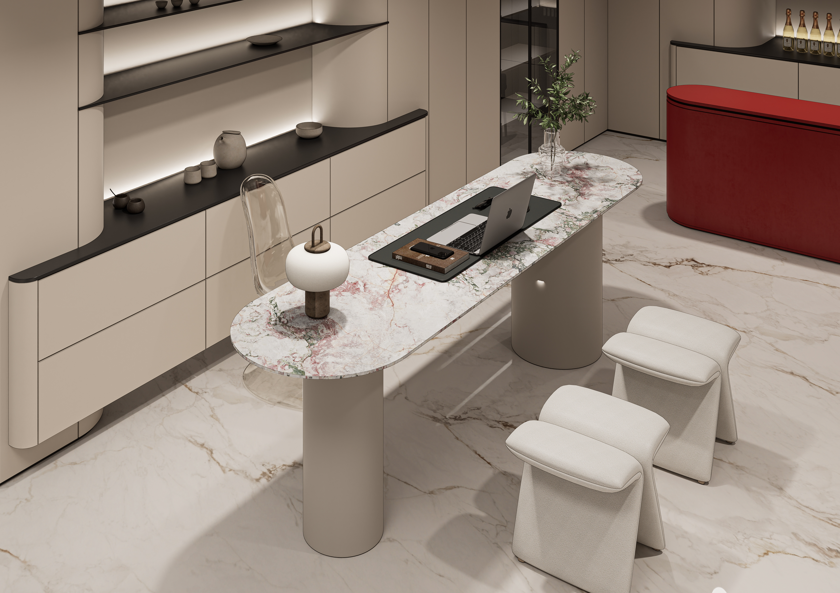 奶油风搭配大胆的亮色形成空间的对冲。