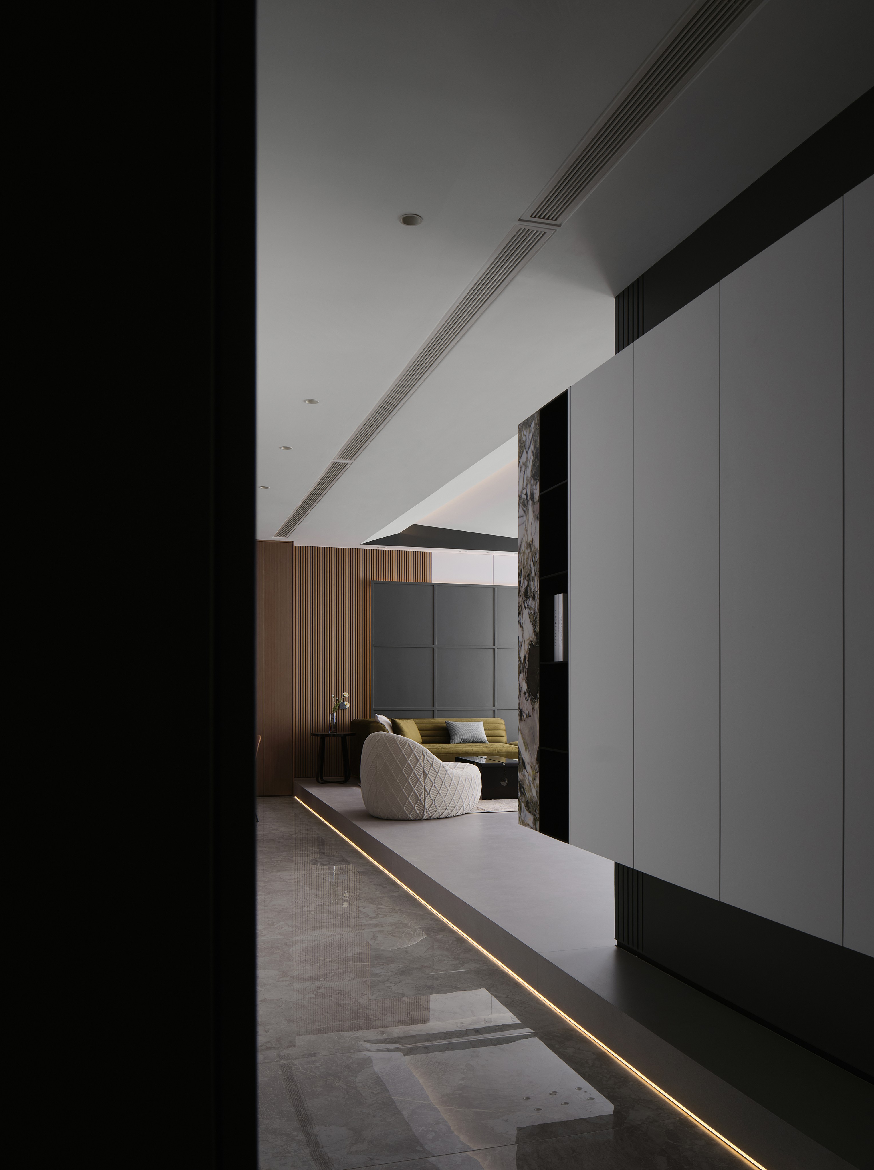 设计选材:“先锋材质重构轻奢语境”为核心定位,打破传统轻奢对天然材质的单一依赖惯性,通过新型复合材质与精密工艺的协同赋能,以克制而精准的材质语言,完成对当代高端居住美学的进阶表达,实现美学质感与实用性能的高阶平衡。