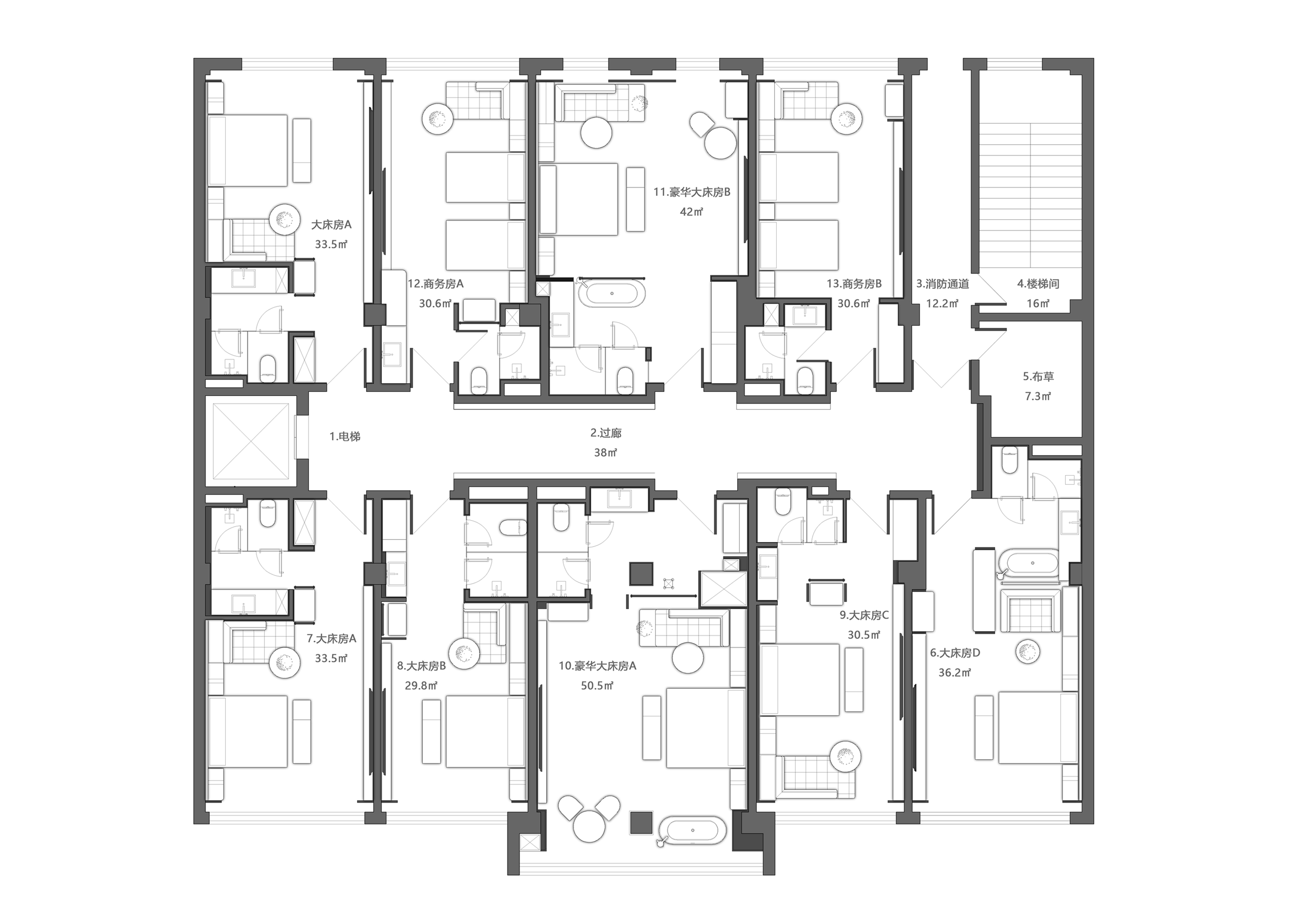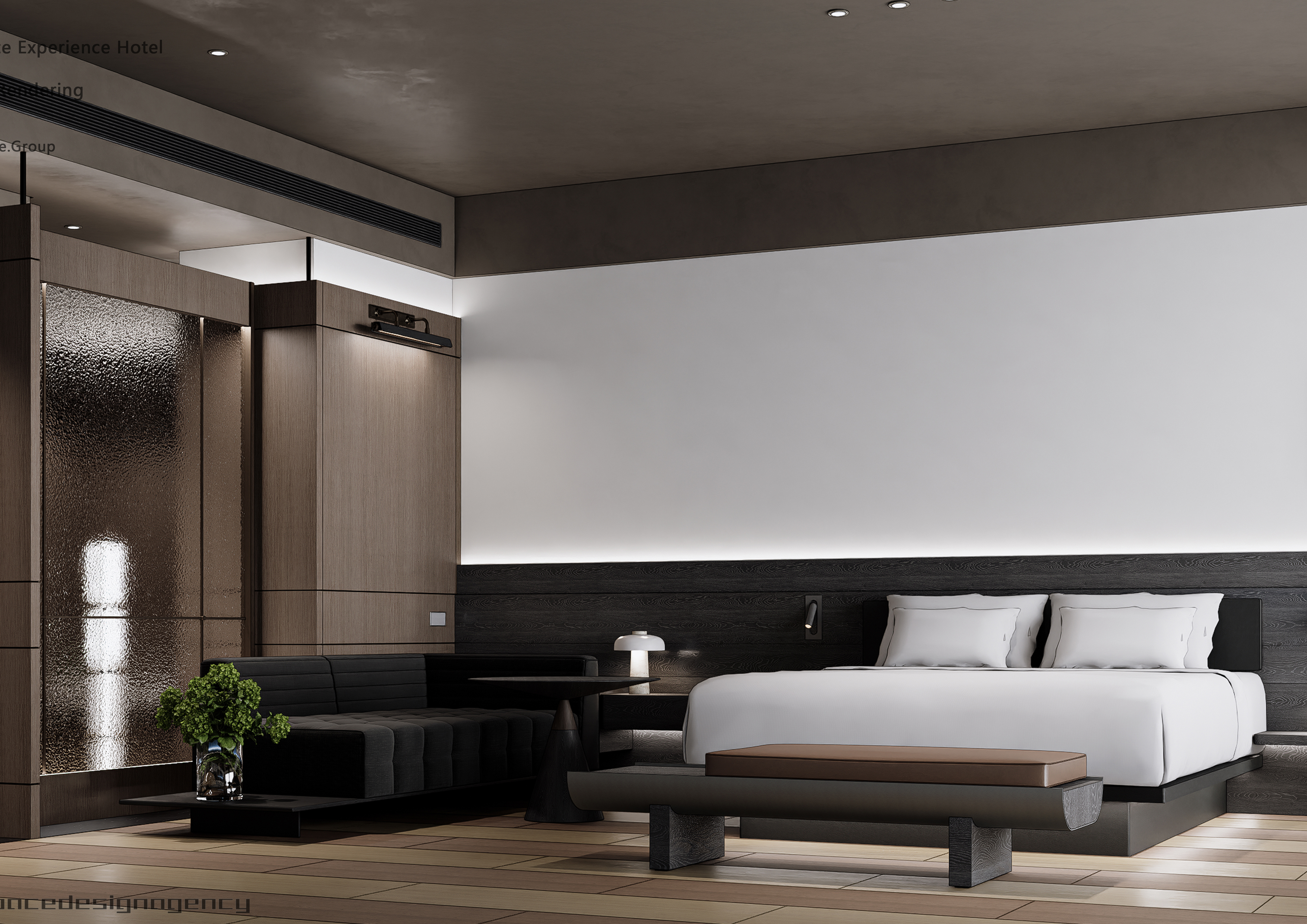 项目定位:传统的酒店空间都在通过重资本投入从而获得客户粘度,此次我们希望从设计出发,以人为本,从空间的艺术感,疗愈感出发,增加业态本身的缺口项目,打造不一样的体验感,从而增加客户粘度。