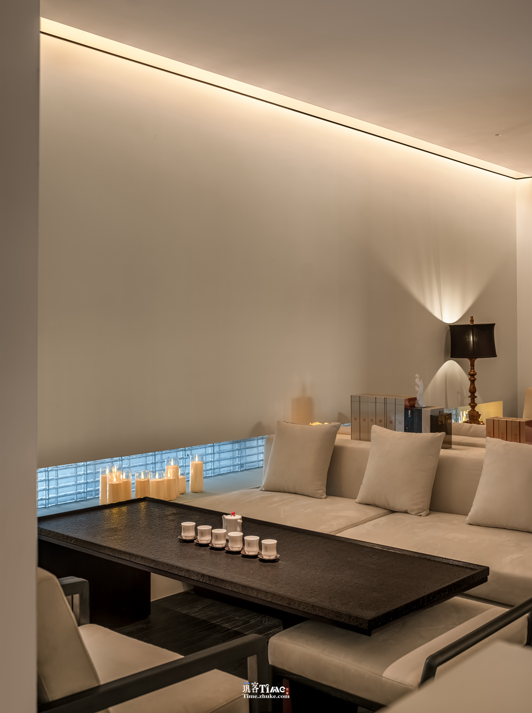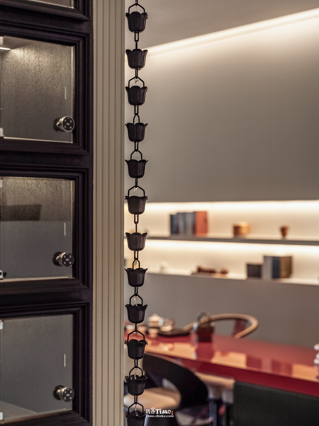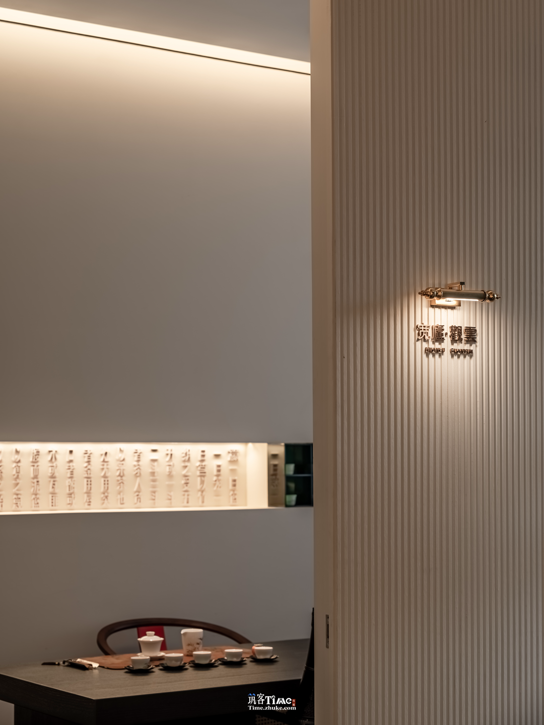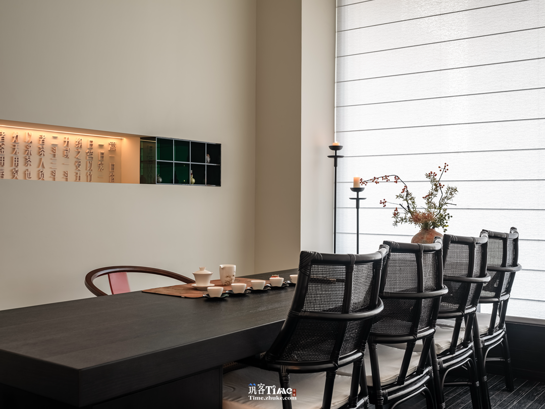 用户体验:以商业逻辑倒推动线与细节设计,双重过渡空间营造入场仪式感;灯光晕染下的橱窗式展示让茶品成为景致;功能分区兼顾私密性与社交性,暗藏的推拉门储物设计兼顾实用与美学;光影流转与雅致氛围提升沉浸式品茗体验。