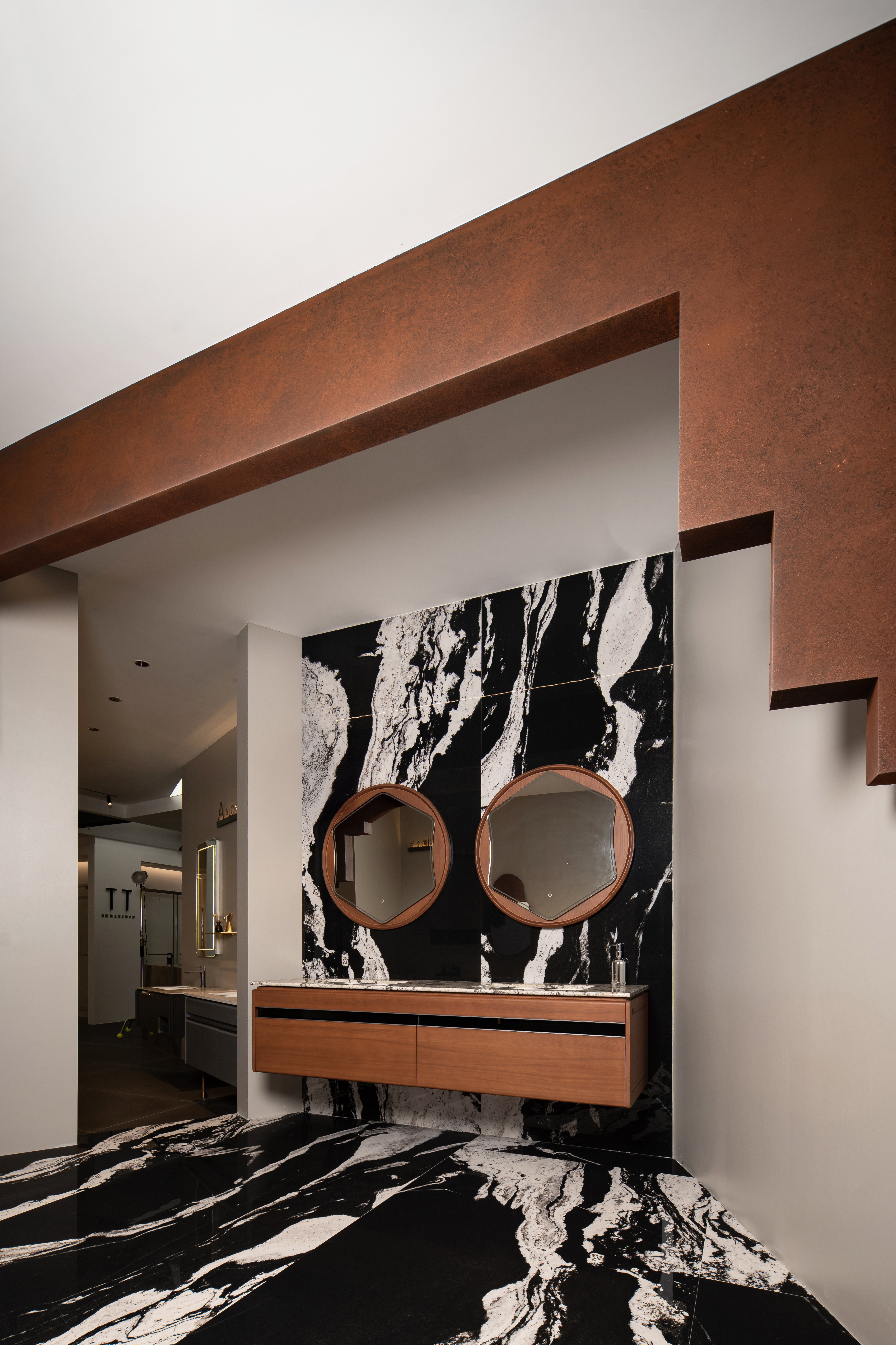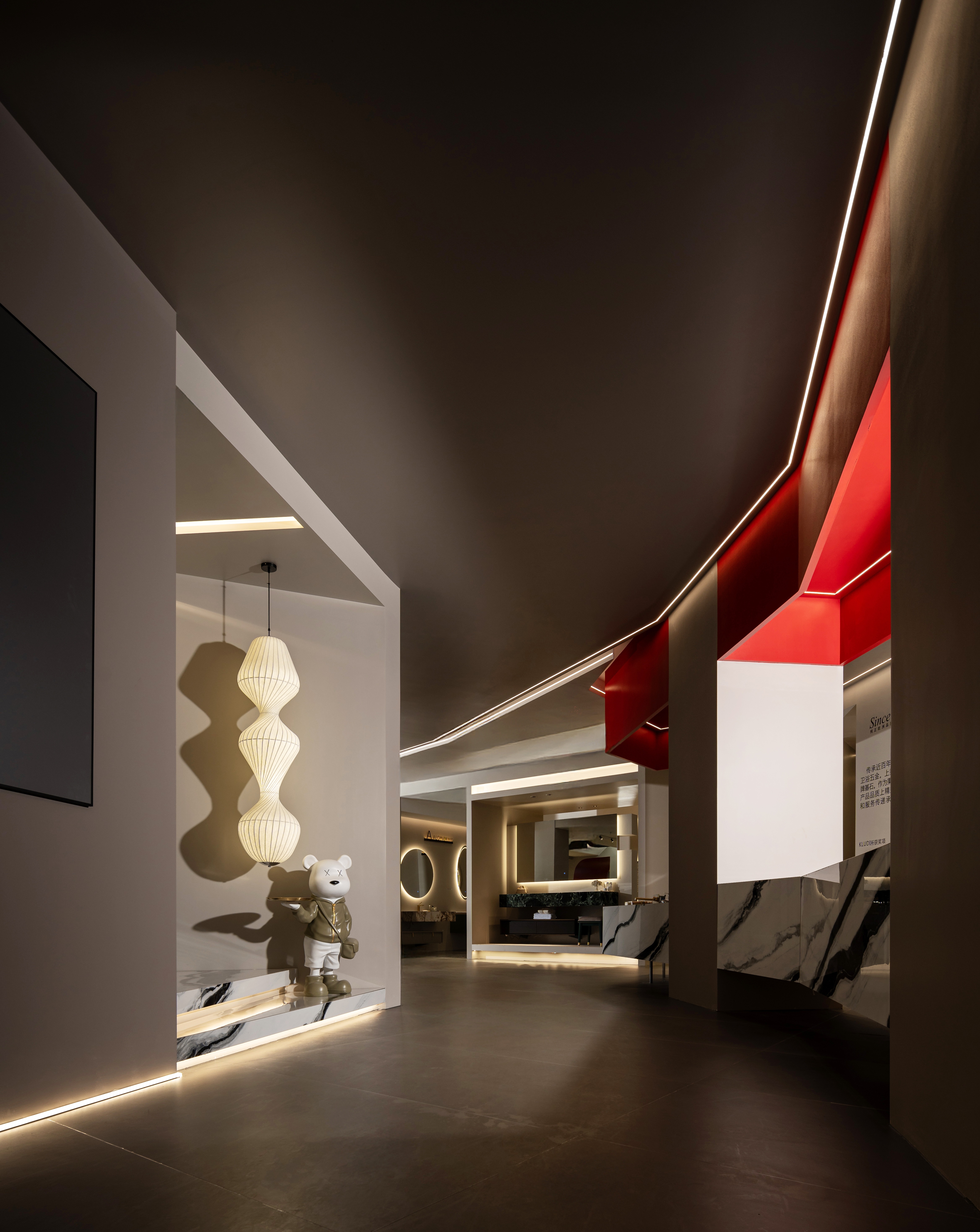 空间布局:采用“九曲连廊”动线打破割裂感,通过序列式布局构建情绪梯度,实现功能与体验的自然过渡。