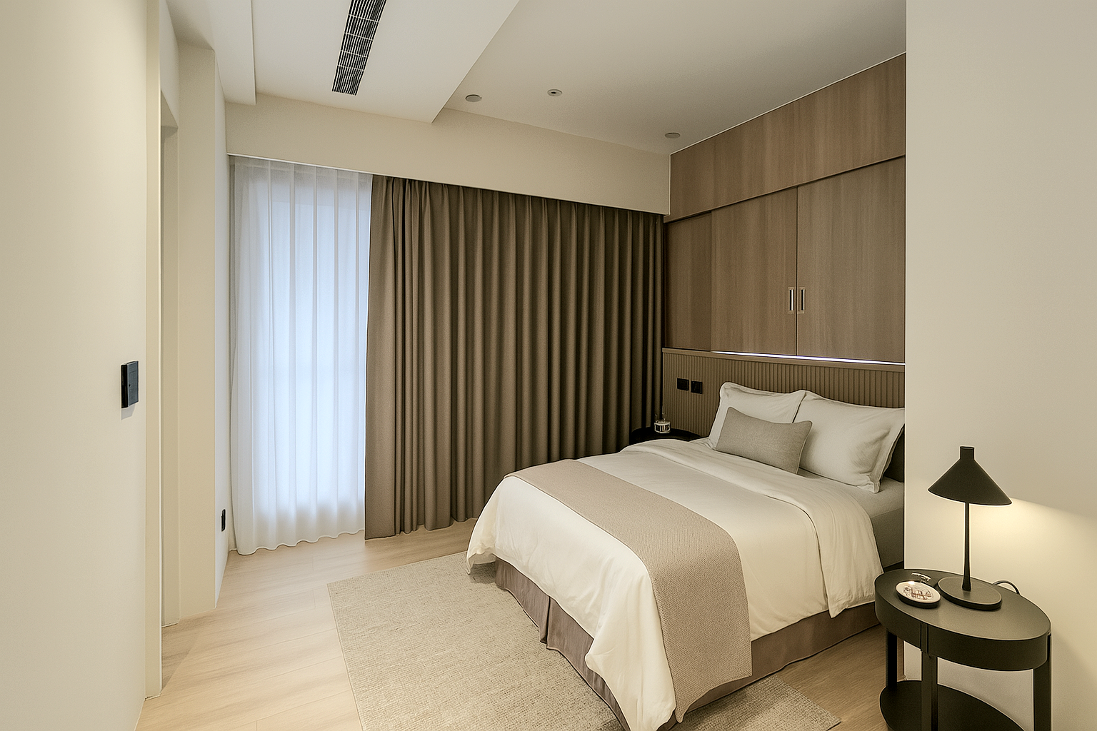 空间意境:藉由極簡結構與精準比例展現高雅,以「線」定義邊界、以「光」界定層次,讓空間在靜謐與理性之間流動,凝鍊出屬