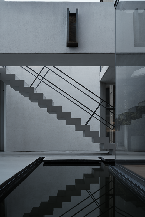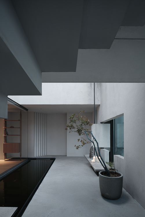 空间布局:探索空间的本质结构,脱离意义的表达,空间要自我分析,使空间元素寻求自己的意义。住宅系列使用梁板柱作为框架结构语言,脱离于承重逻辑,作为原始的、探索空间的结构形式,去构成空间的点线面。建立了一套新的规则,虽然用这套规则可以创造无穷的形式,但是从本质上来说却又是建立在一定的限定性基础之上的。