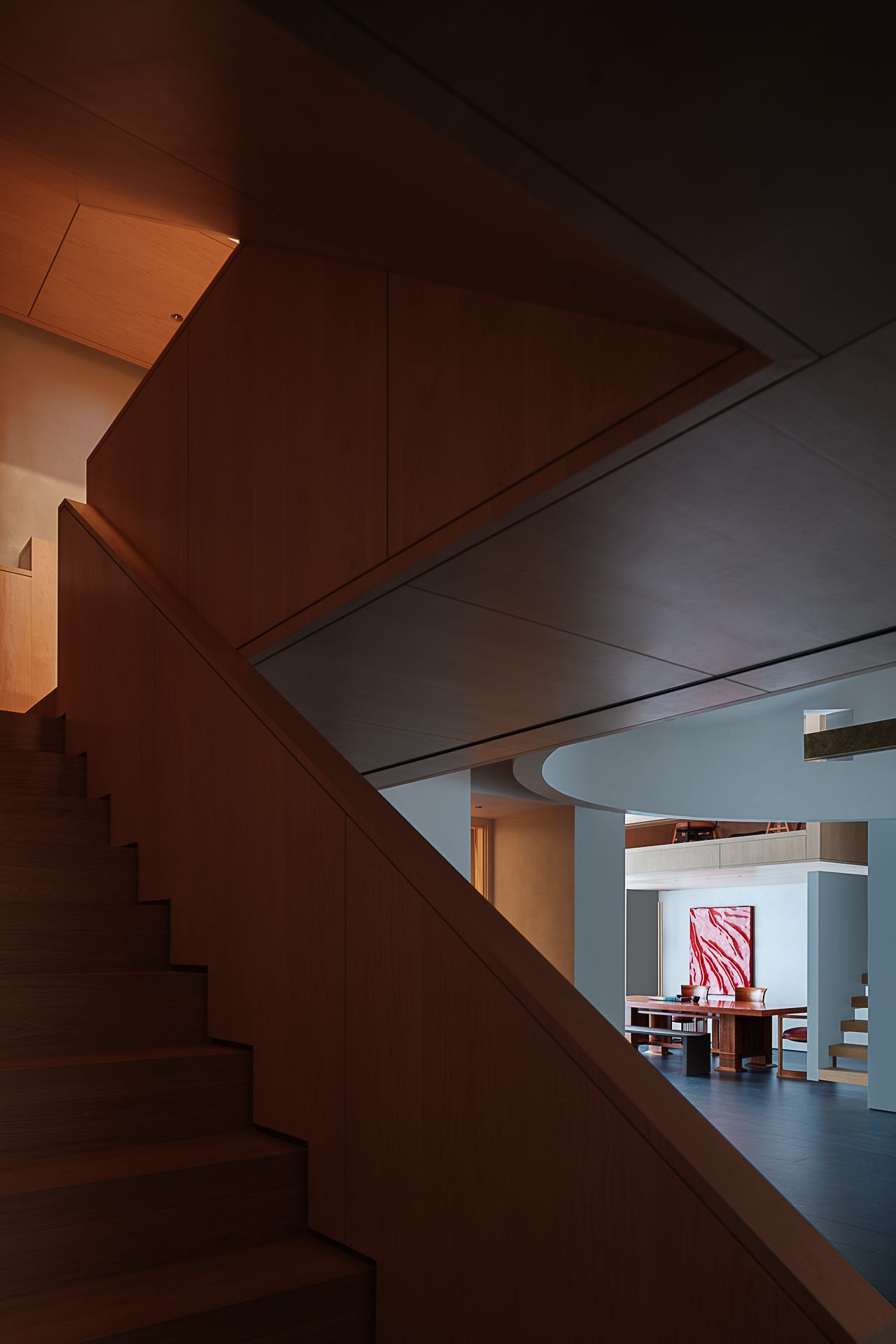 空间意境:空间从传统的规则与形式中解放出来,建立了具有「解构主义」色彩的实验性风格。空间是分析性的,但其规范却随着时间而变化。因此,设计不断寻找与传统建筑毫无联系的对立和哲学、语言学等学科之间的对话。