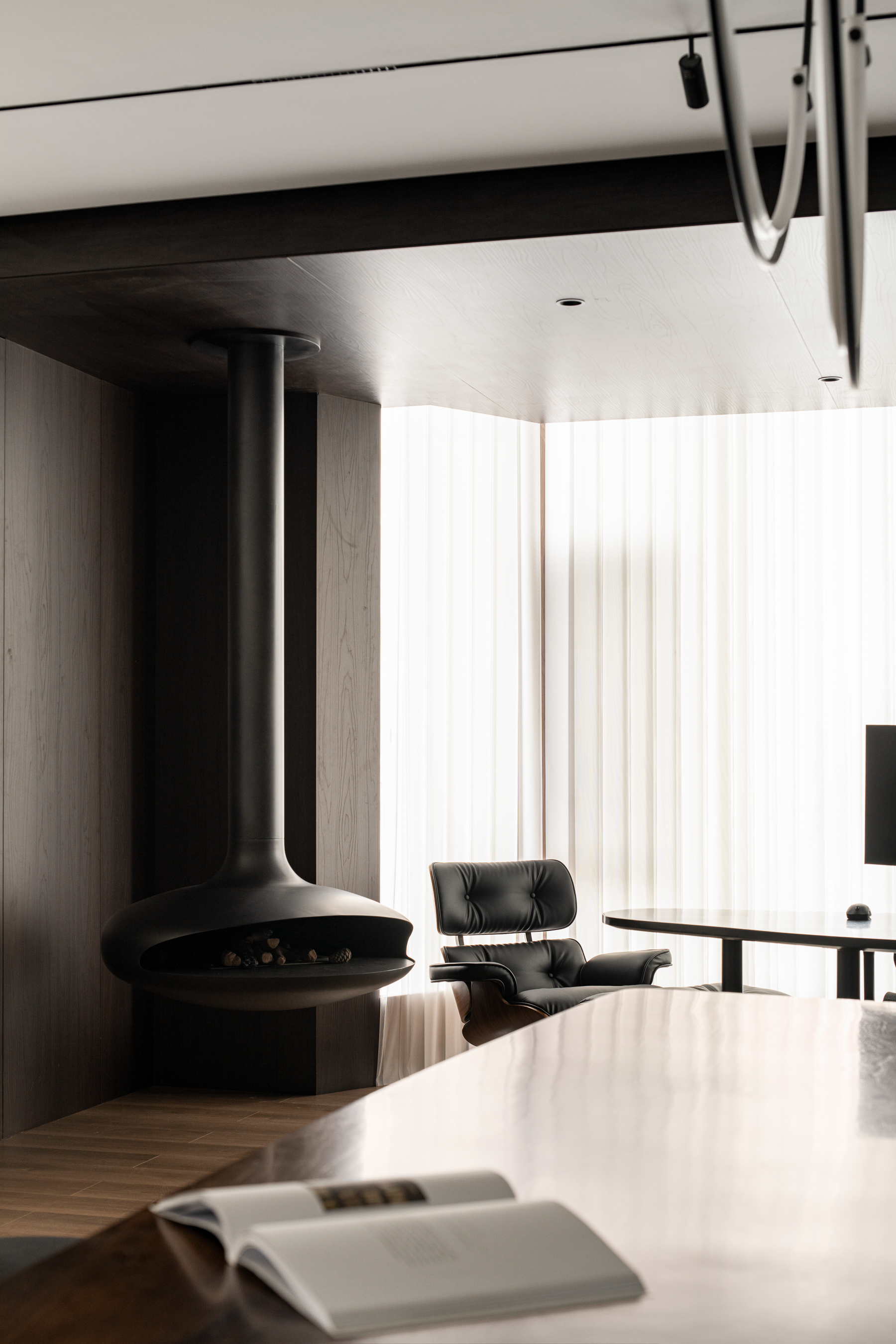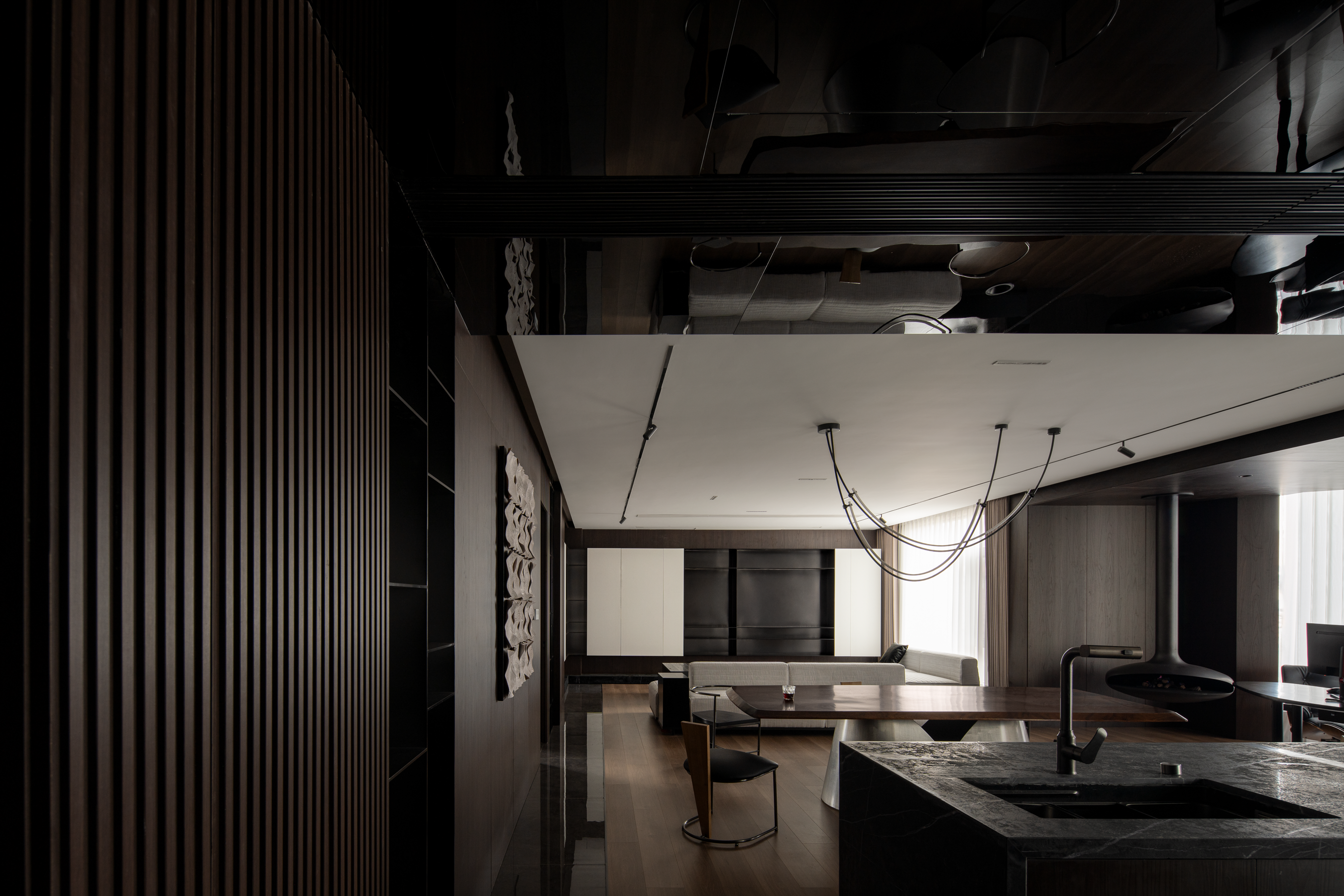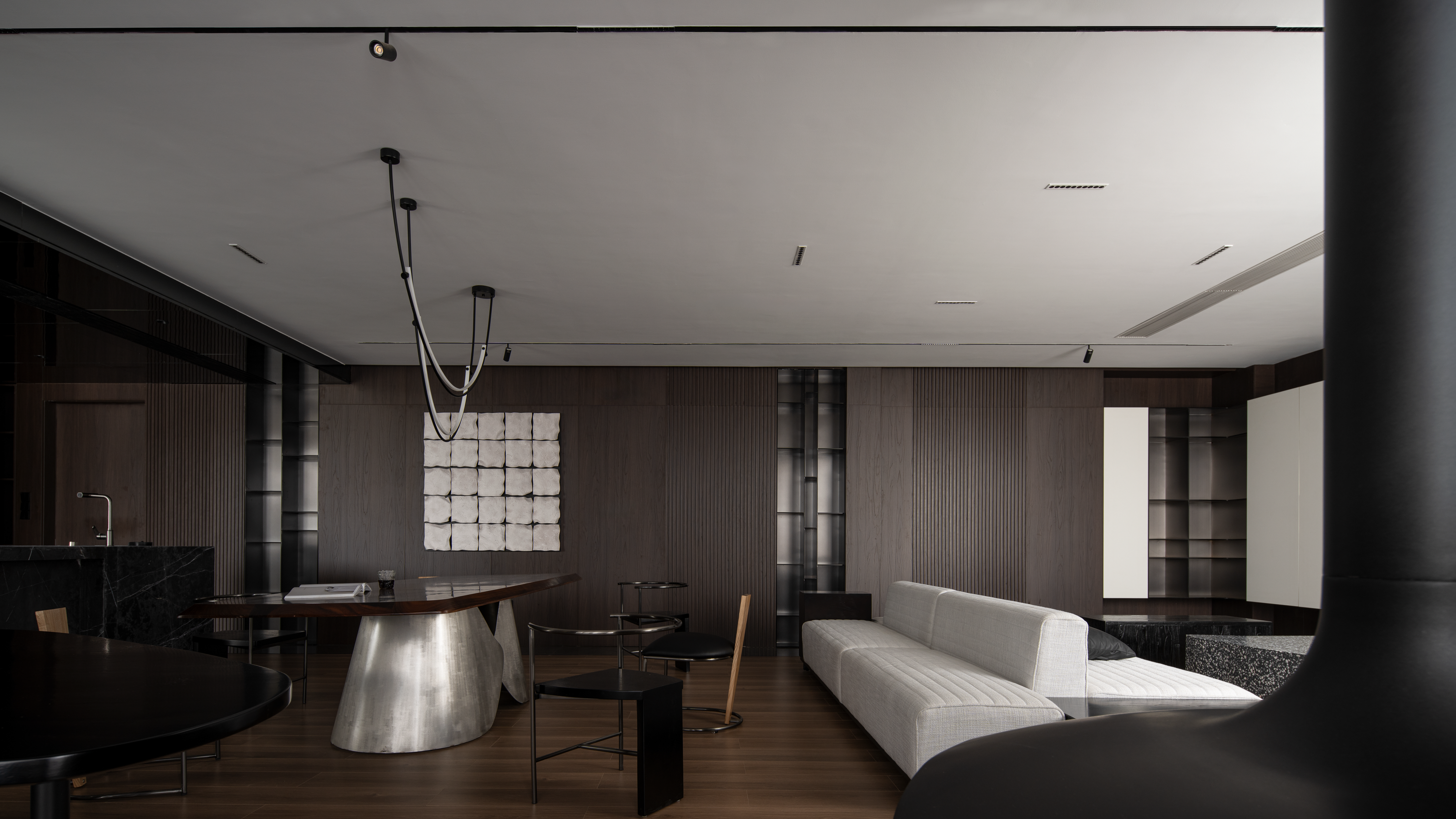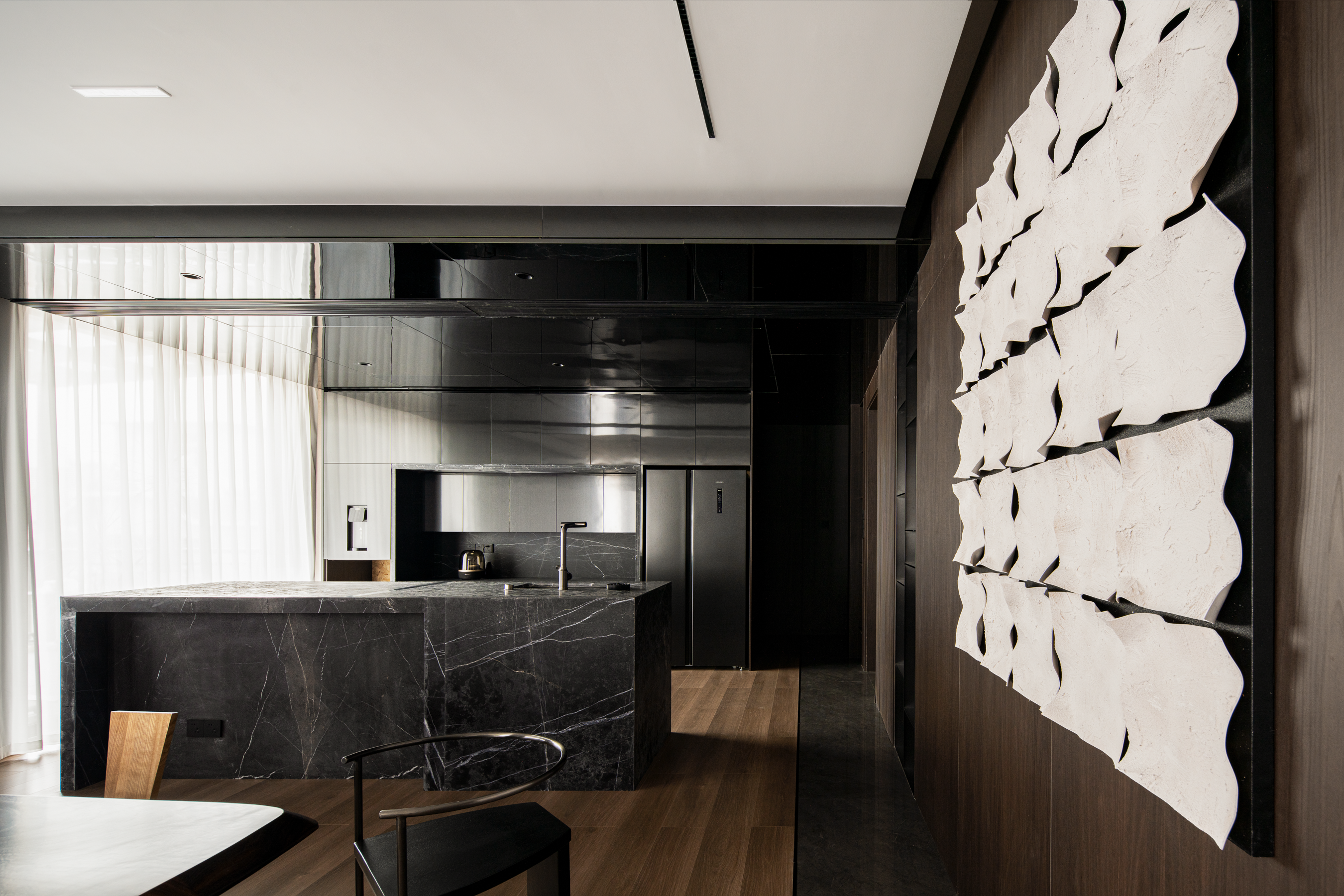 项目定位:本项目以 “暗调极简・质感私域” 为定位,打破传统自建房分区模式:以深木、黑石为基底,用金属、肌理装置作点睛,通过无界洄游动线整合餐厨客办公区;以光影为滤镜弱化原始结构,塑造兼具松弛感与高级感的城市近郊私享居所,让自建房成为功能与美学共生的当代生活场域。