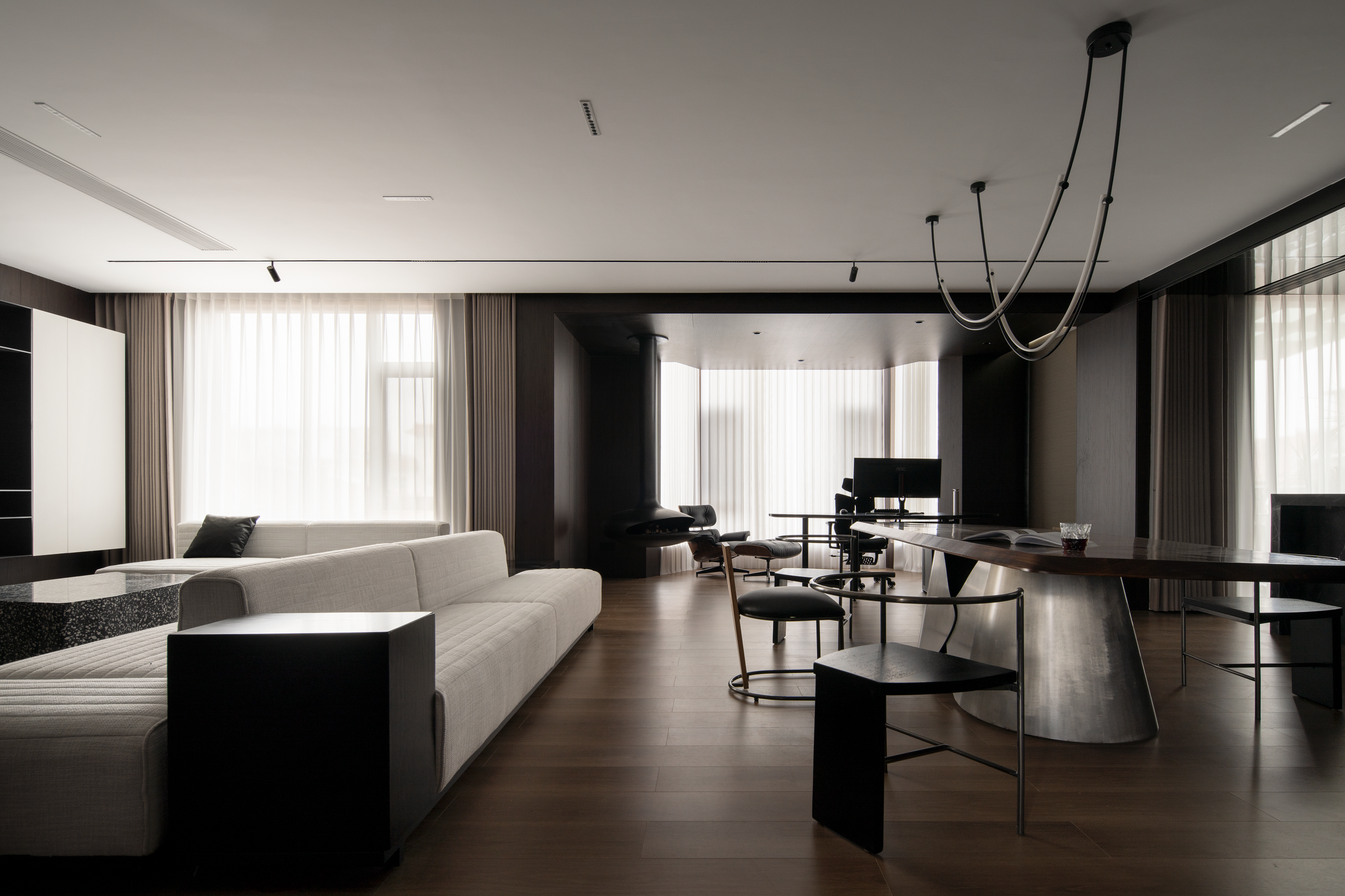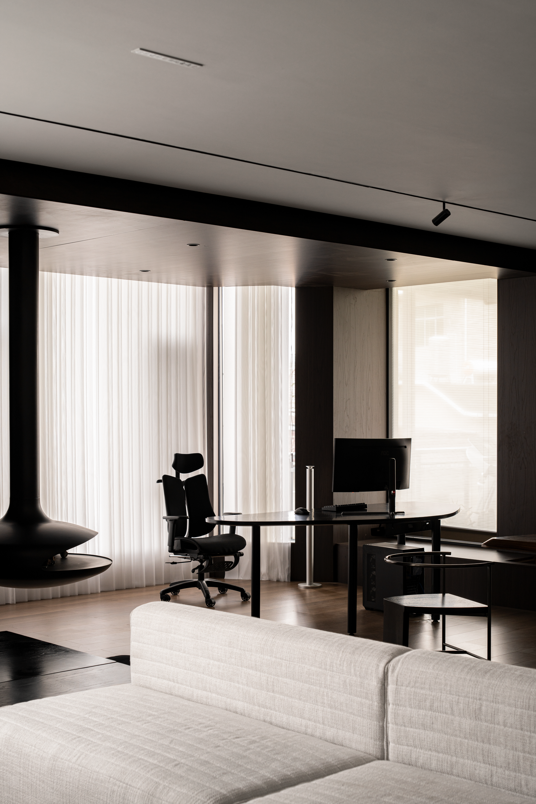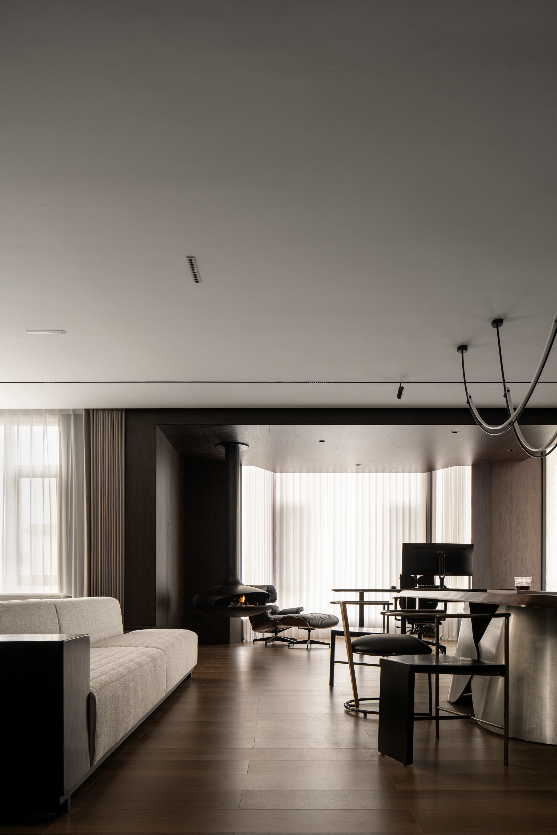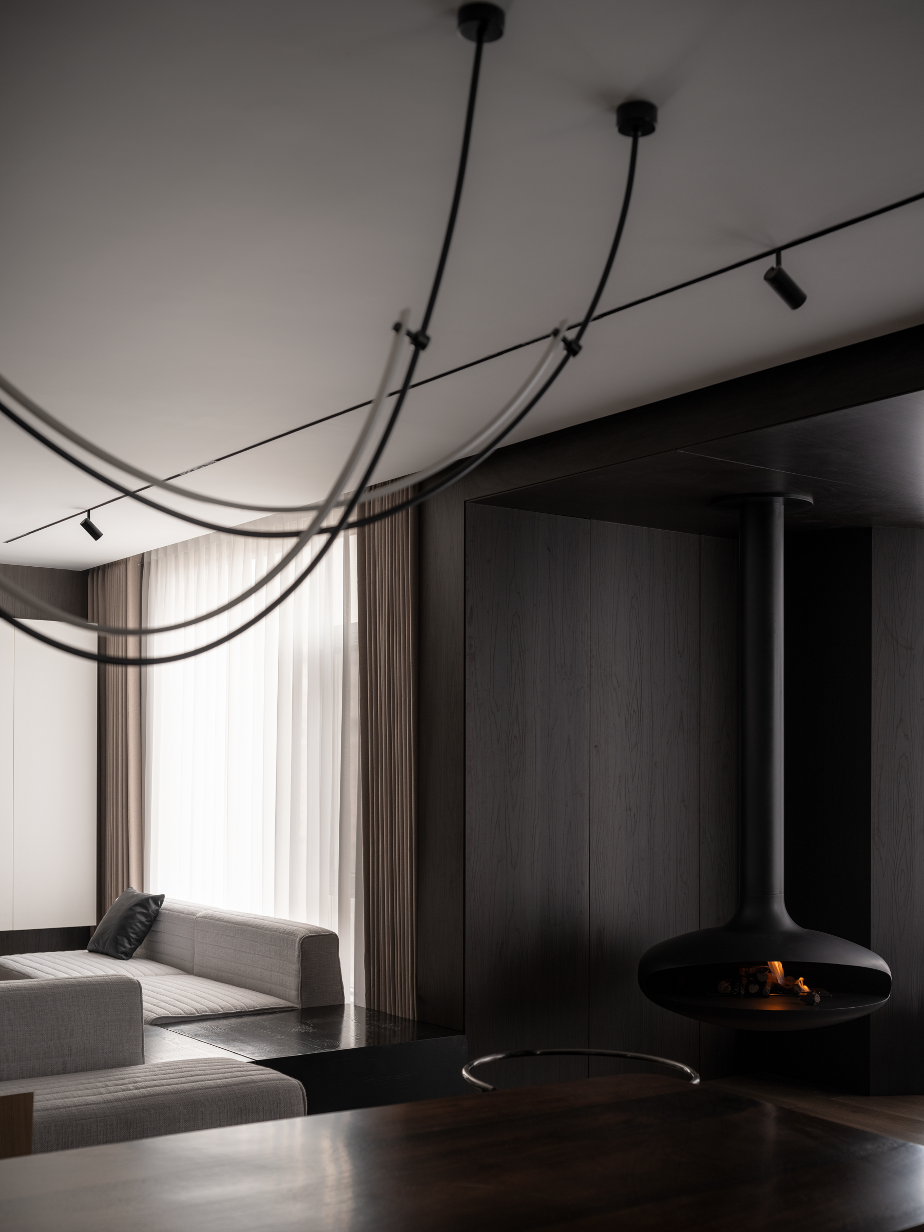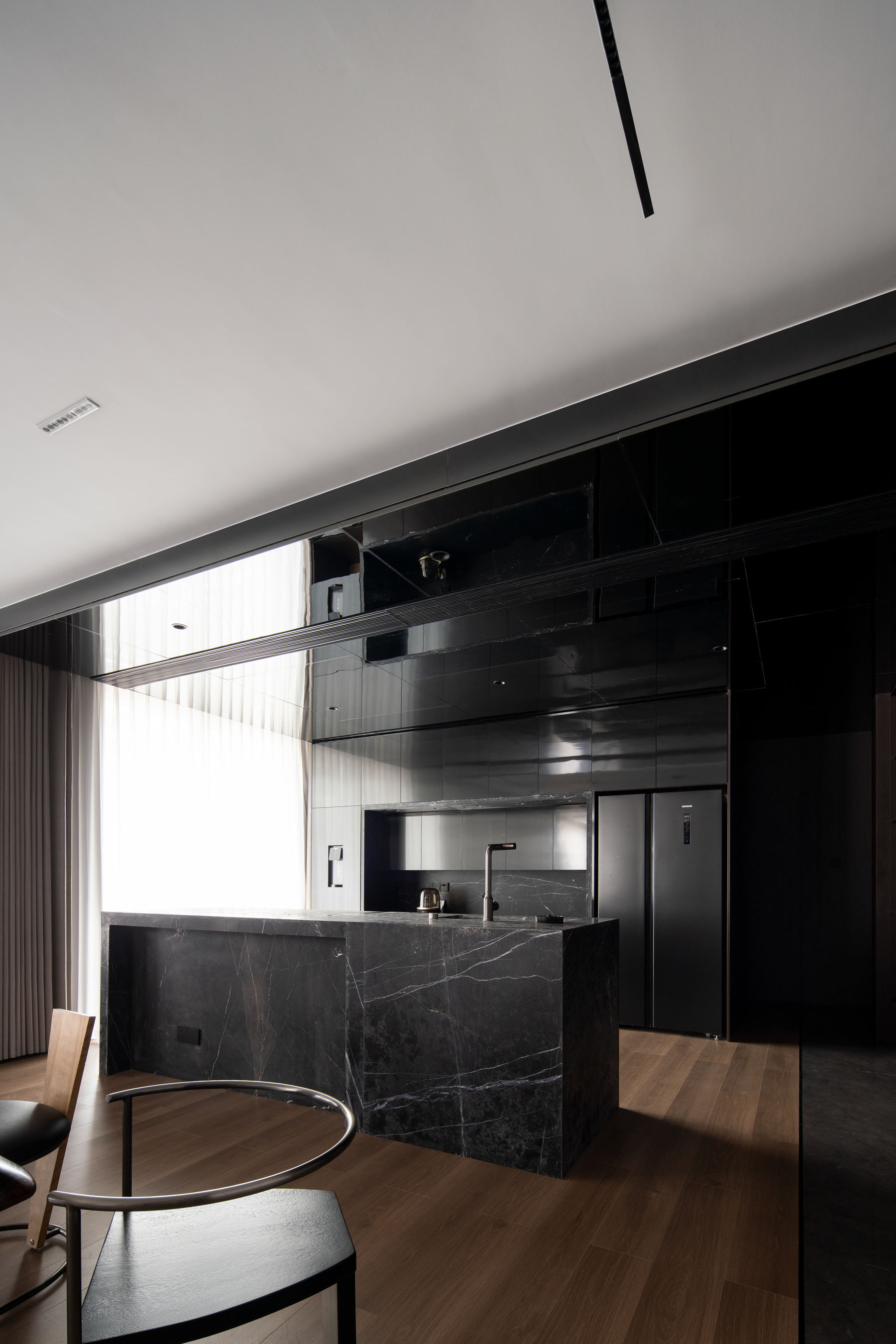 项目定位:本项目以 “暗调极简・质感私域” 为定位,打破传统自建房分区模式:以深木、黑石为基底,用金属、肌理装置作点睛,通过无界洄游动线整合餐厨客办公区;以光影为滤镜弱化原始结构,塑造兼具松弛感与高级感的城市近郊私享居所,让自建房成为功能与美学共生的当代生活场域。