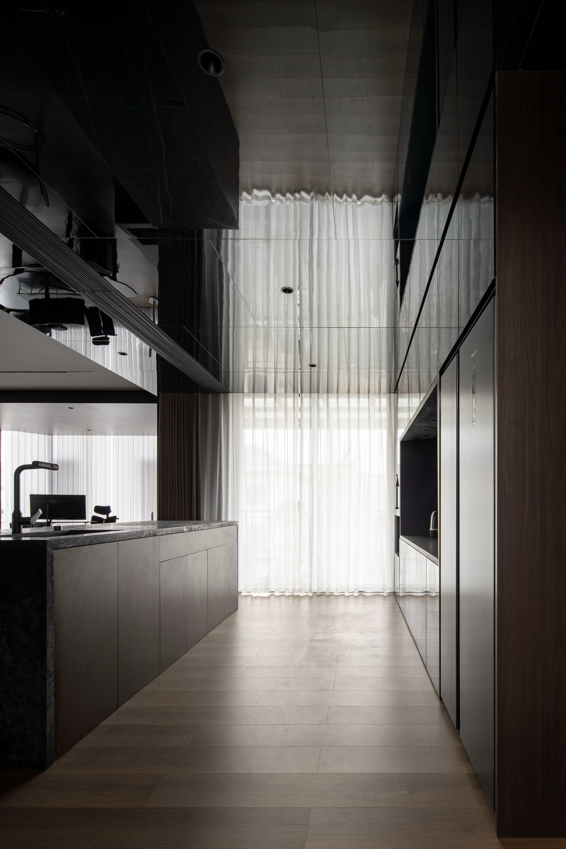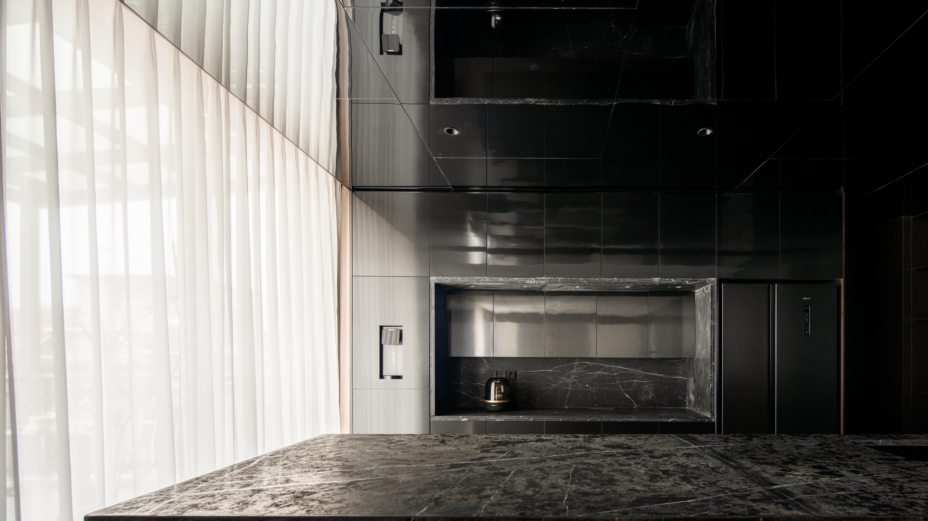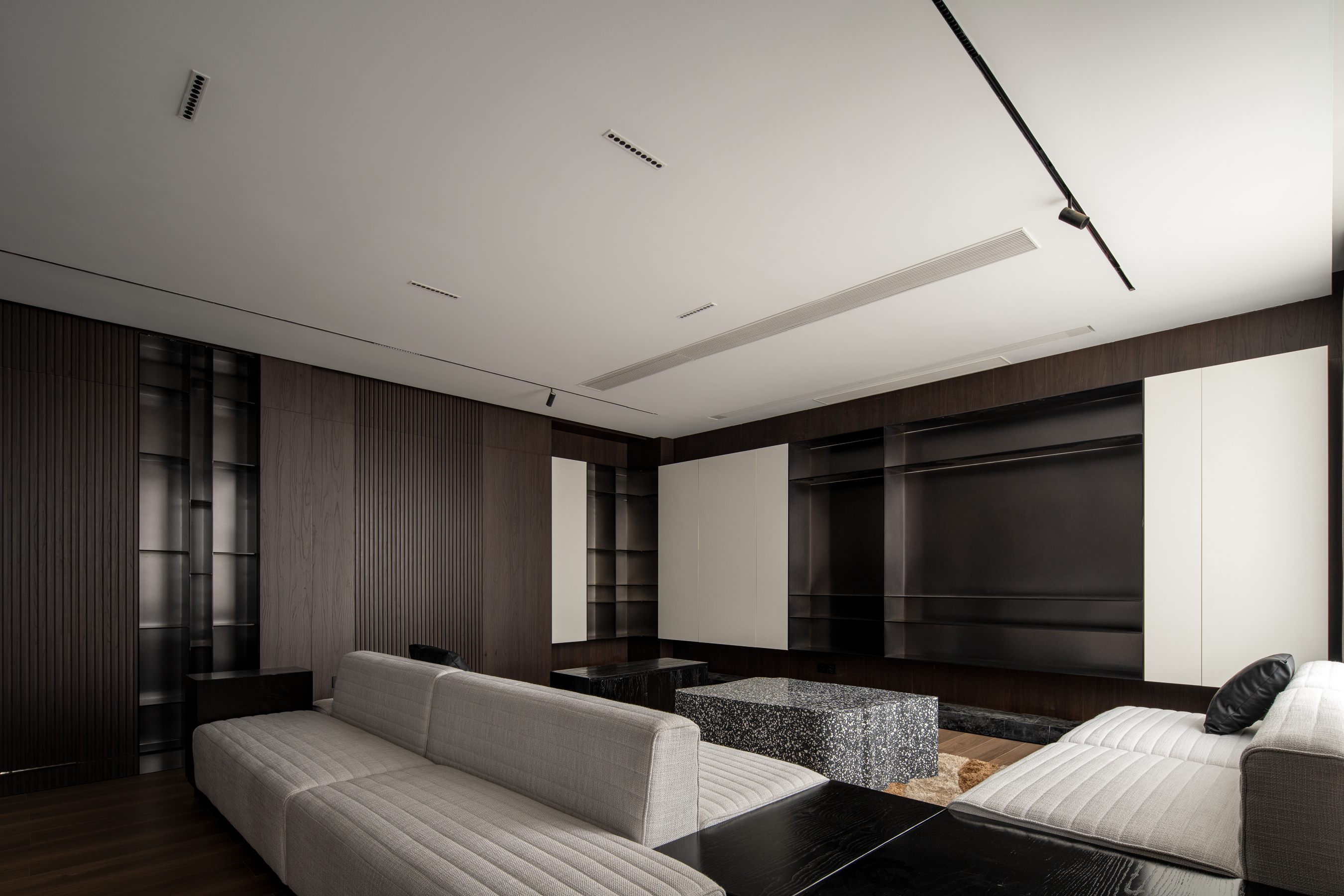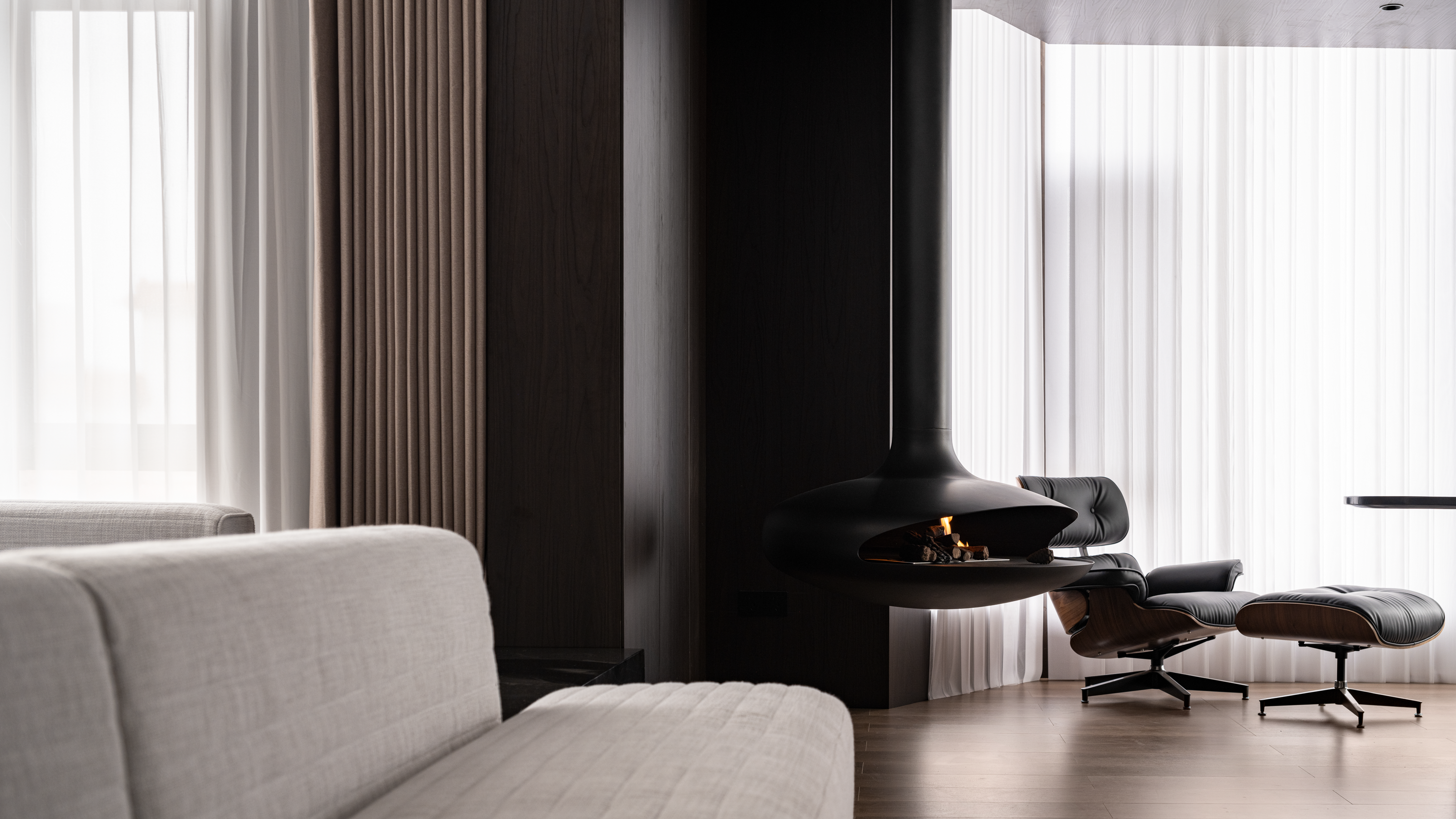 项目定位:本项目以 “暗调极简・质感私域” 为定位,打破传统自建房分区模式:以深木、黑石为基底,用金属、肌理装置作点睛,通过无界洄游动线整合餐厨客办公区;以光影为滤镜弱化原始结构,塑造兼具松弛感与高级感的城市近郊私享居所,让自建房成为功能与美学共生的当代生活场域。