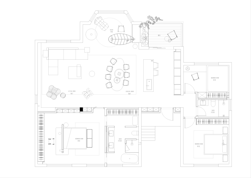 3.单空间同时承载聚餐、独处、轻办公等需求,让自建房的宽松尺度转化为 “一域多用” 的生活弹性,适配当代复合化生活方式。 -