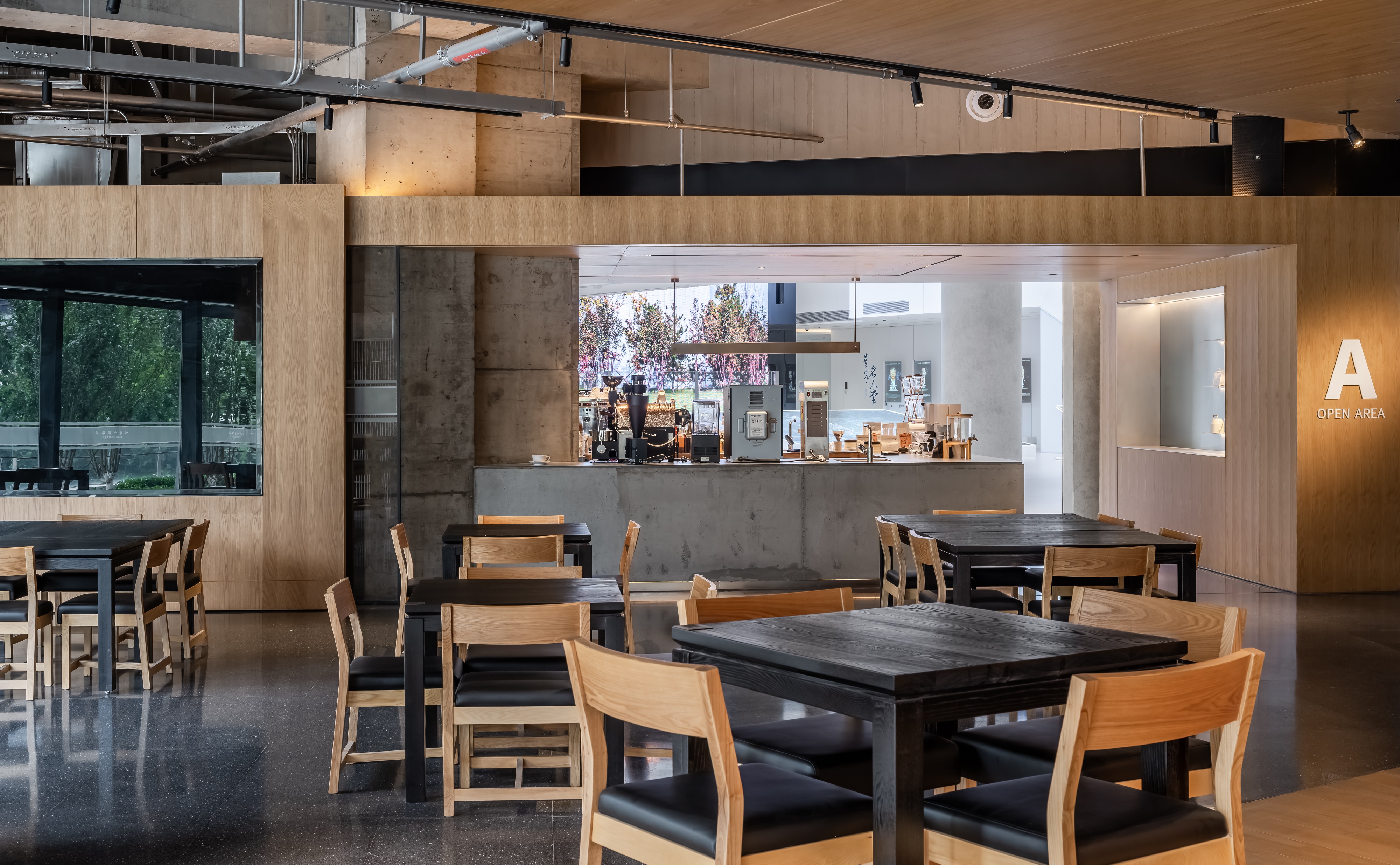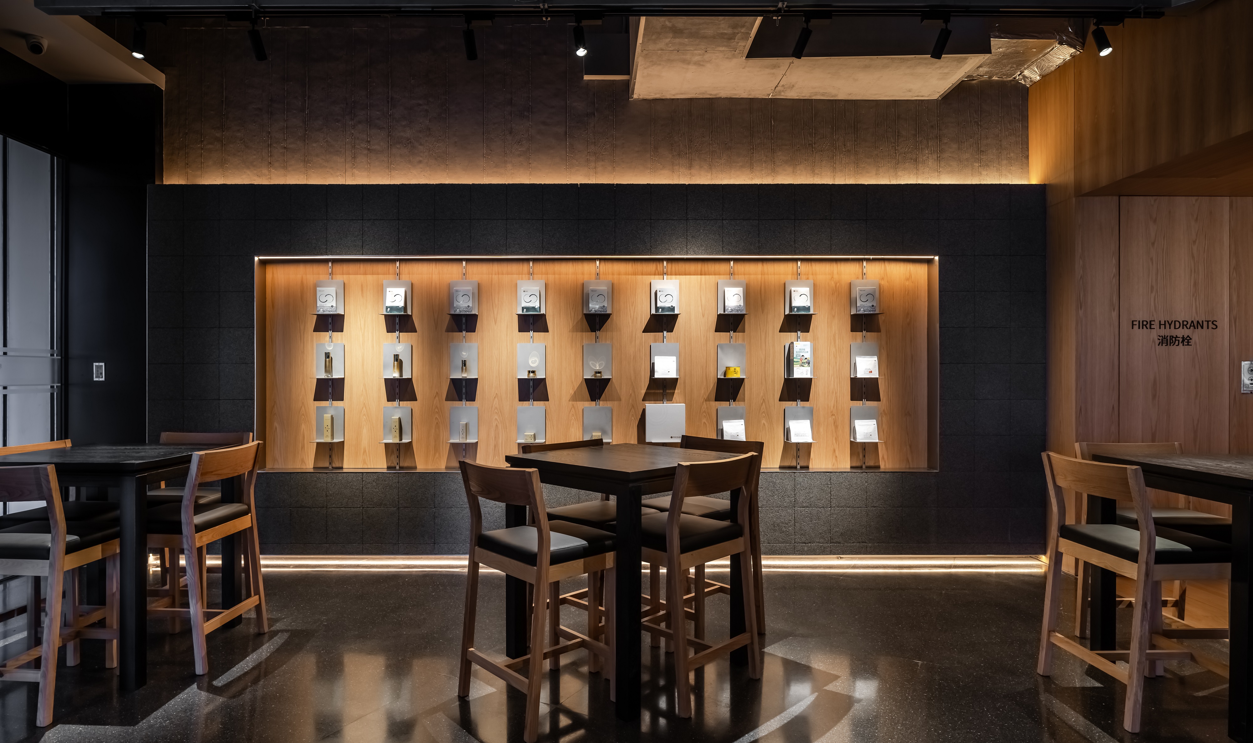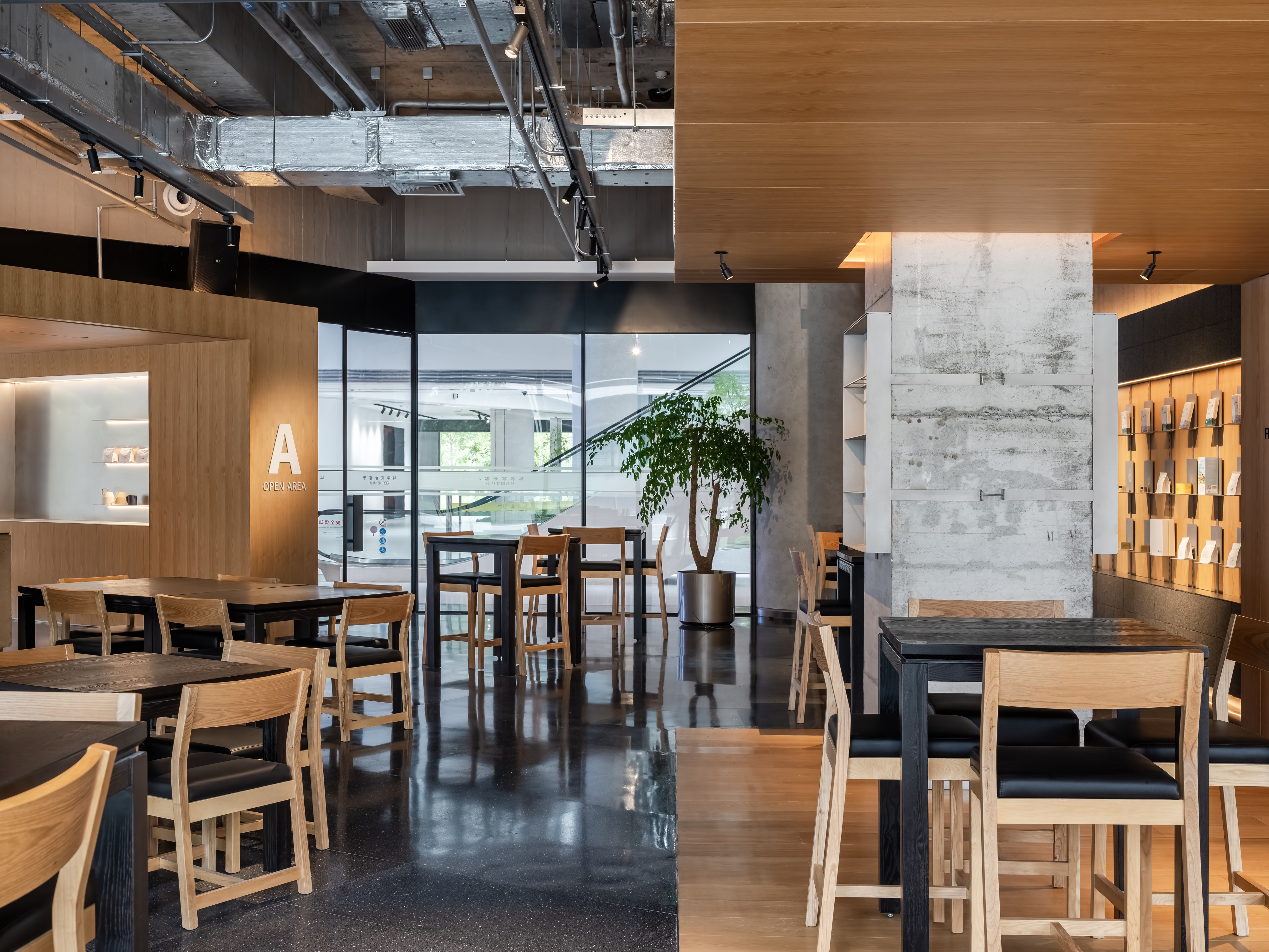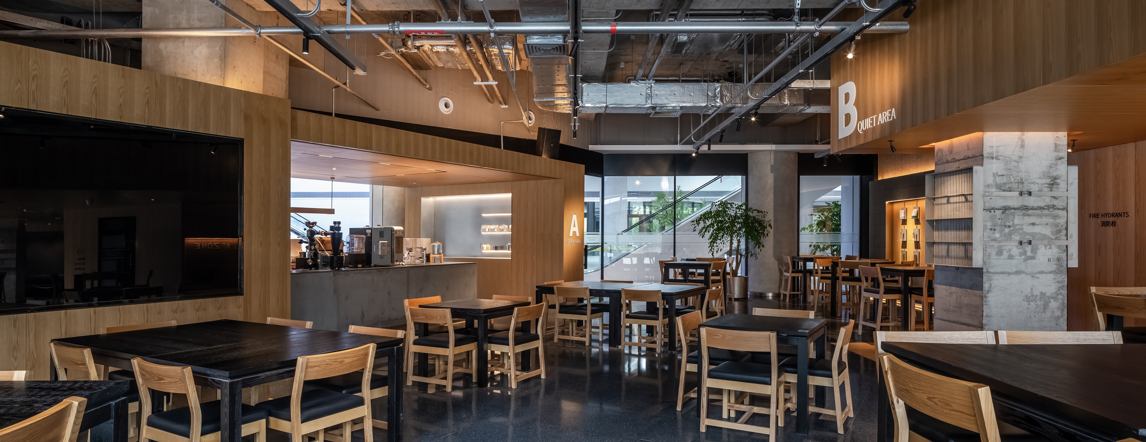 空间意境:空间功能分区:基于人员的使用场景,将空间划分为 OPEN AREA(开放交流区)与 QUIET AREA(静谧休憩区)两大核心区域。开放交流区设置灵活组合的桌椅、互动展示墙,满足小组研讨、学术分享、团队协作等需求;静谧休憩区则以舒适的沙发、柔和的灯光营造宁静氛围,适配独处思考、短暂放松、轻量阅读等场景,实现功能与场景的精准匹配。