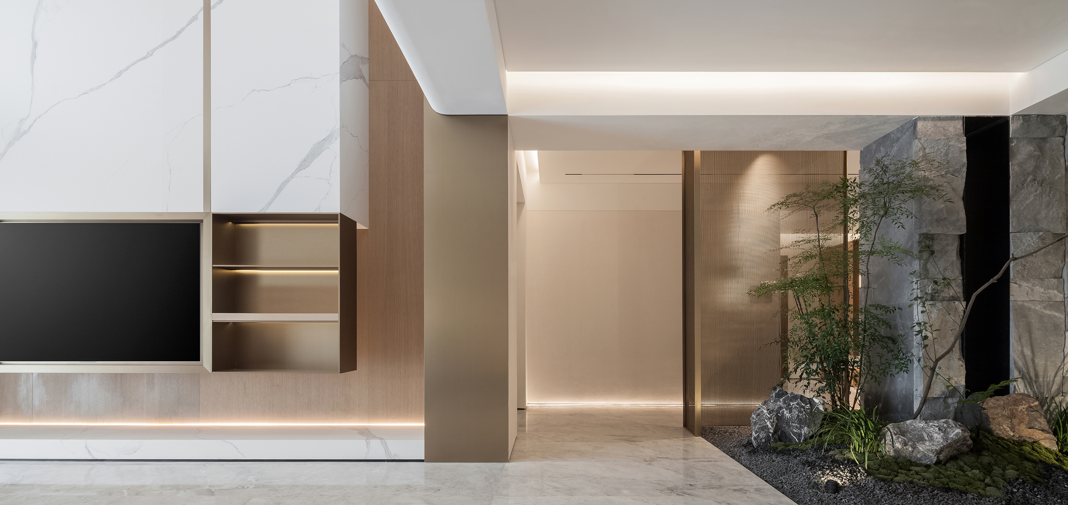 项目定位:用造园手法营造室内设计。无花无木亦是园林。