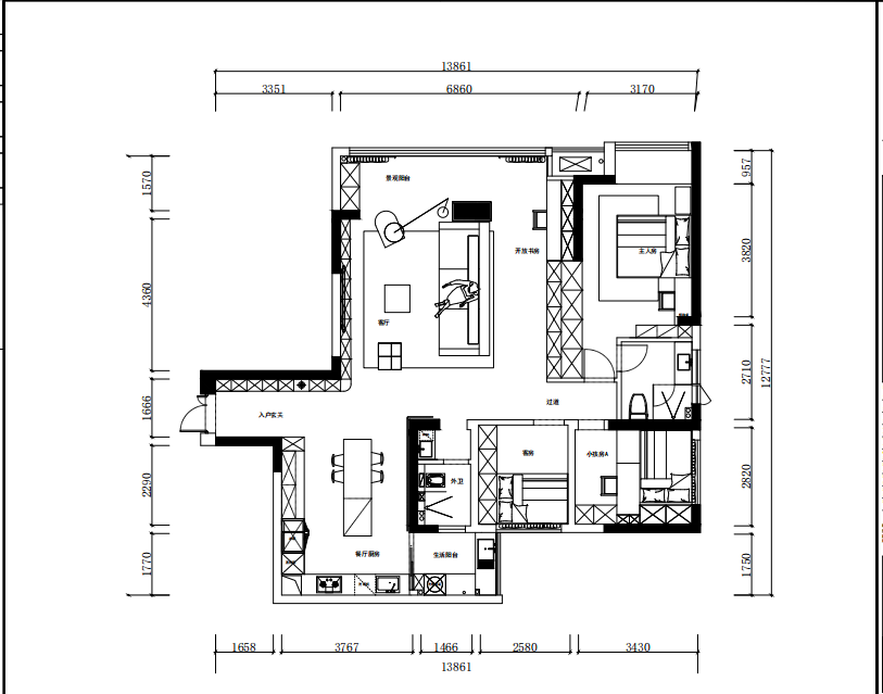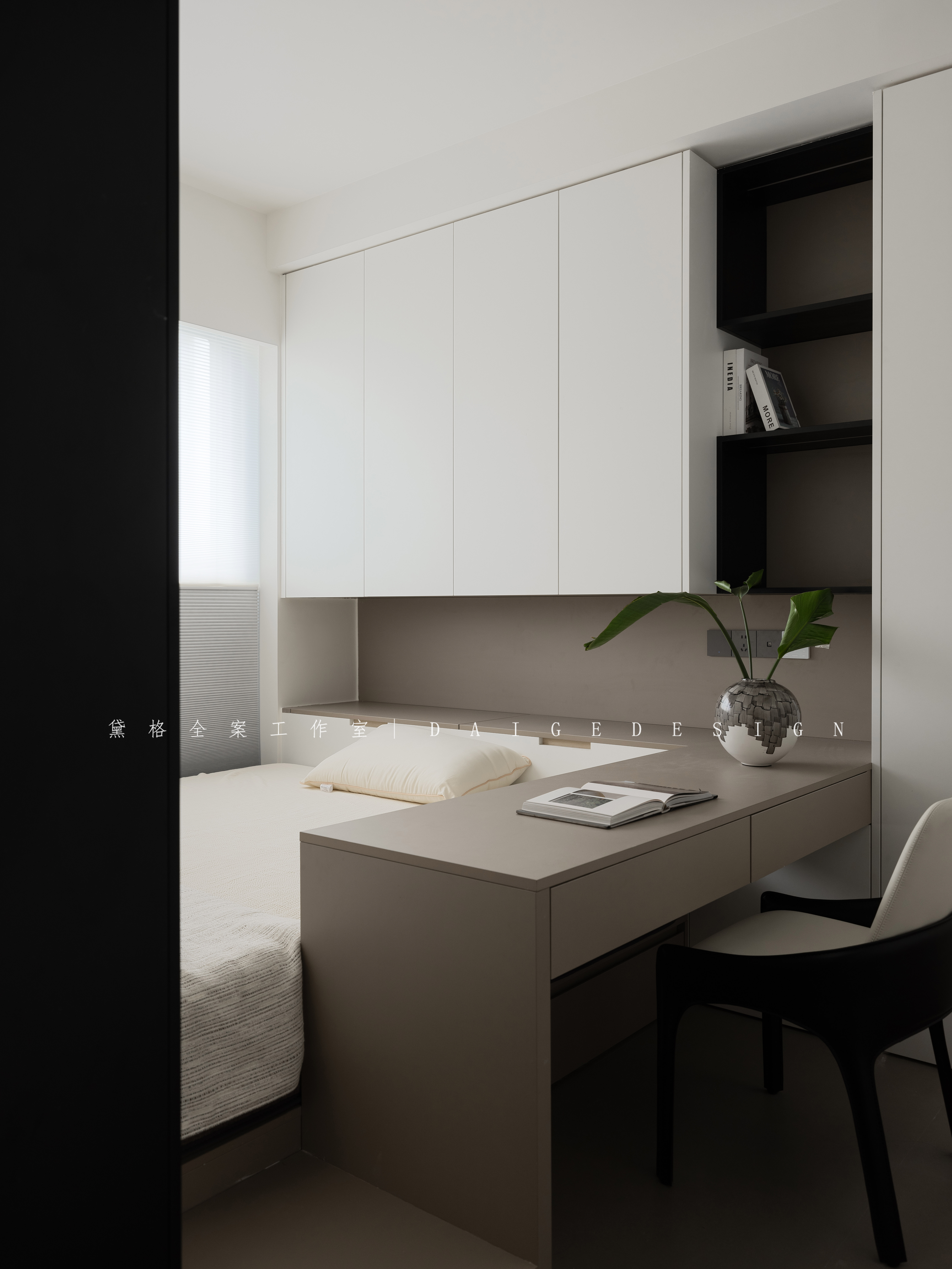 空间布局:打开客厅旁边的书房,增加公共区域的空间感,同时也兼备开放式书房的功能性。