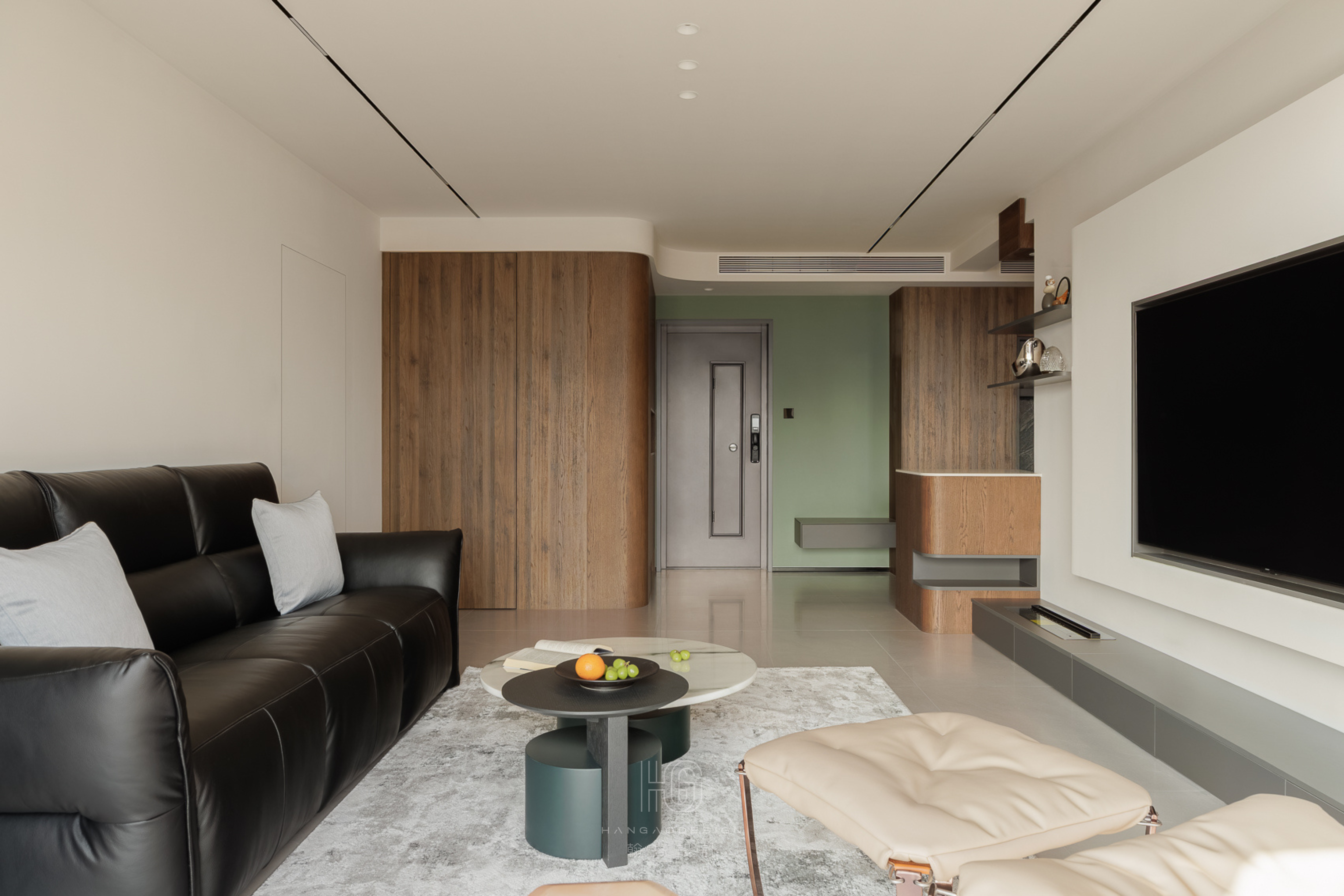 设计选材:选用FSC认证意大利超薄岩板替代天然石材,降碳70%成本减40%;800库柜体以回收铝框+稻秸MDL无醛板模块化拼装,现场0裁切无垃圾;次卧轨道折叠门采用再生铝+PET吸音毡,轻量省五金,全案材料可逆拆装,生命周期终结再循环率≥92%。