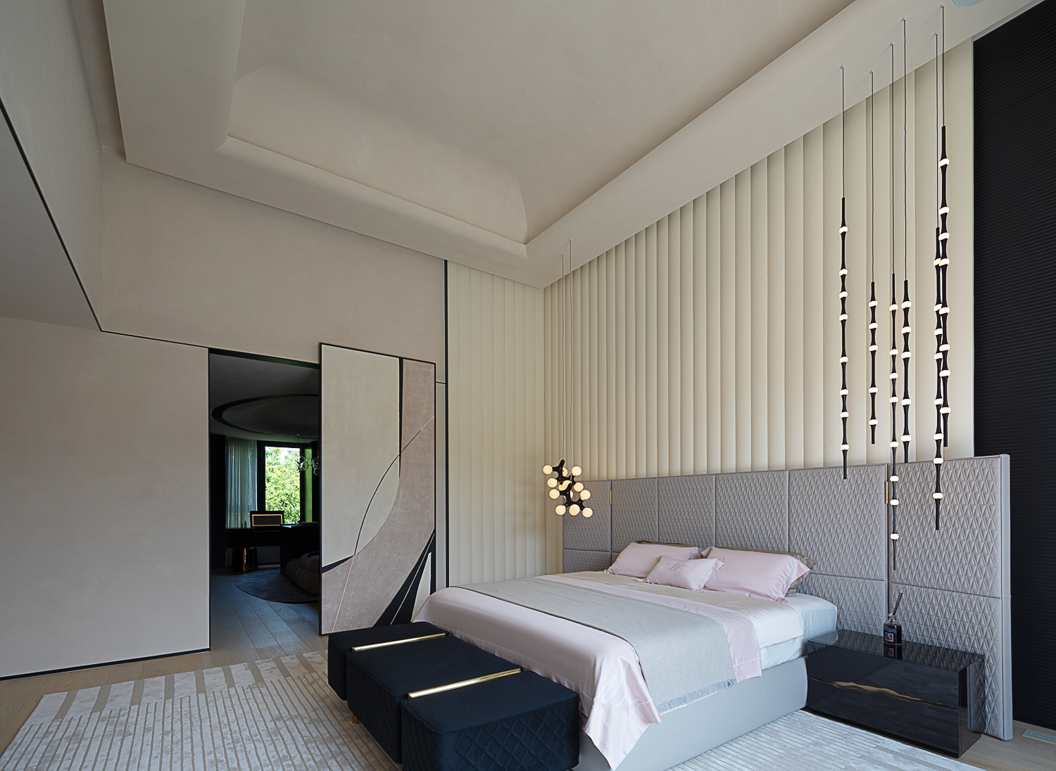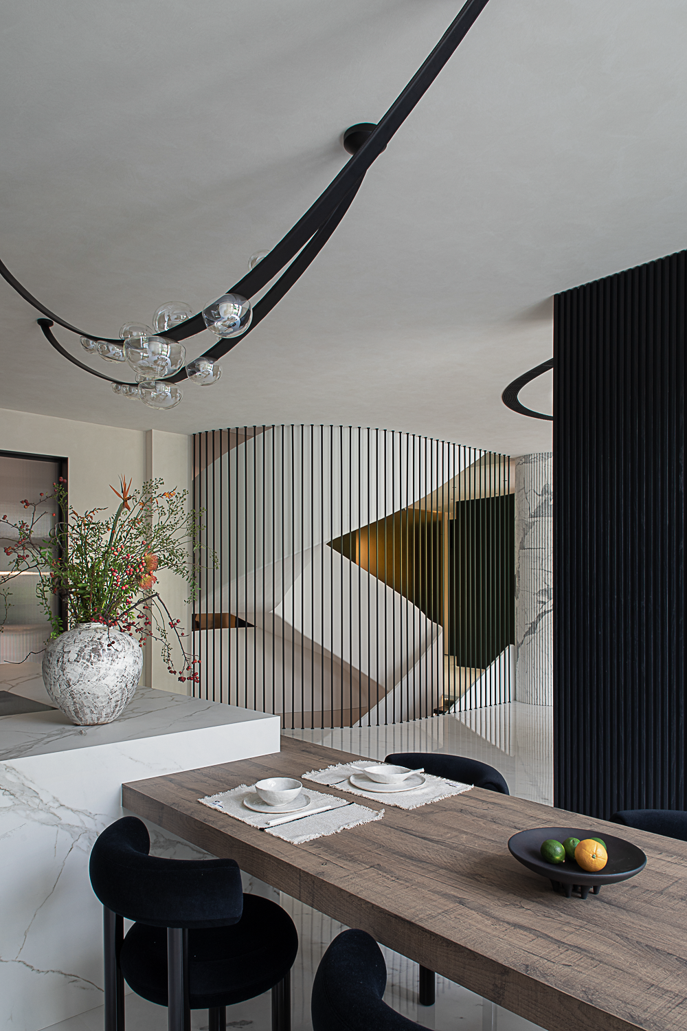 空间布局:不一味追求某个地方的尺度效果或者设计手法,类比为“人”,空间布局是调整了人的骨相,而软装是额外赋予人身上的脾气、妆造,根据“这个人”本身的特性以及拥有者的喜好调整合适的比例