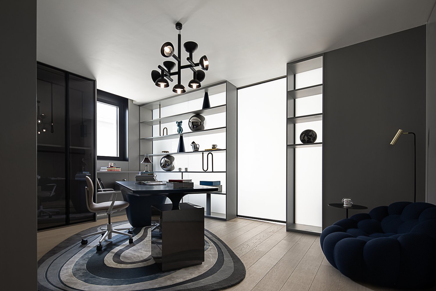 空间意境:空间没有固定风格,只提供合理的比例尺度以及色彩点缀,让人忘记设计的存在,从而强调的是人在空间当中的状态